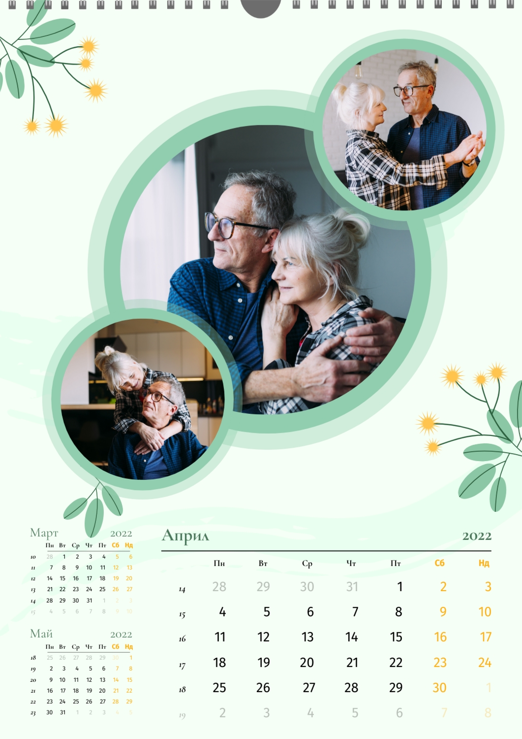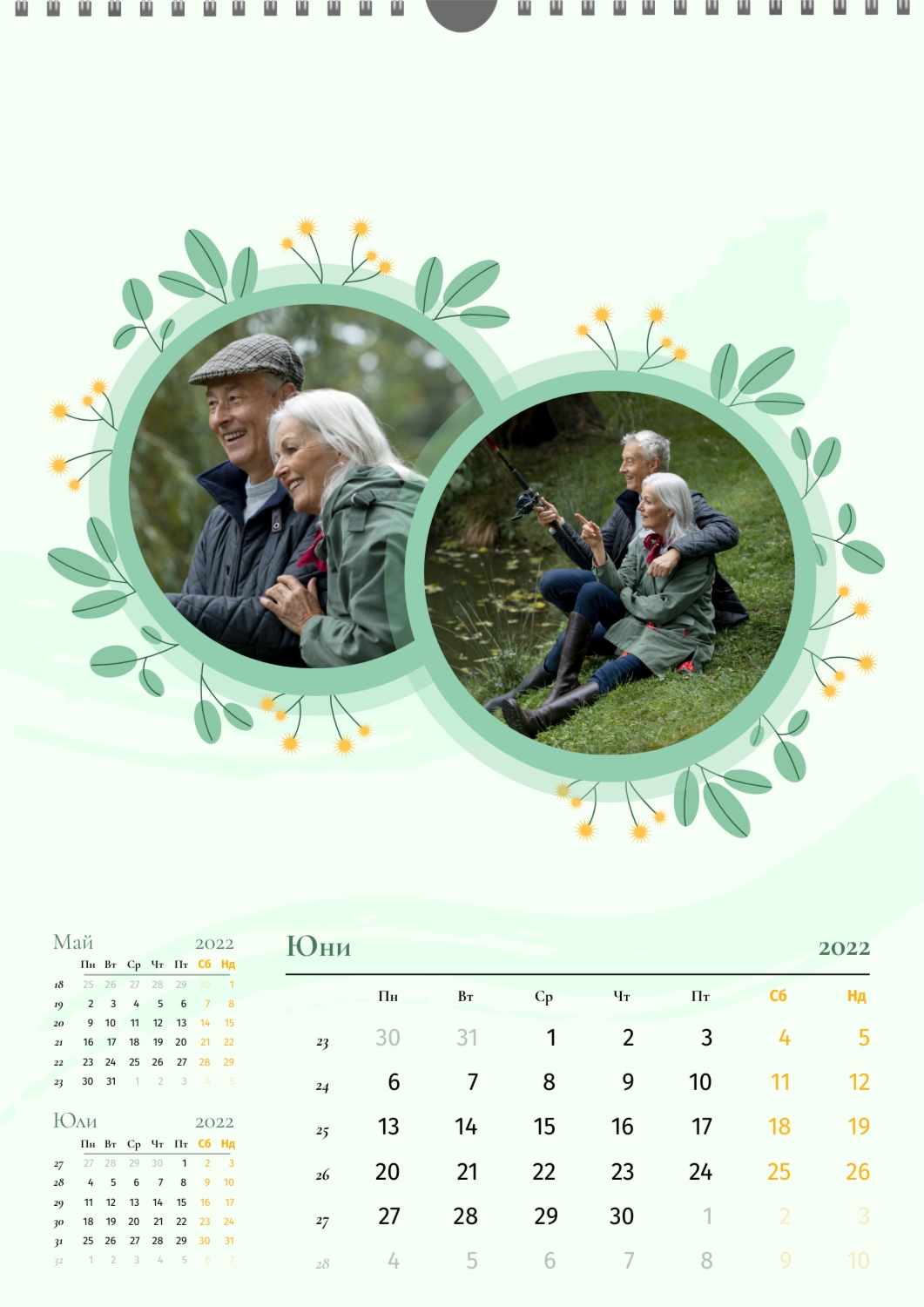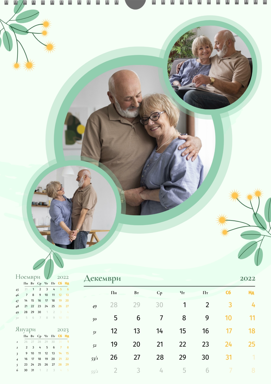 Безплатен шаблон за календар с най-добрите спомени на влюбена двойка. Създайте оформление със собствените си ръце в конструктора на календари.