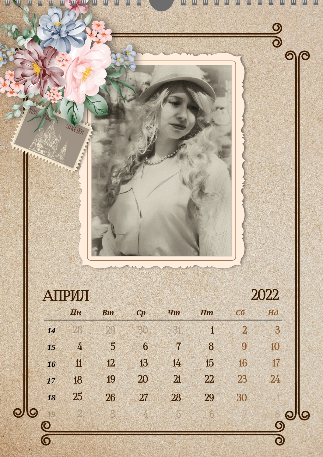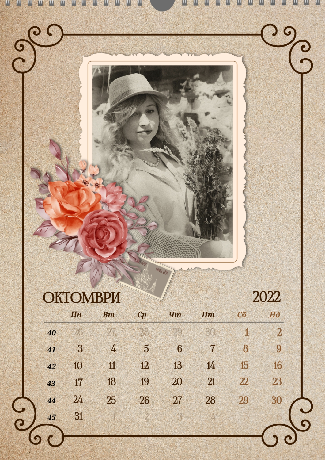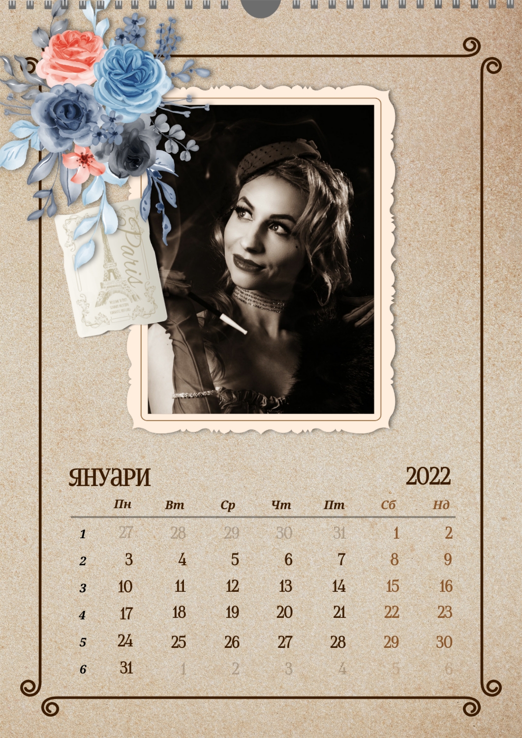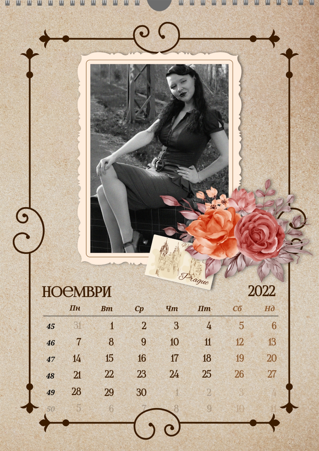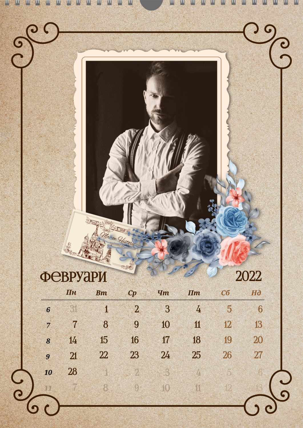 Безплатен шаблон за календар с най-добрите спомени на влюбена двойка. Създайте оформление със собствените си ръце в конструктора на календари.