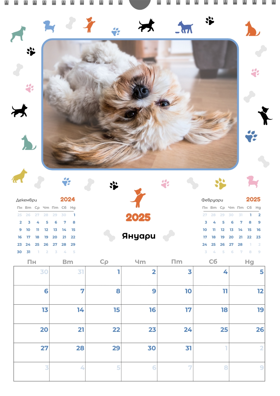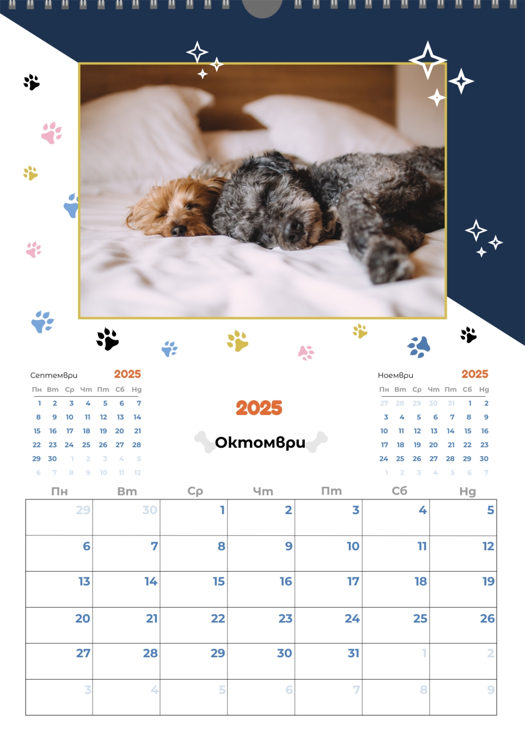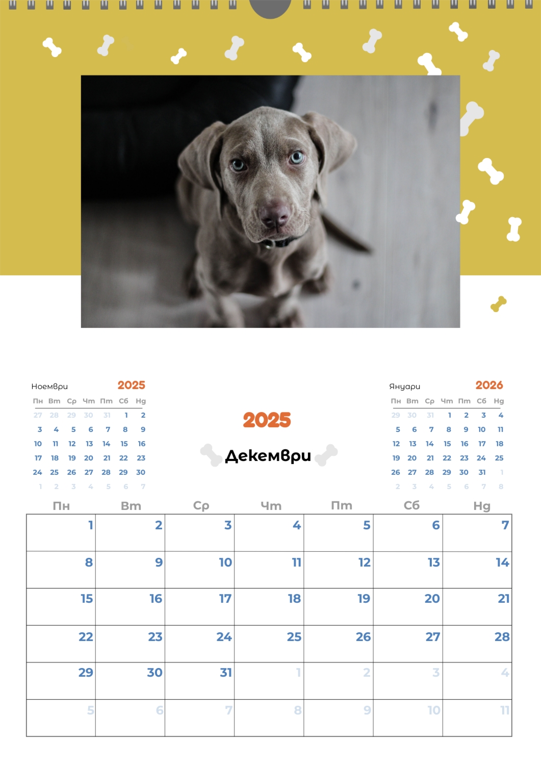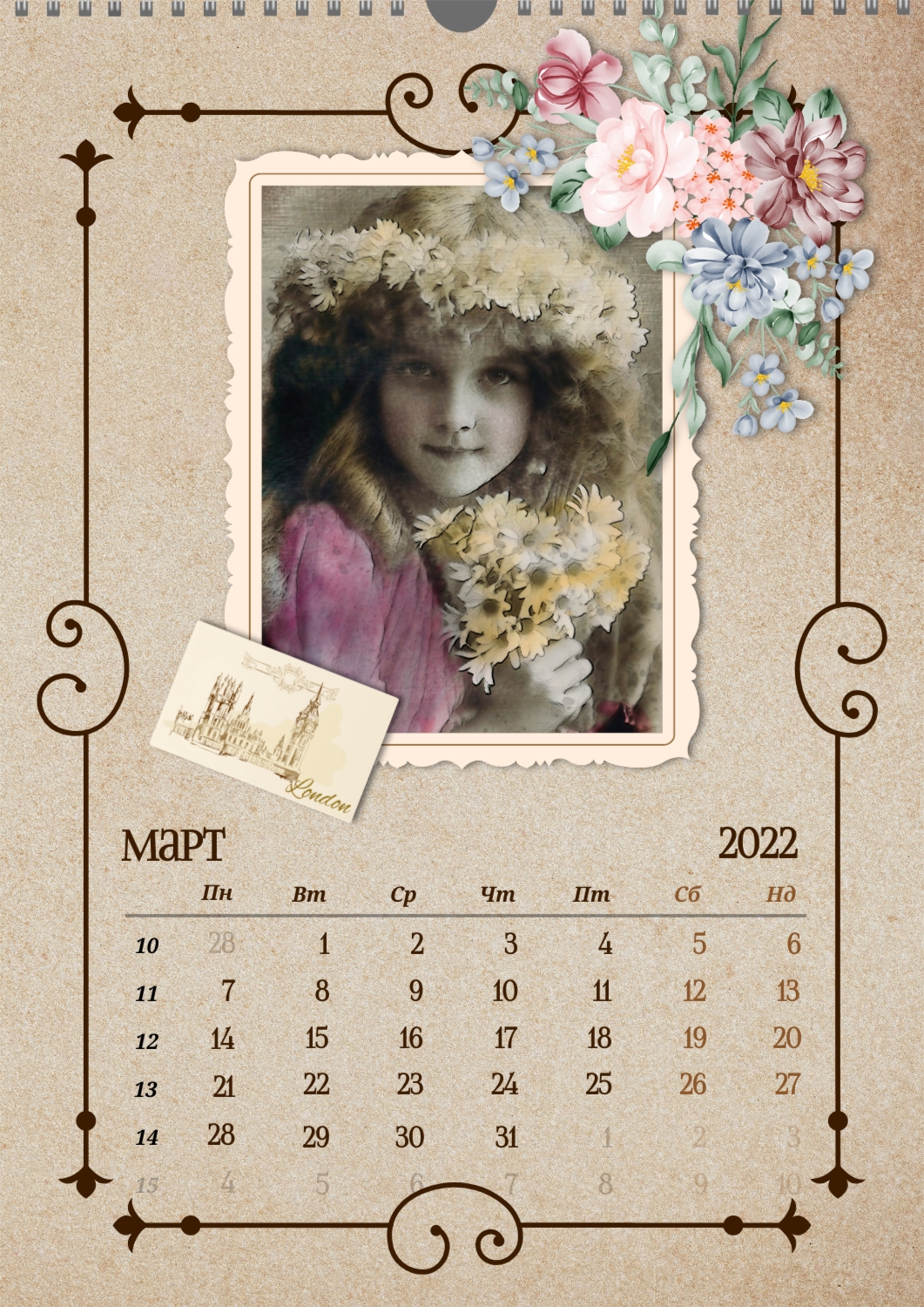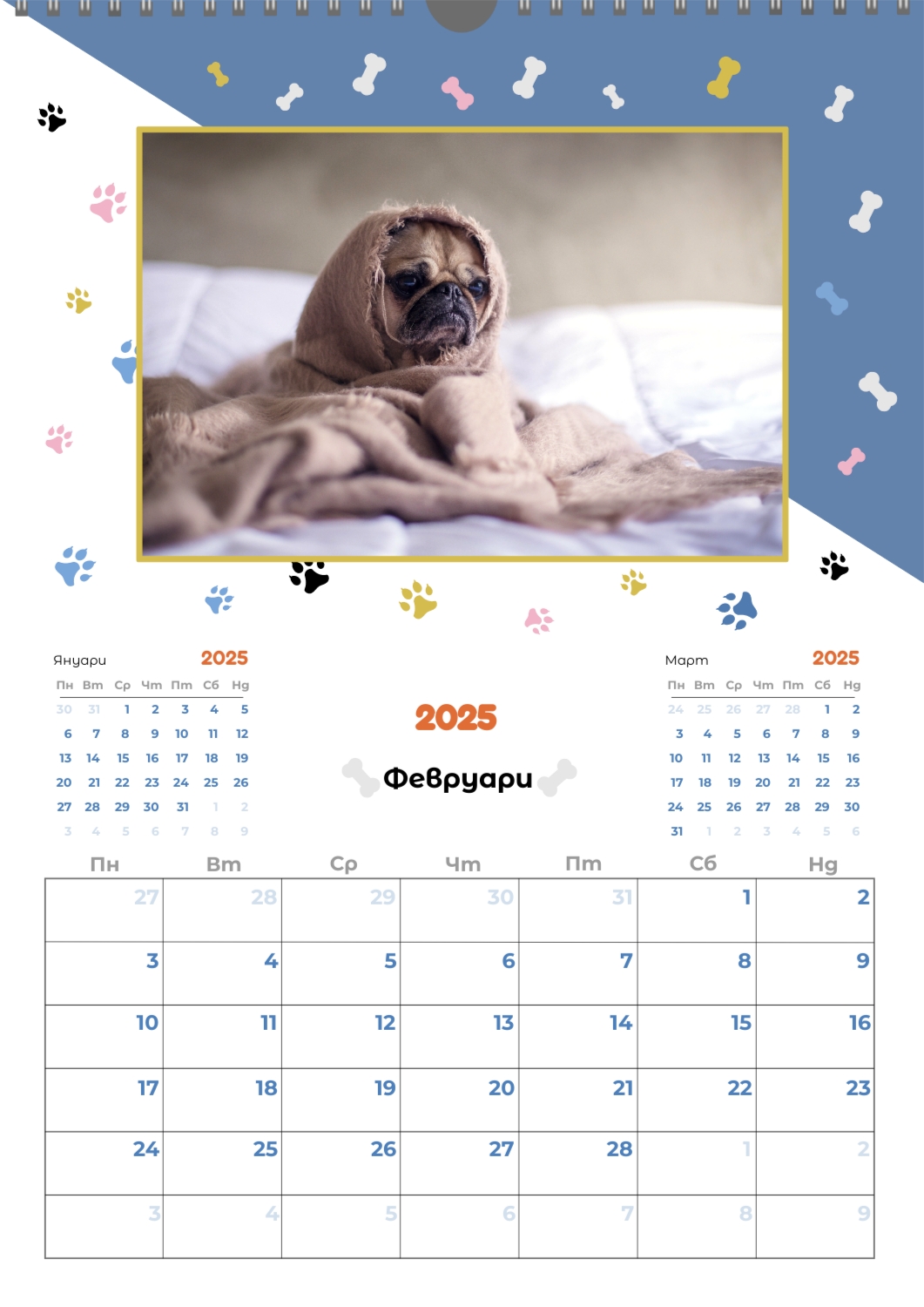 Безплатен шаблон за календар с най-добрите спомени на влюбена двойка. Създайте оформление със собствените си ръце в конструктора на календари.