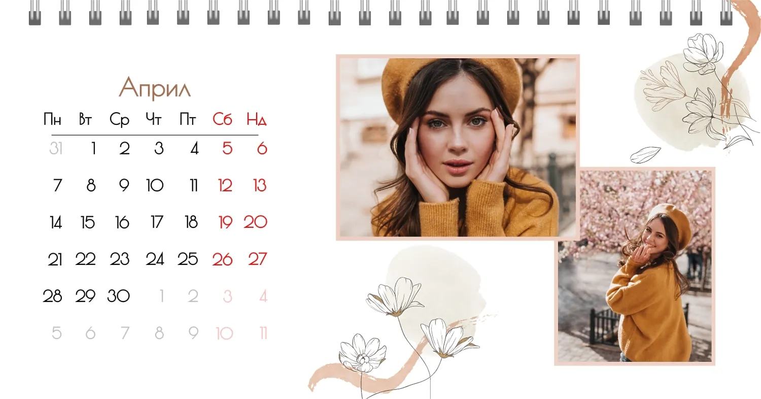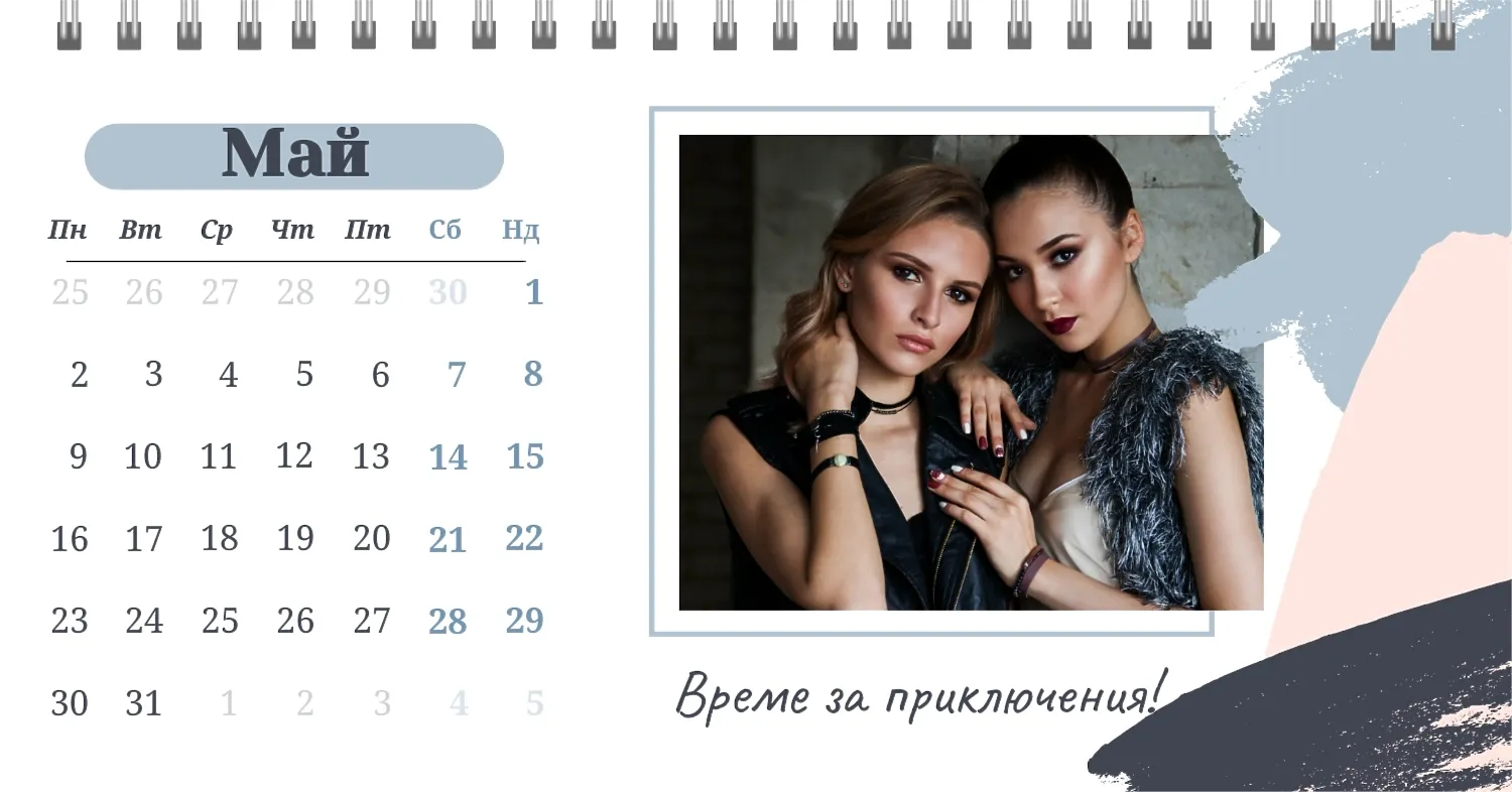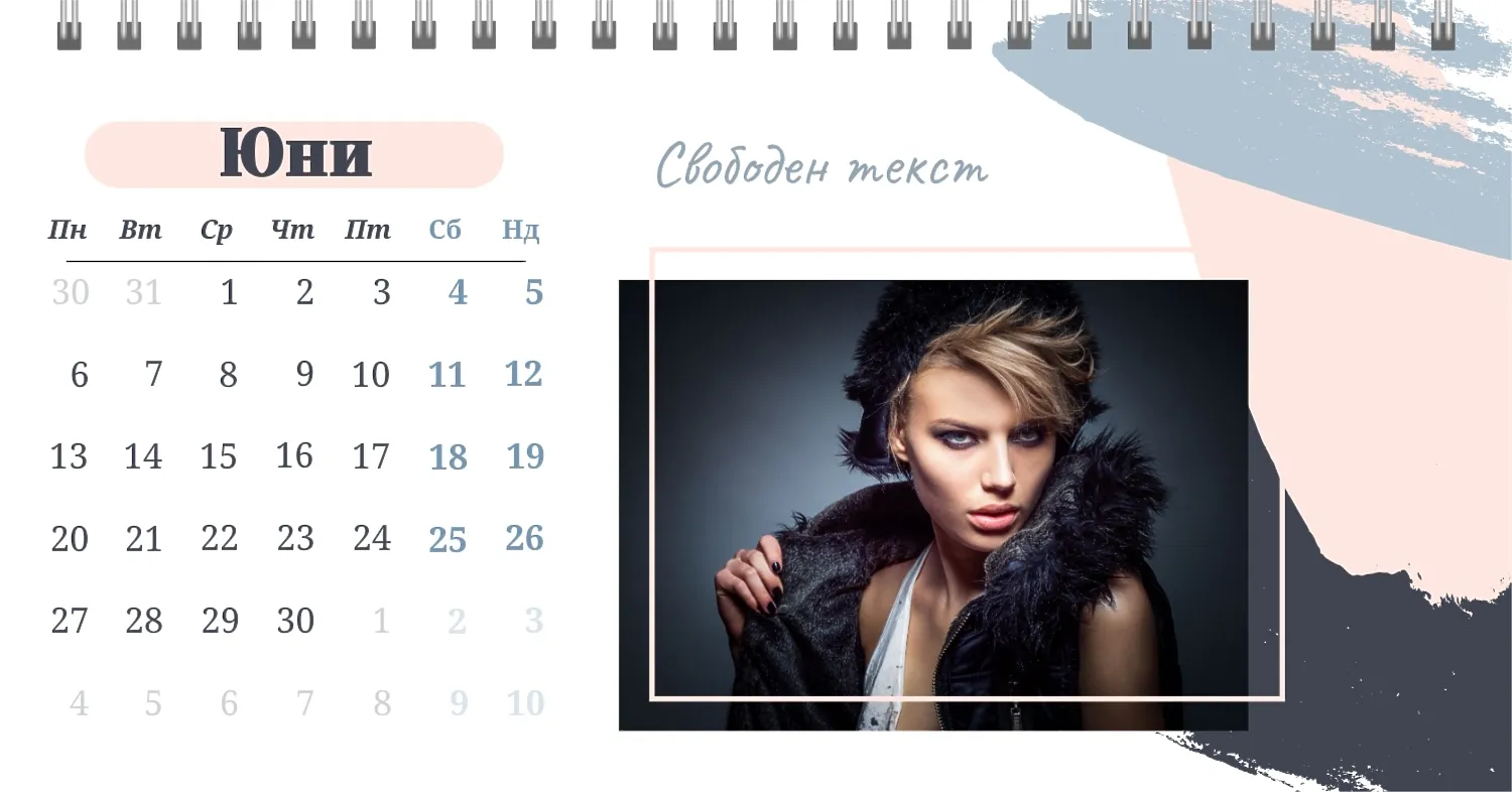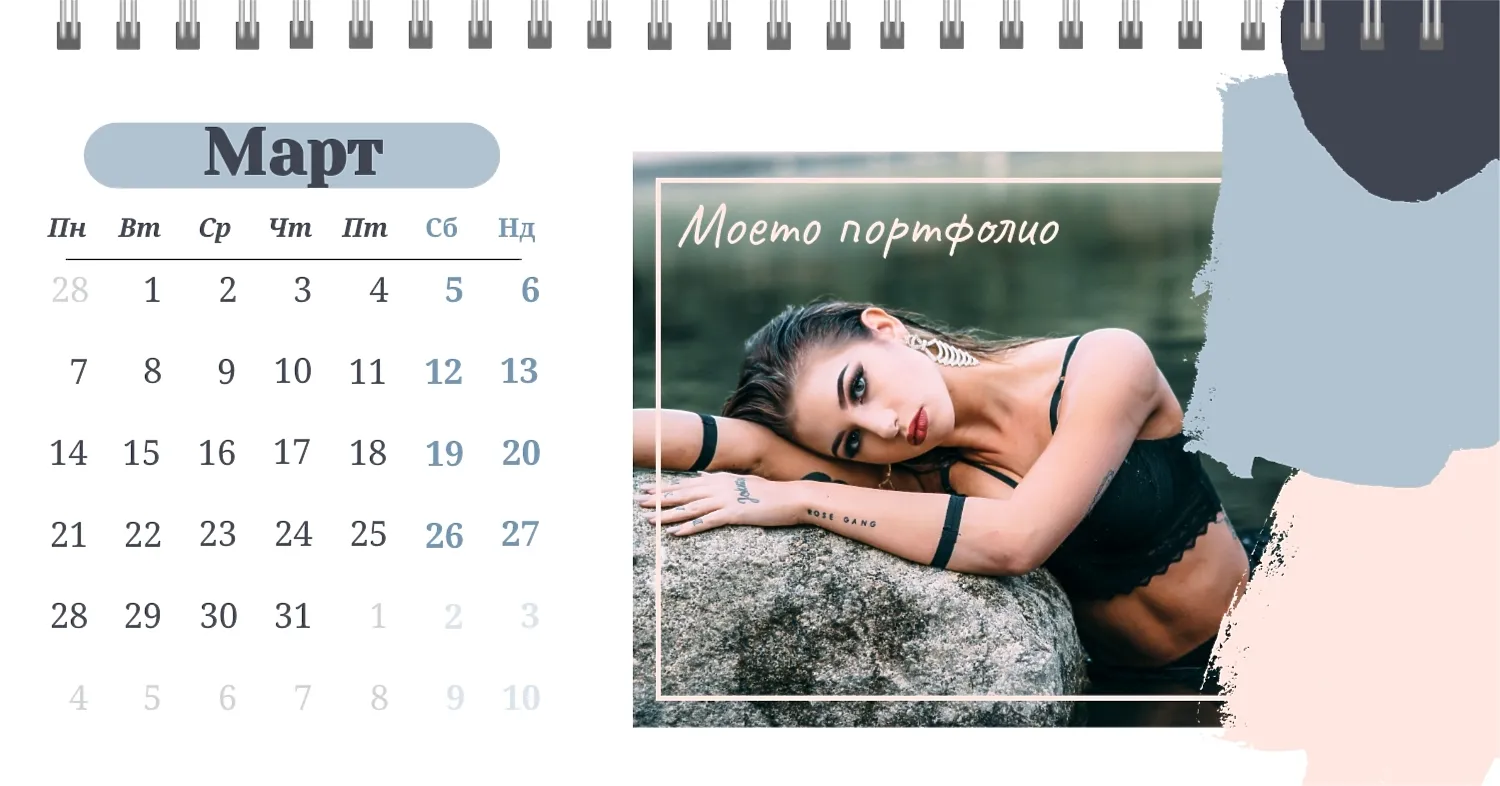 Безплатен шаблон за календар с модна фотосесия за момиче, жена, модел. Създайте оформление със собствените си ръце в конструктора на календари.