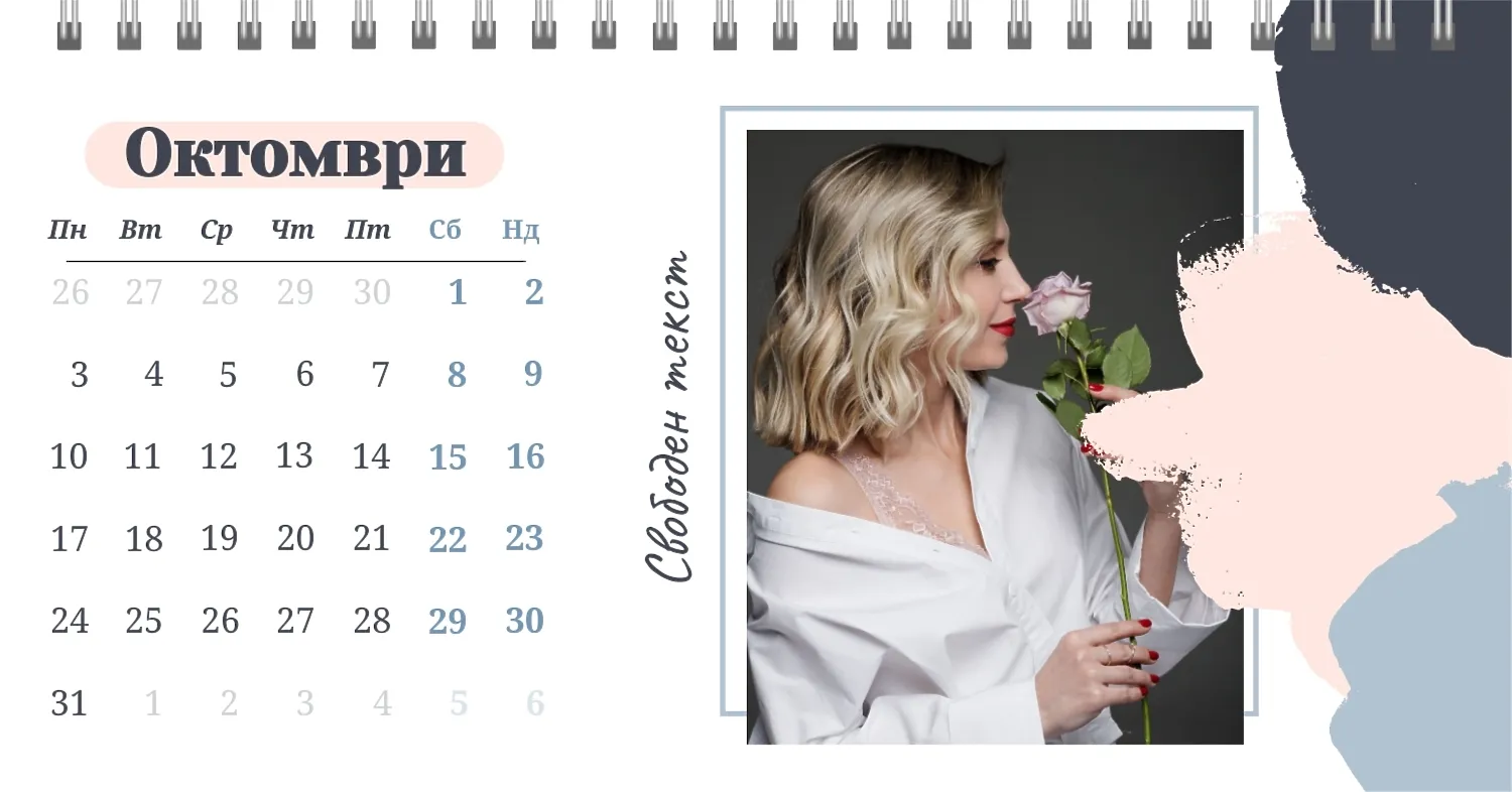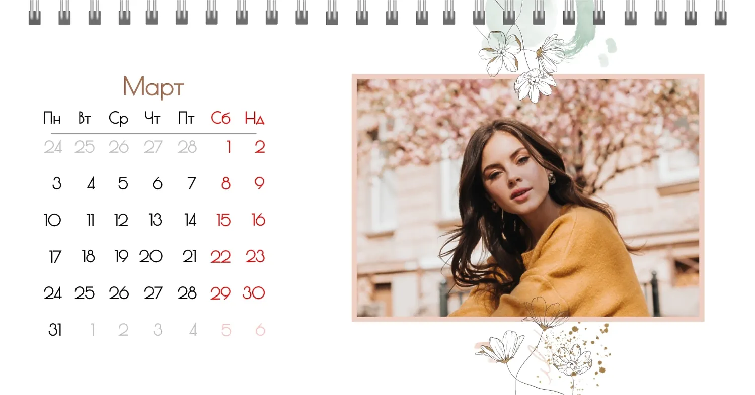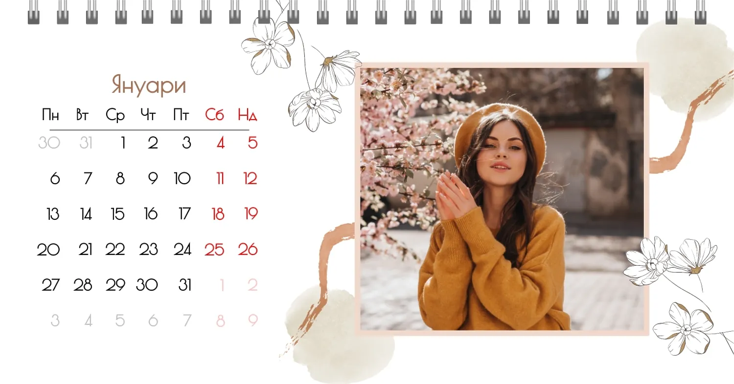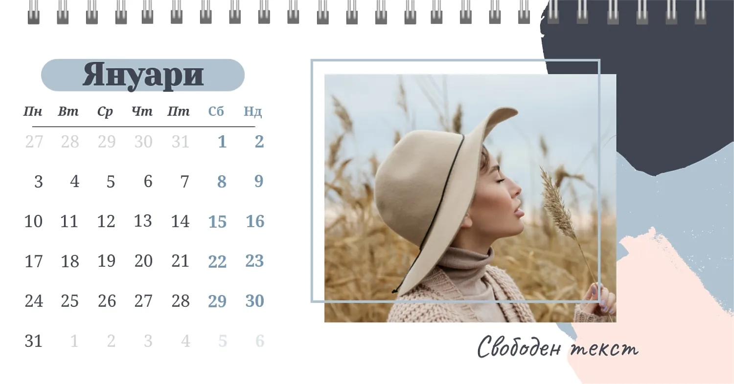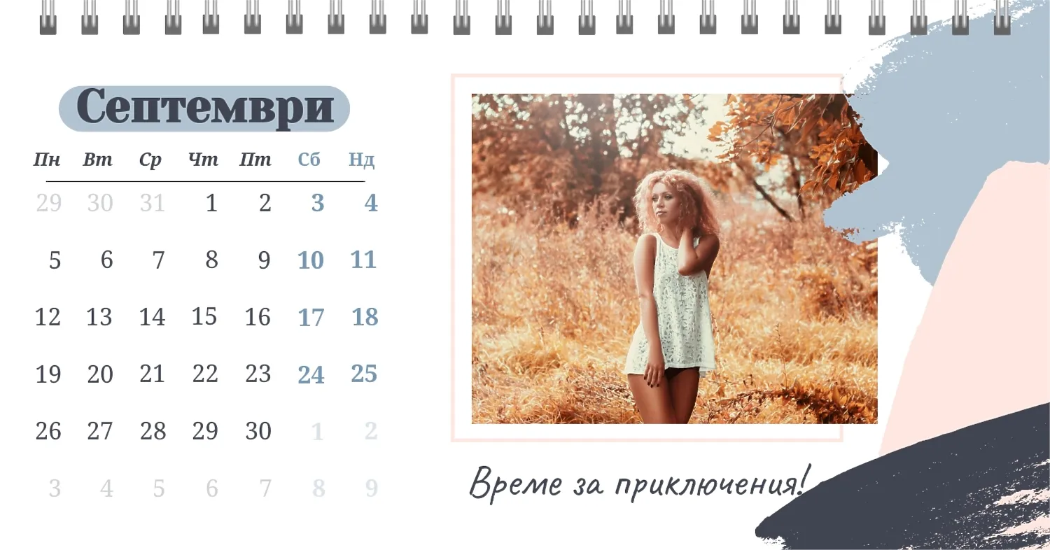 Безплатен шаблон за календар с модна фотосесия за момиче, жена, модел. Създайте оформление със собствените си ръце в конструктора на календари.