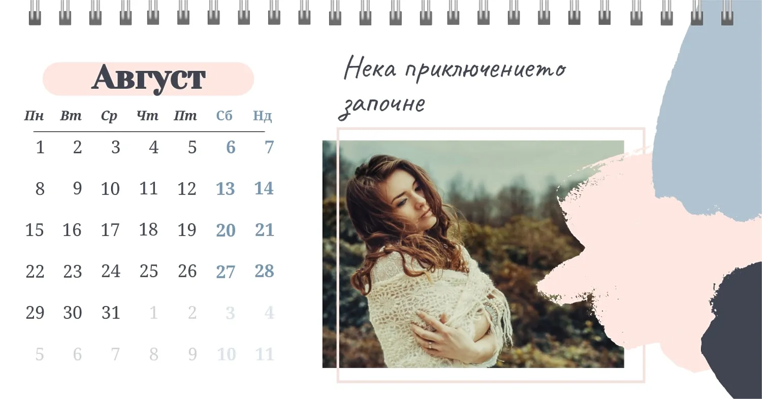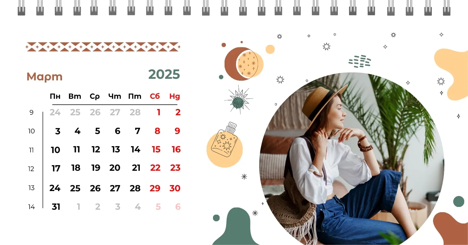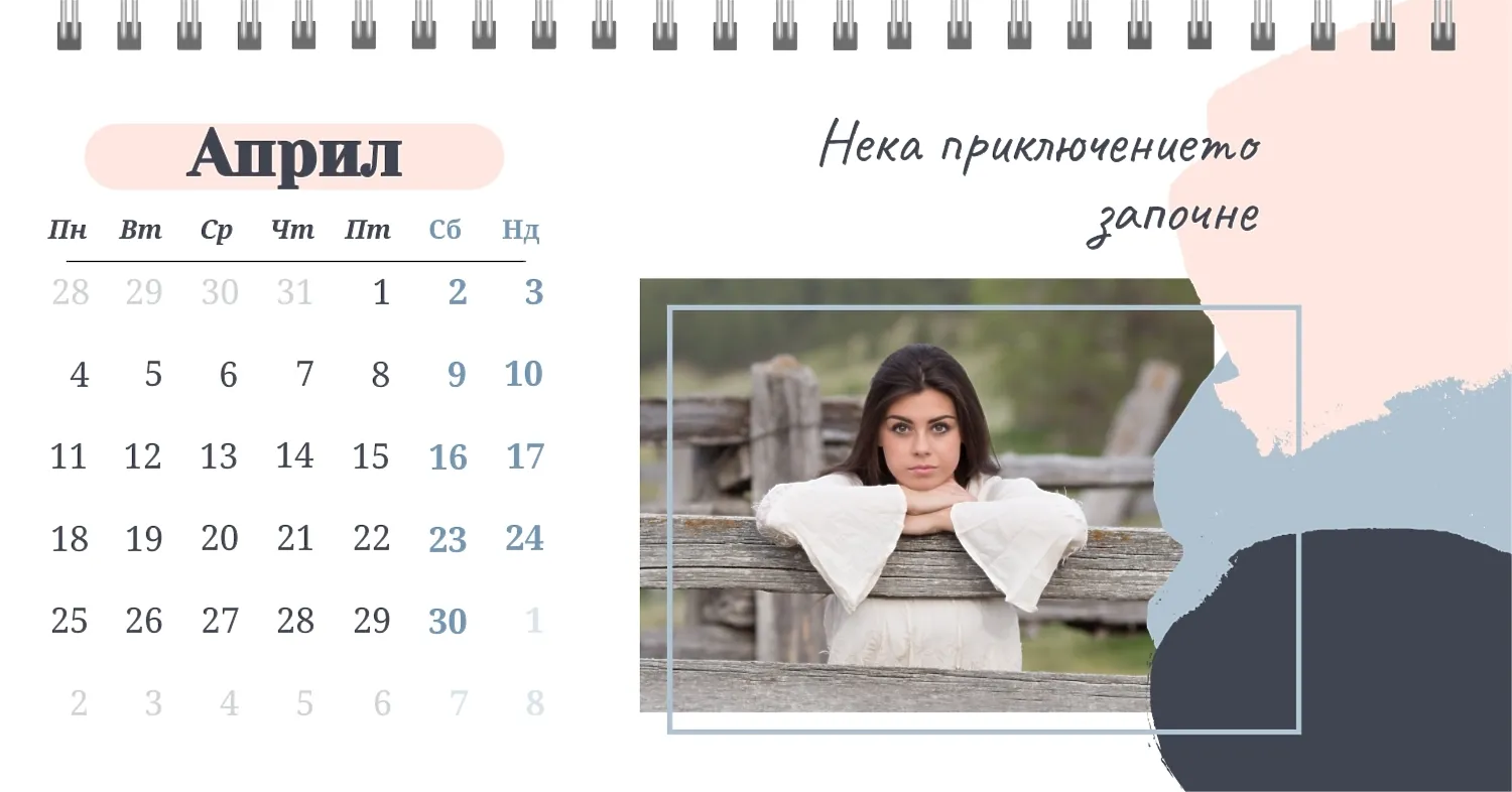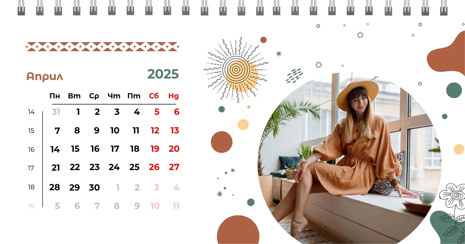 Безплатен шаблон за календар с модна фотосесия за момиче, жена, модел. Създайте оформление със собствените си ръце в конструктора на календари.