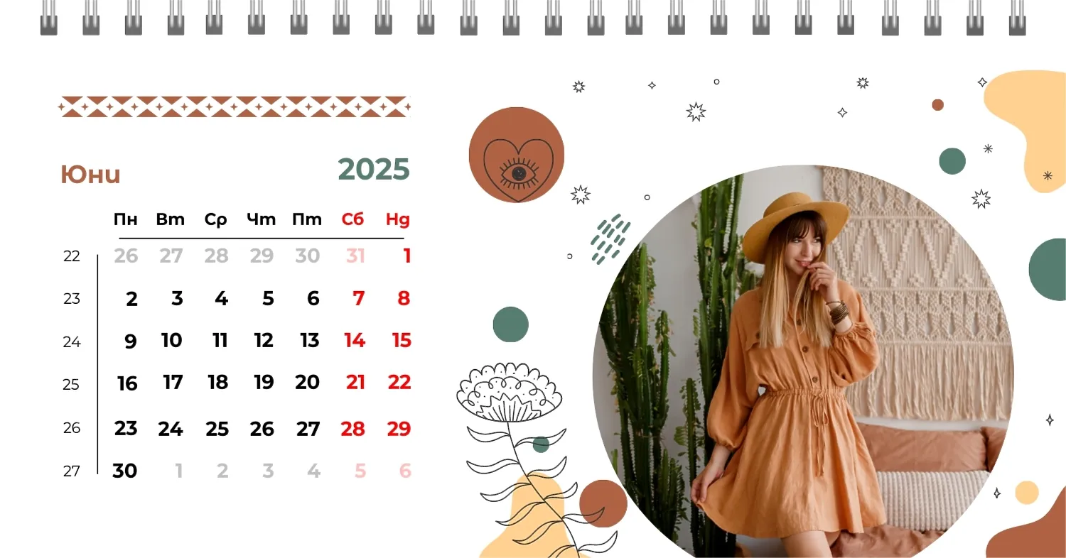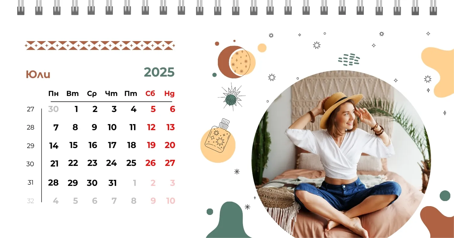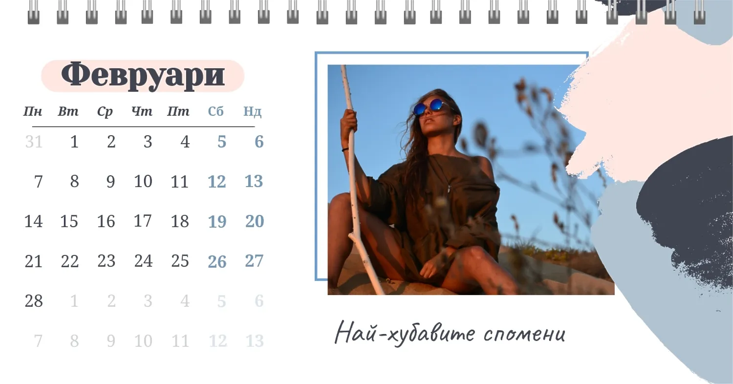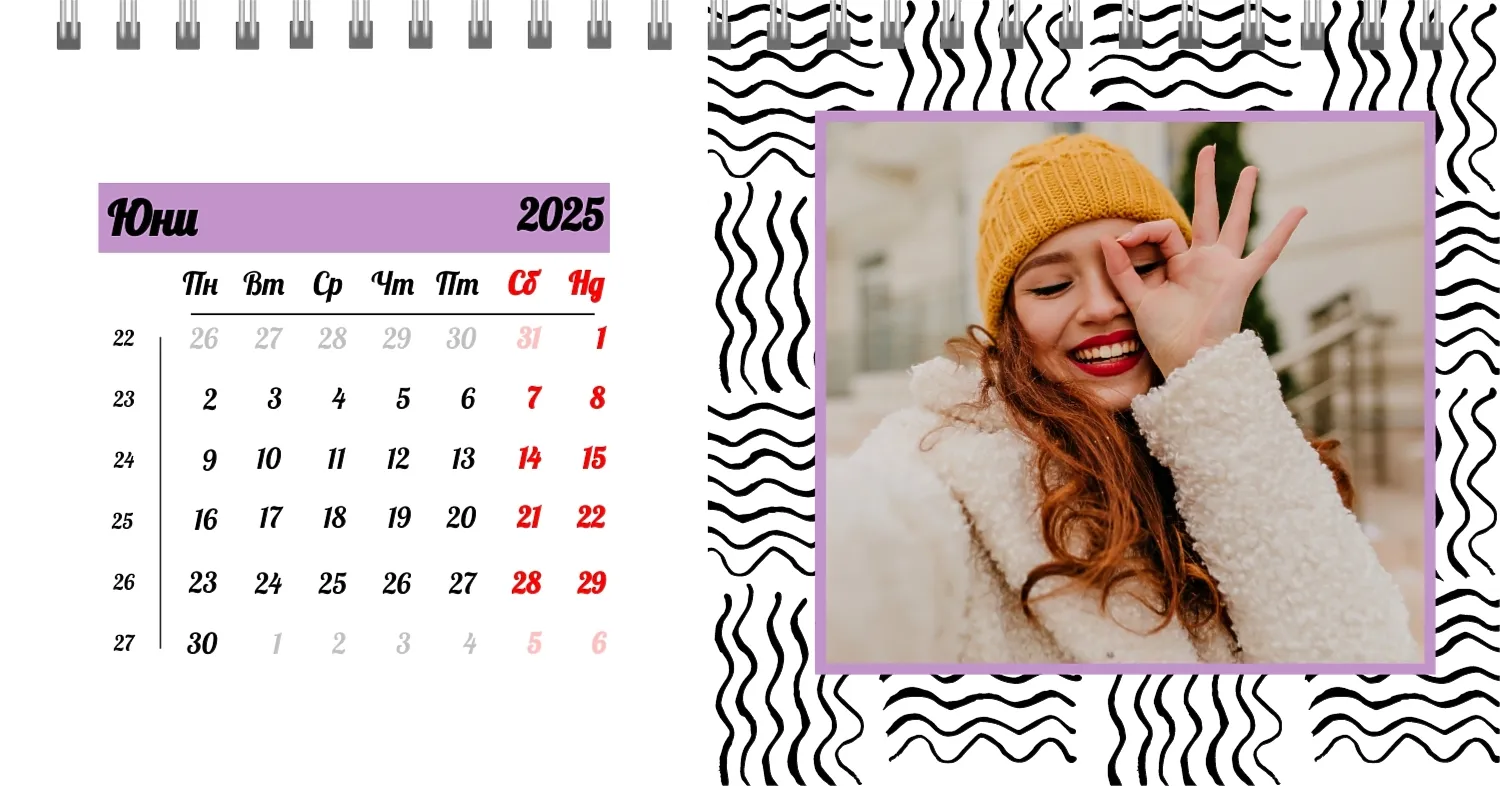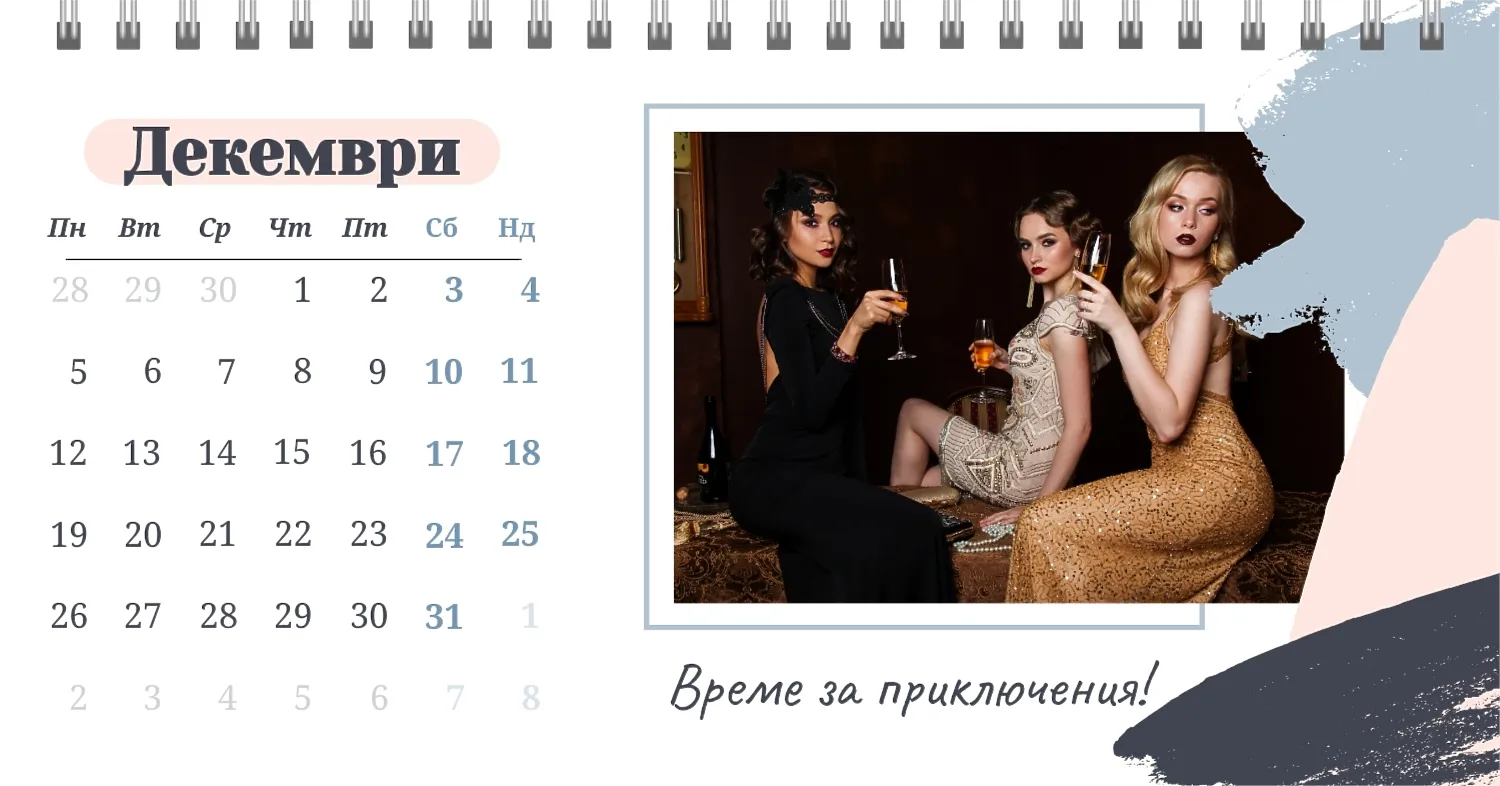 Безплатен шаблон за календар с модна фотосесия за момиче, жена, модел. Създайте оформление със собствените си ръце в конструктора на календари.