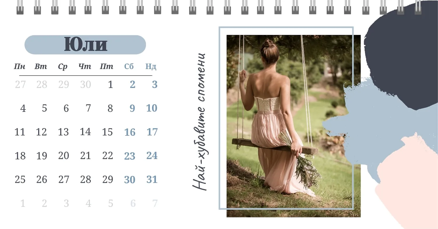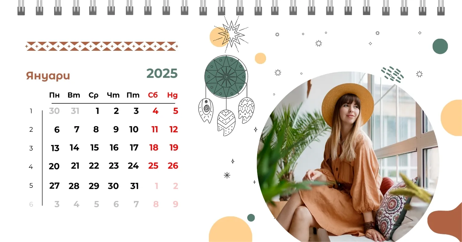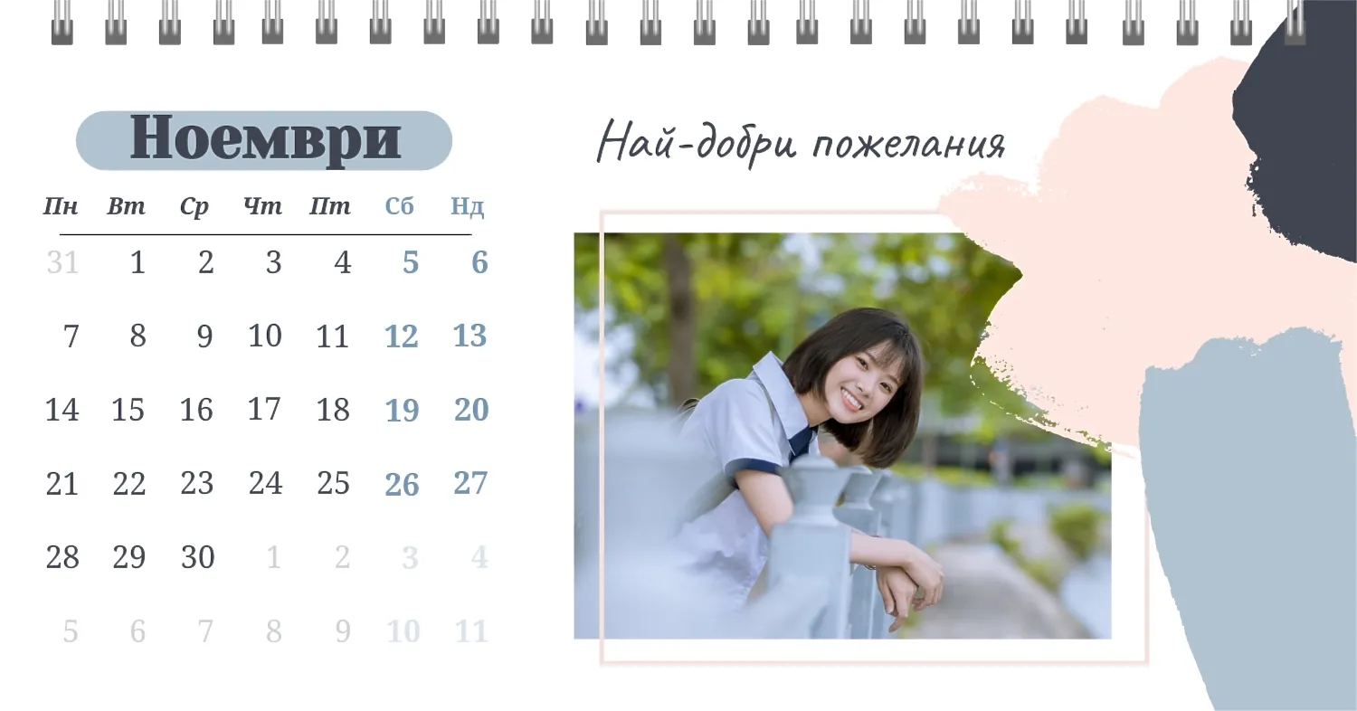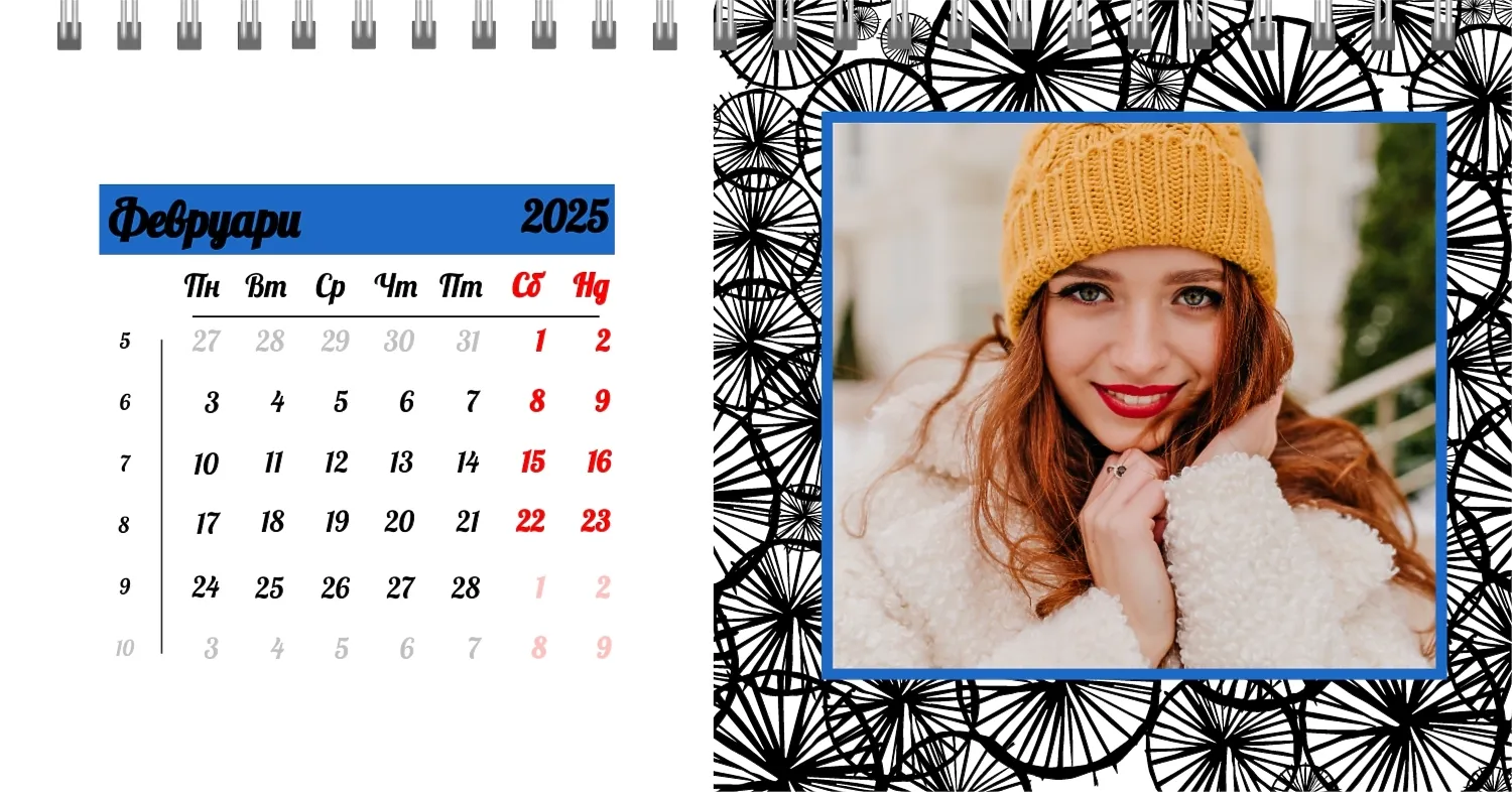 Безплатен шаблон за календар с модна фотосесия за момиче, жена, модел. Създайте оформление със собствените си ръце в конструктора на календари.