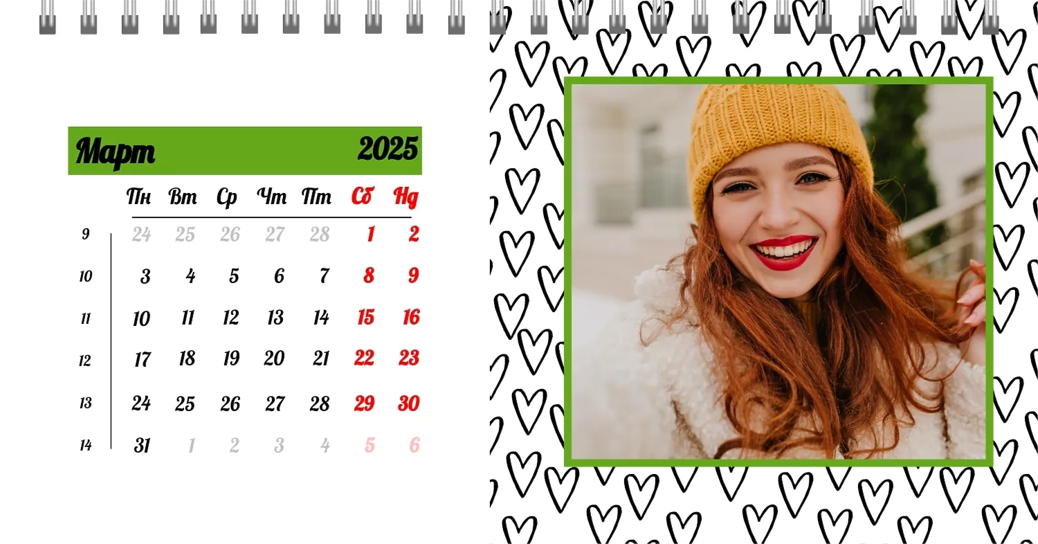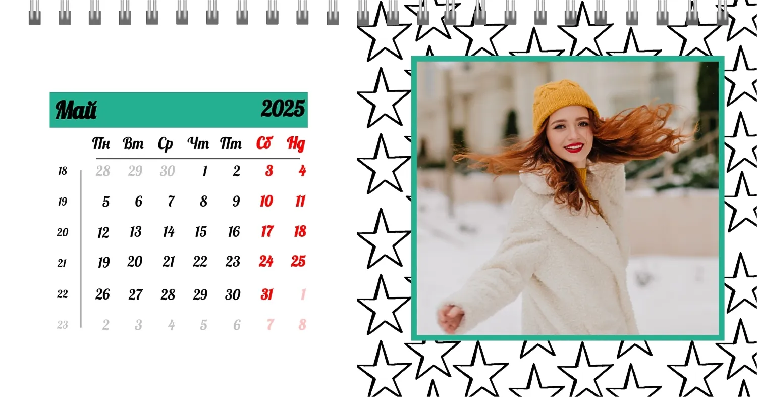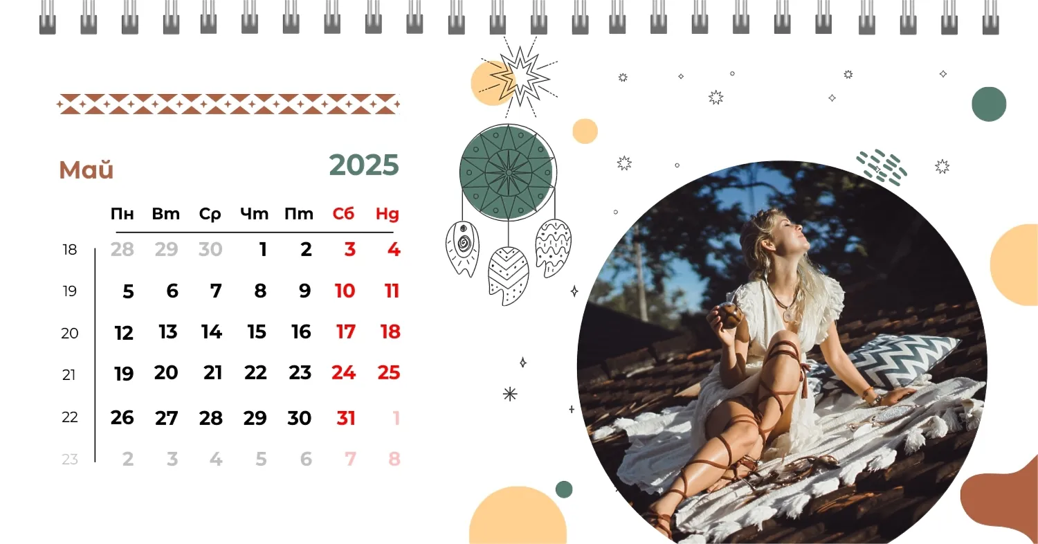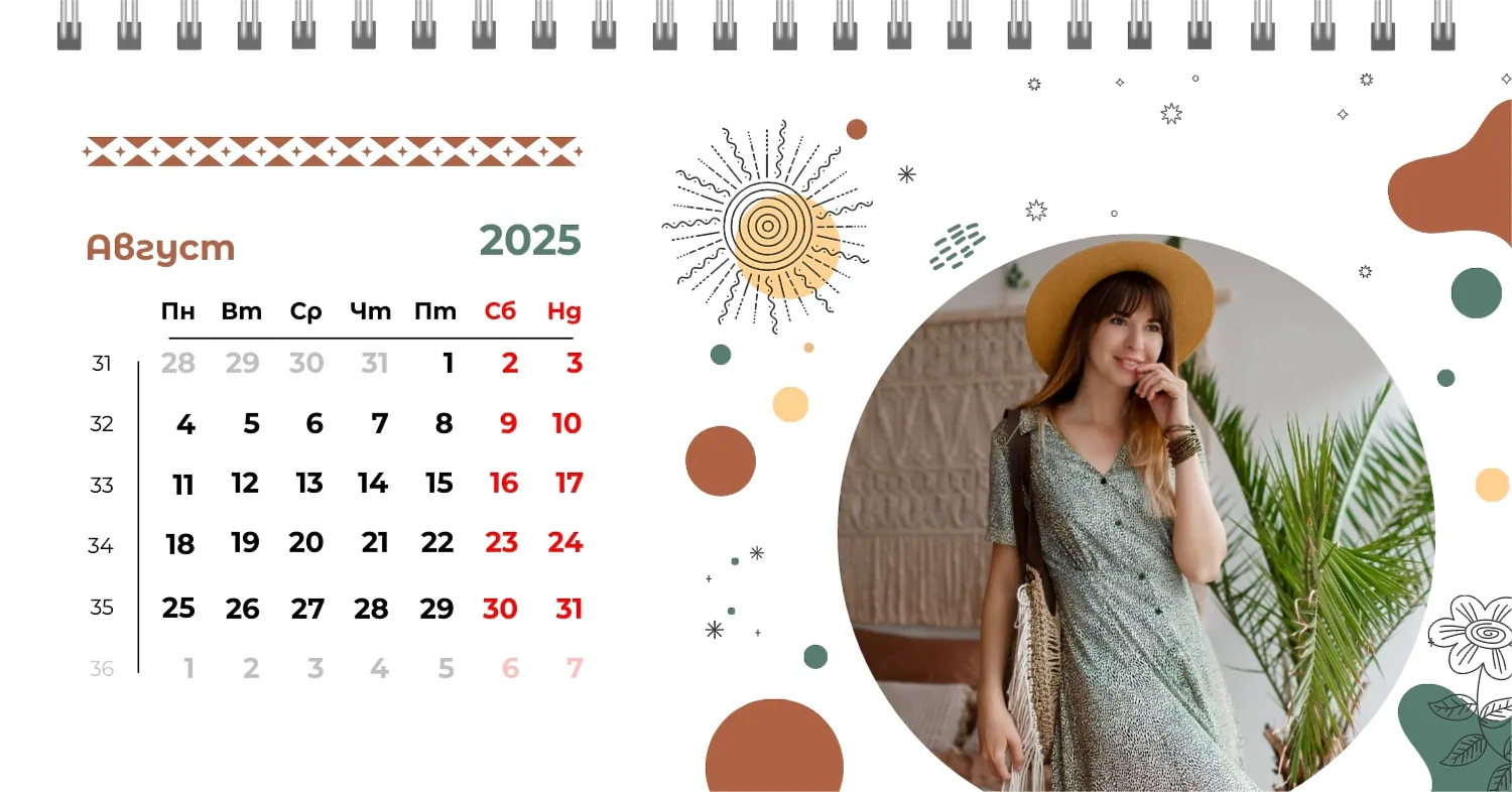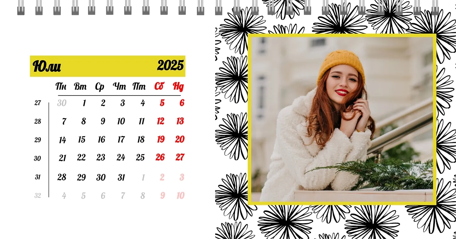 Безплатен шаблон за календар с модна фотосесия за момиче, жена, модел. Създайте оформление със собствените си ръце в конструктора на календари.