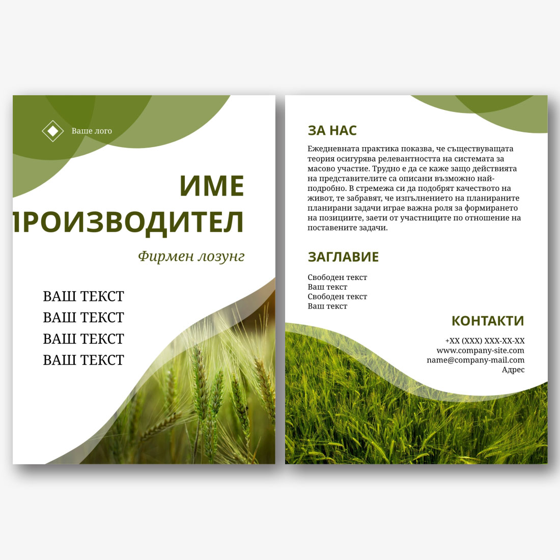 Информация за шаблона