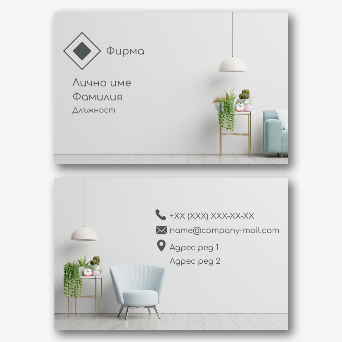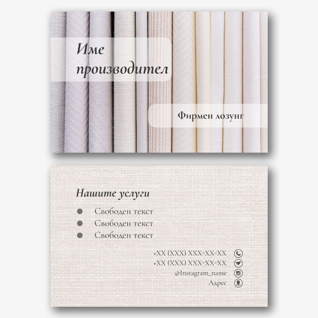 Безплатен шаблон за визитка за магазин за текстил, спално бельо, завеси. Създайте оформление на визитка в онлайн конструктора на визитки.