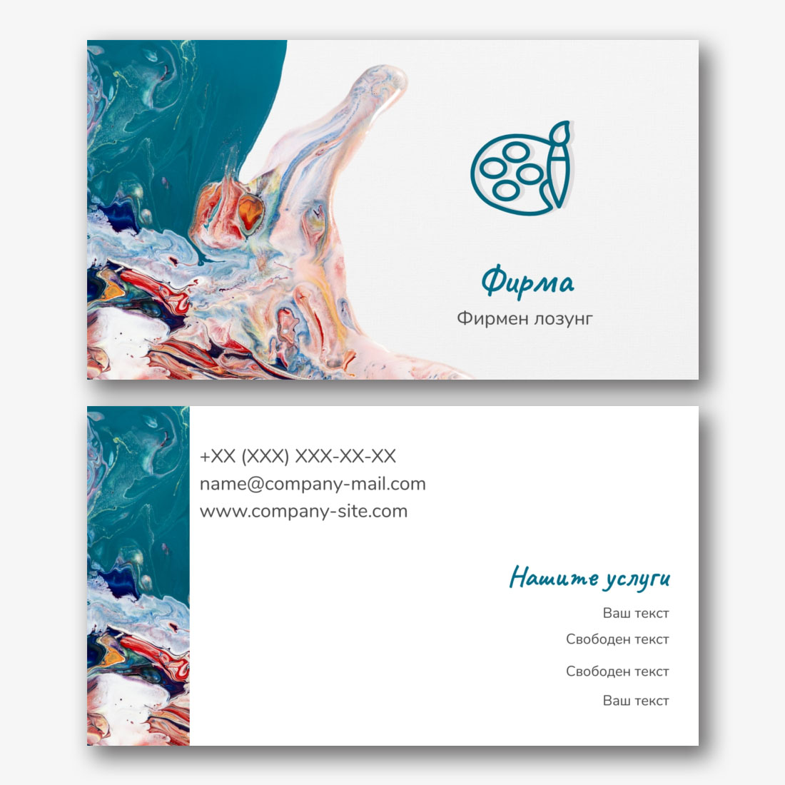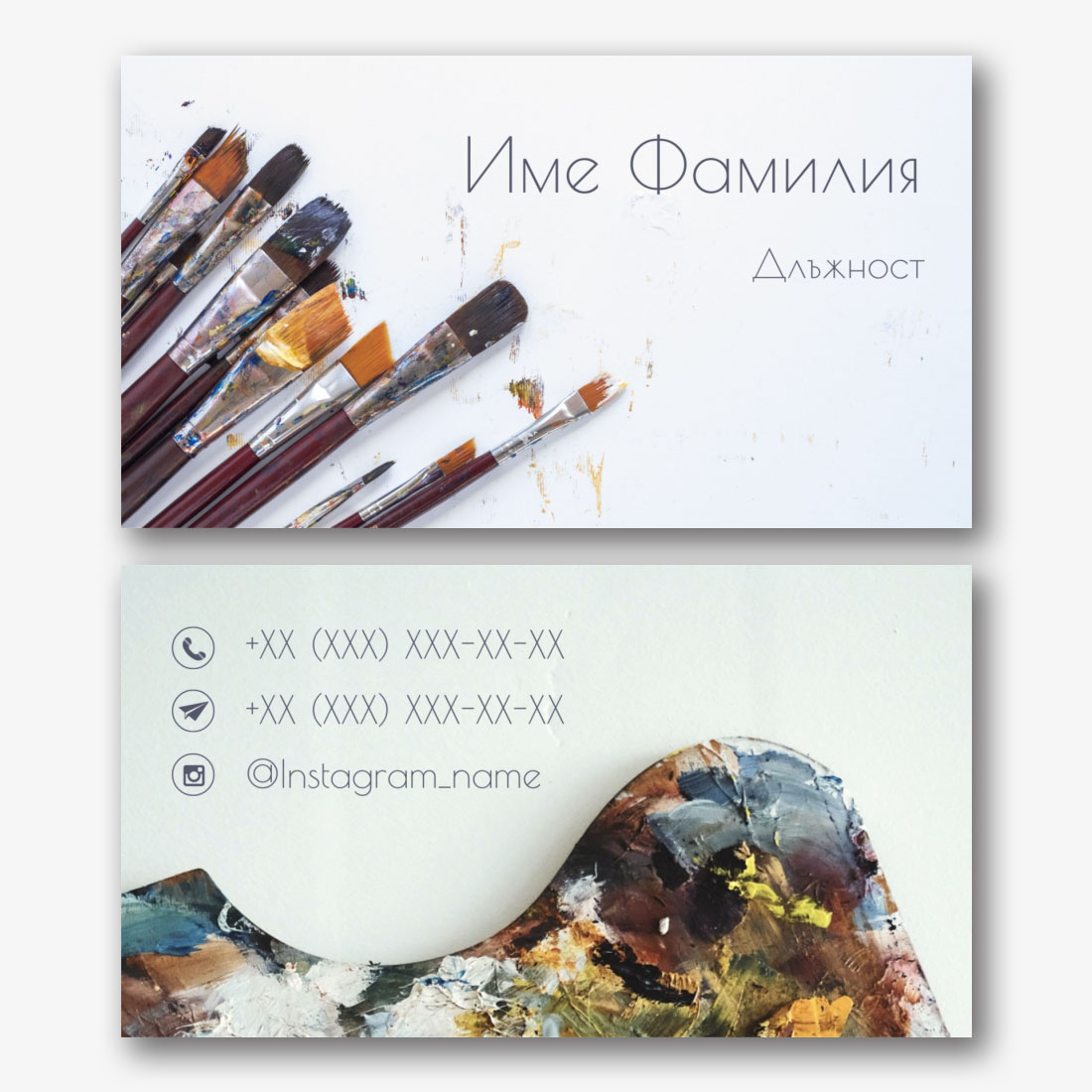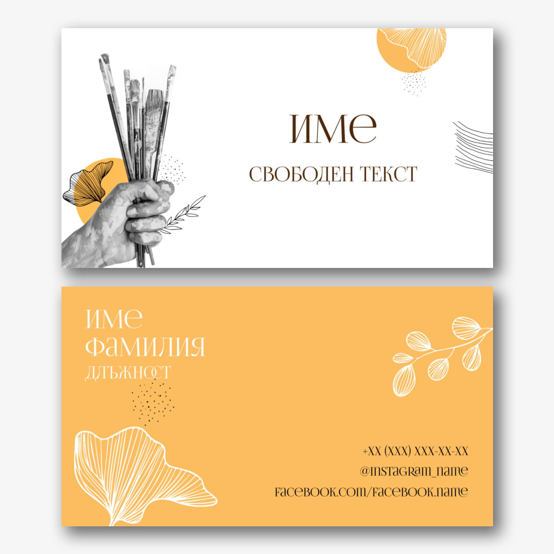 Универсалната визитка с черен фон е стилен и модерен дизайн, който е подходящ за всеки бизнес. Основното предимство на този шаблон е неговата гъвкавост и простота. Това означава, че можете да го използвате за всеки бизнес, независимо от неговата специализация, и ще изглежда стилно и модерно. Моделът включва минимален брой декорации и детайли. Черното е избрано като фон, а бялото се използва като цвят на шрифта. Простотата на този дизайн ви позволява да се съсредоточите върху най - важното-вашия бизнес и услугите, които вашата компания предоставя. Избирайки този шаблон от онлайн конструктора, можете лесно да персонализирате вашата визитка с удобен конструктор. Можете да промените цветовете, да добавите вашето лого и информация за контакт, услугите, които предоставяте и много други.
