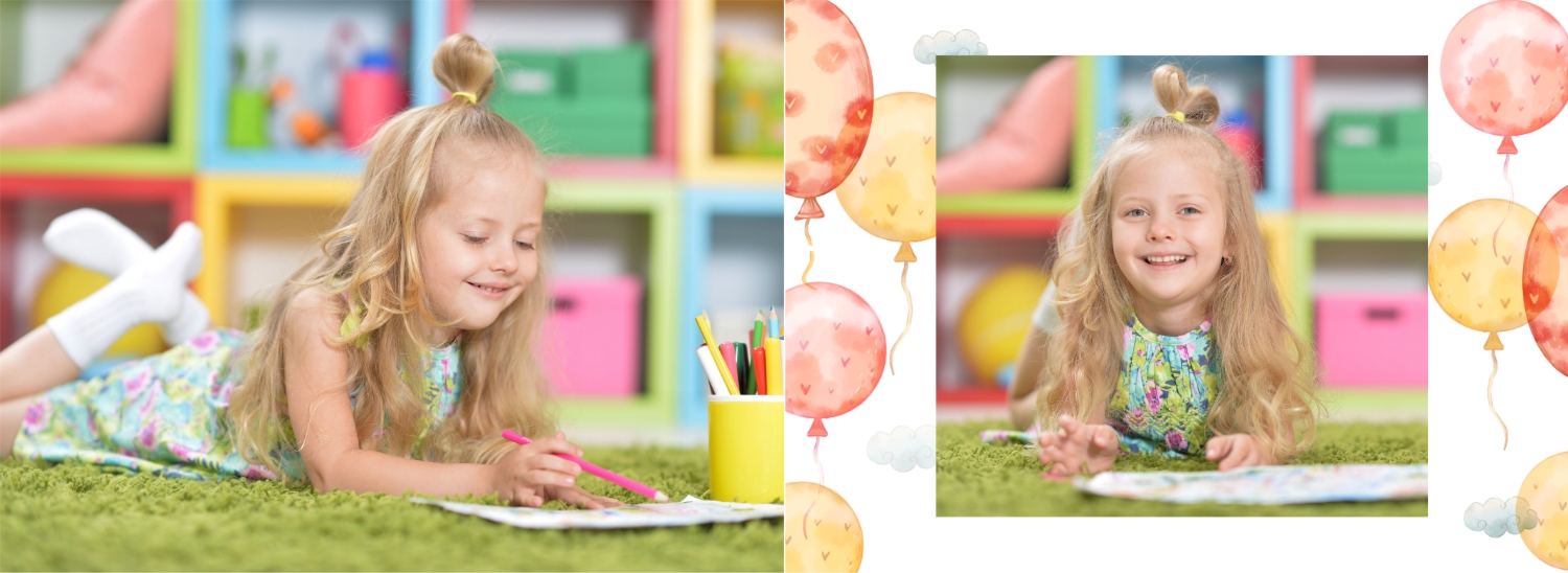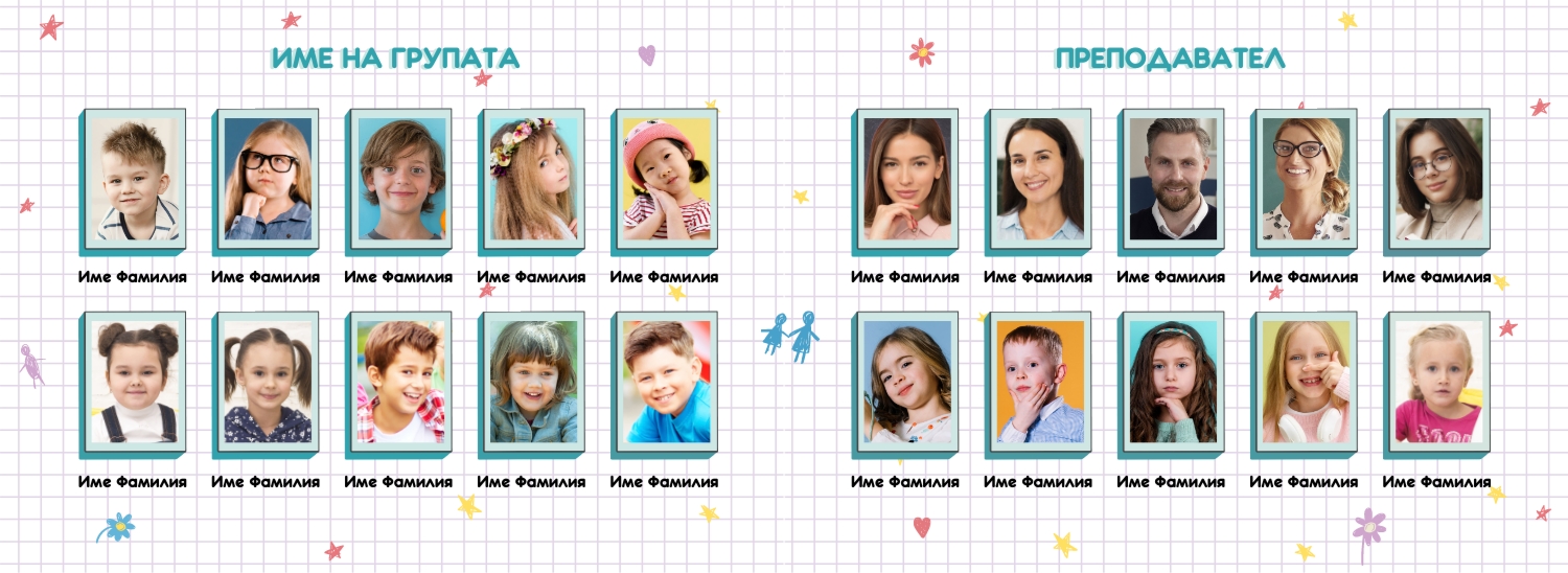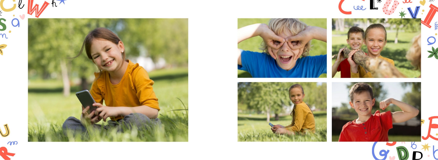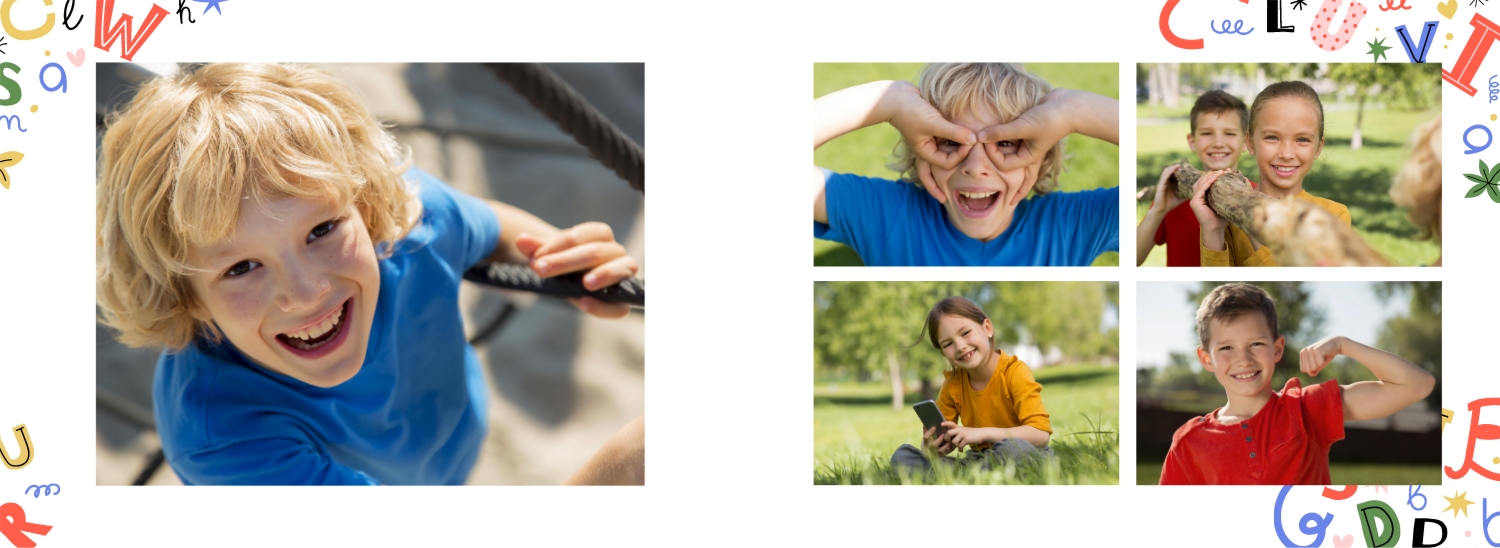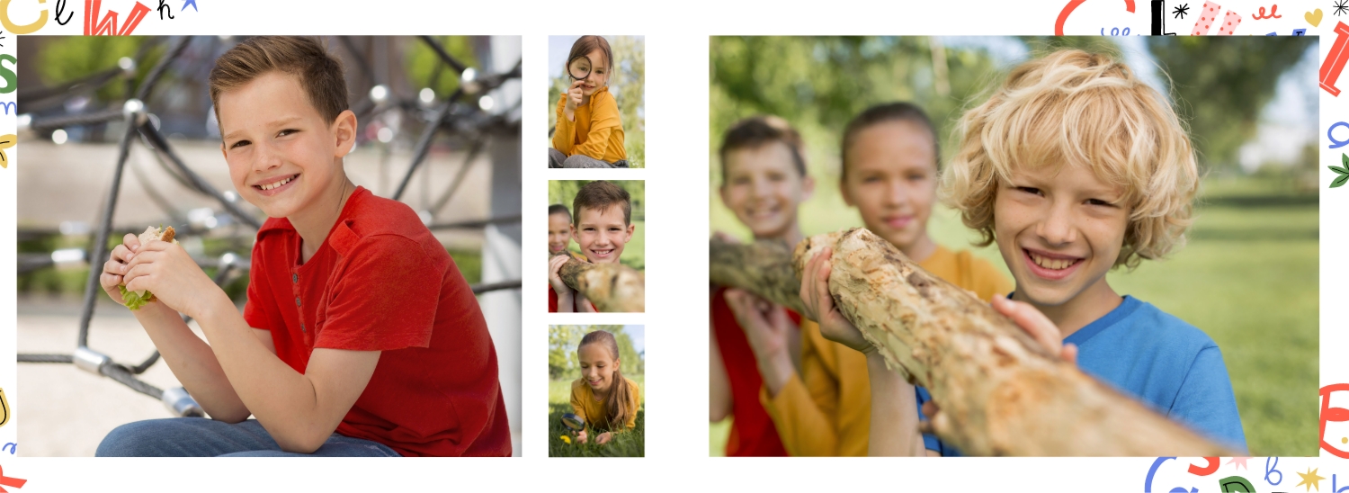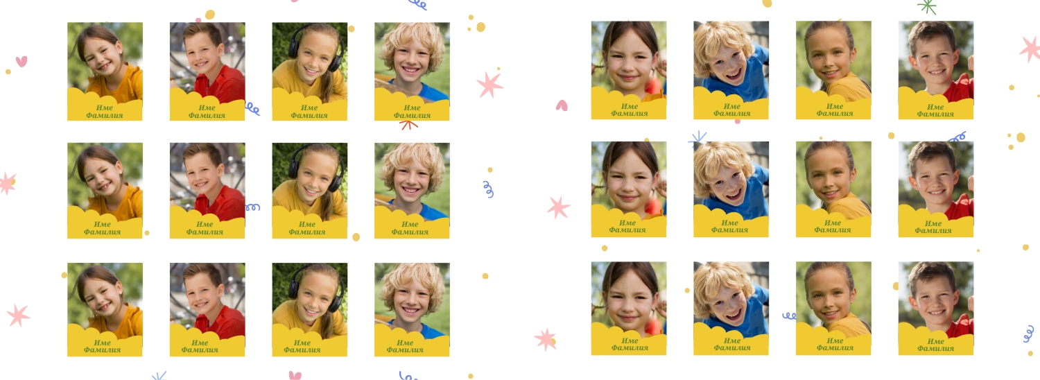 Шаблонът за фотокнига" Сбогом детска градина " е чудесен начин да запазите спомена за завършването на детската градина под формата на уникален фотоалбум. Дизайнът на този шаблон е декориран със сладки шарки, цветове и птици, за да създаде атмосфера на нежност и радост. Вътре в хоризонталната фотокнига можете да поставите снимки, които улавят важни моменти и събития от живота на вашето дете в детската градина. Това могат да бъдат снимки от ученички, изпълнения на различни събития, игри и забавления с приятели, общи моменти в група и много други, които ще ви помогнат да се върнете към тези спомени и да запомните най-ярките моменти.