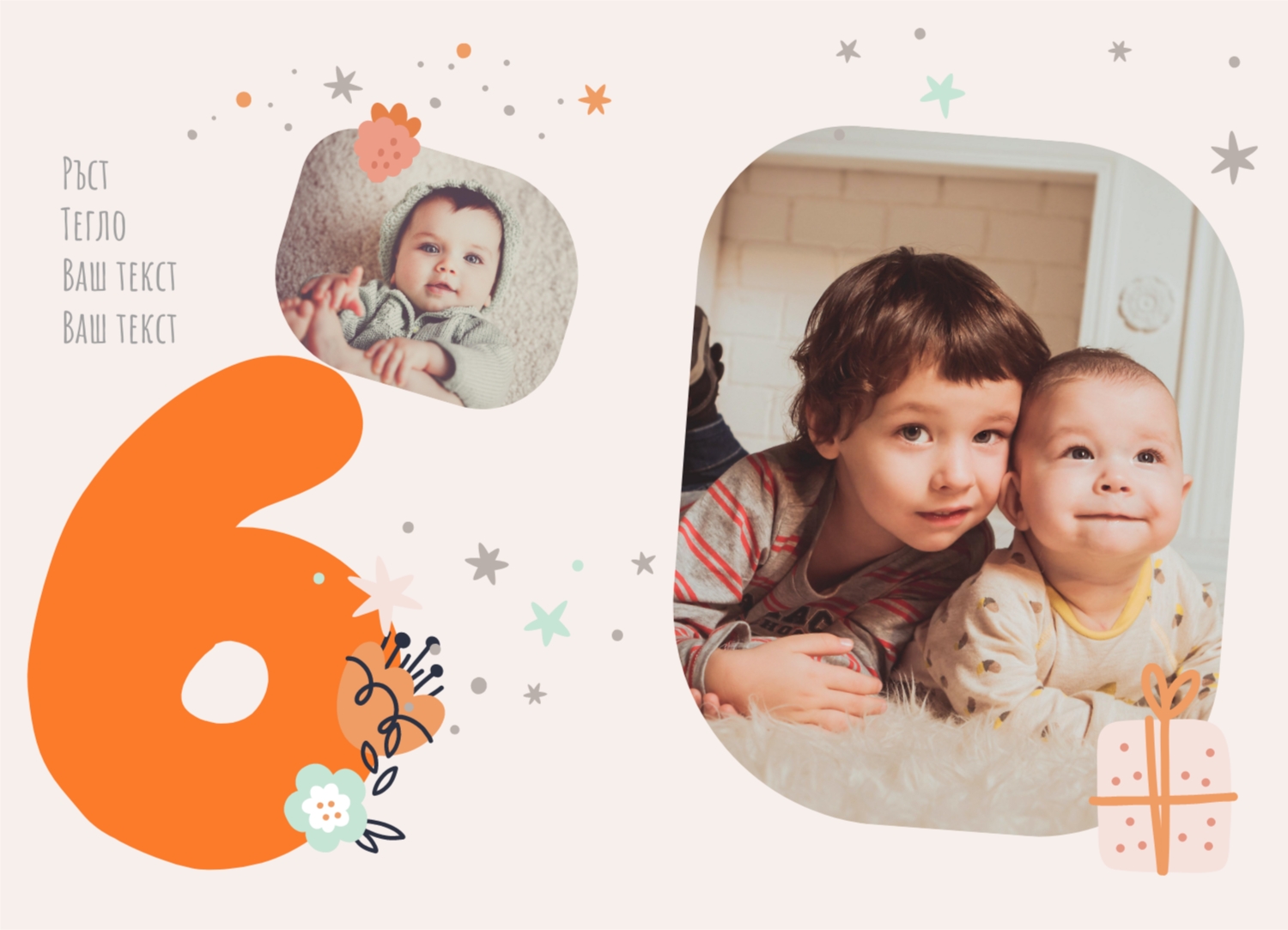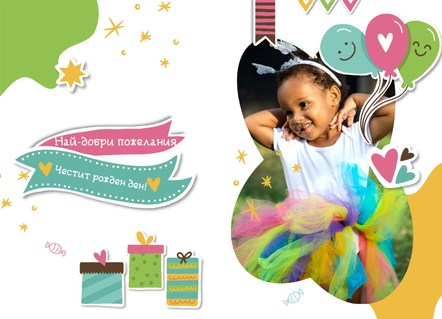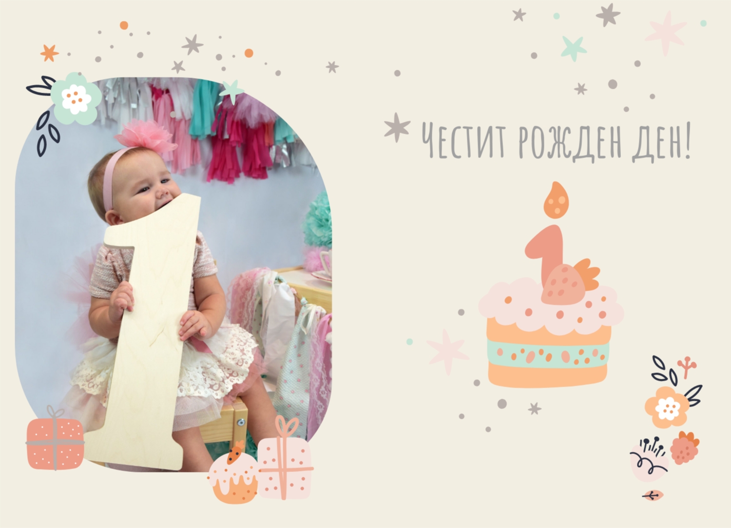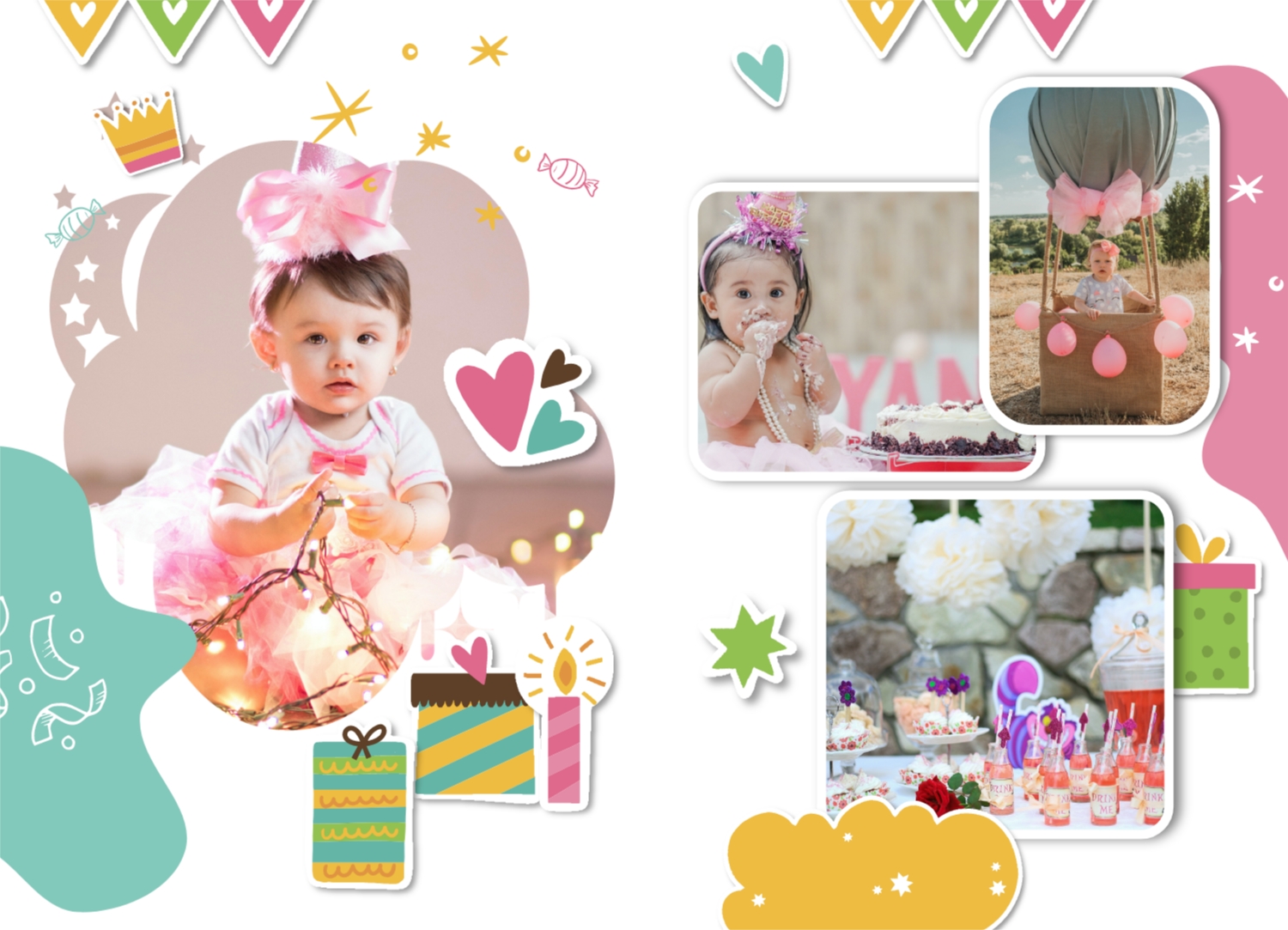 Шаблонът за фотокнига за детски снимки за рожден ден с твърди корици, тематичен в пространството за момче, ще ви помогне да създадете невероятен и уникален албум, който ще подчертае интересите и въображението на вашия син. Корицата на фотокнигата е декорирана в космически стил, изобразяваща звезди, планети, ракети. Използвайки такъв шаблон, можете лесно да създадете интересен и сладък фотоалбум, който ще зарадва вас и вашия син в продължение на много години. Онлайн конструкторът предоставя възможност за персонализиране на шаблона, добавяне на вашите снимки и текстове, за да направите албума уникален и точно както искате. Използвайте неговите инструменти, редактирайте шаблона за лични предпочитания без професионален дизайнер.