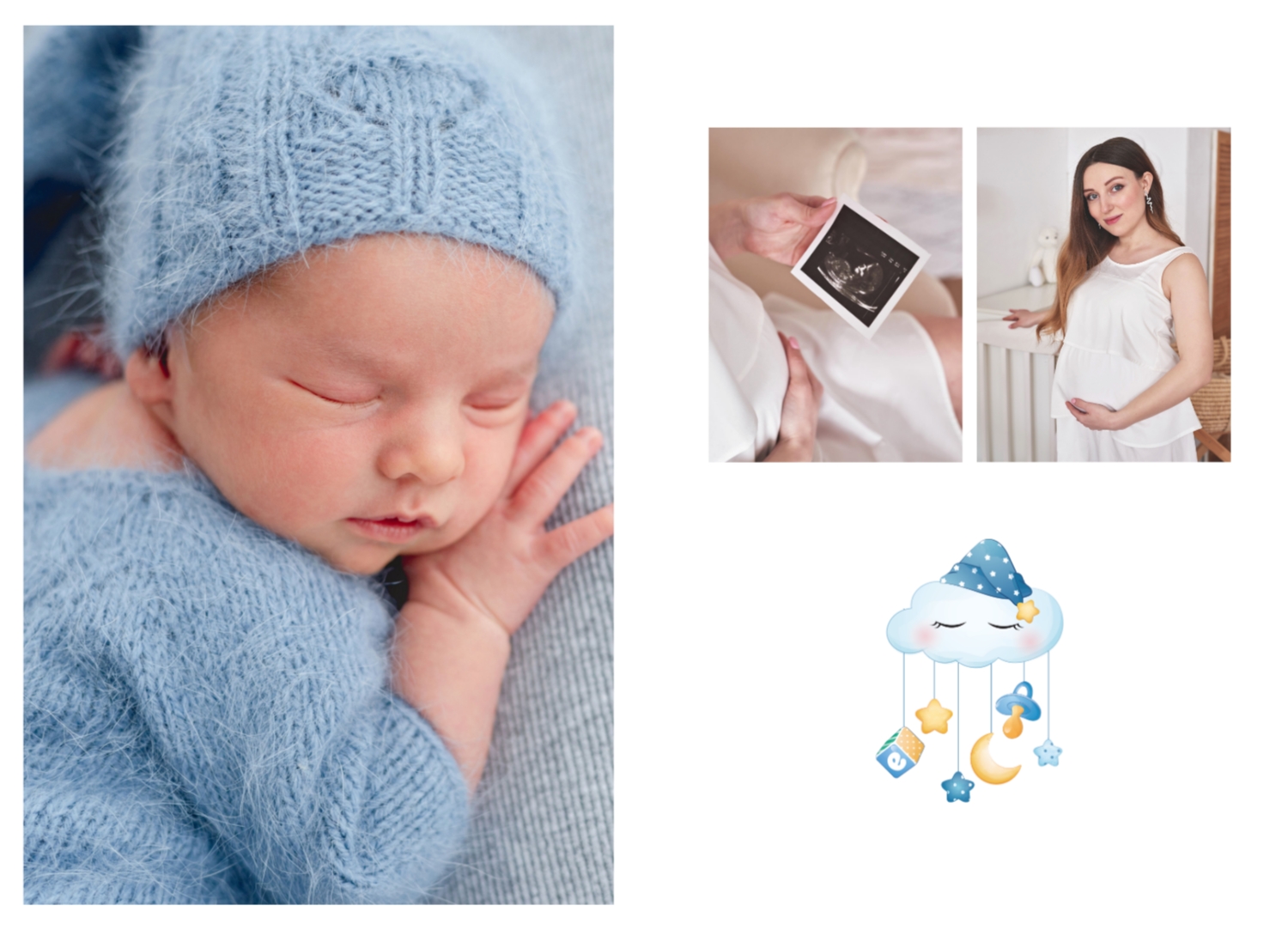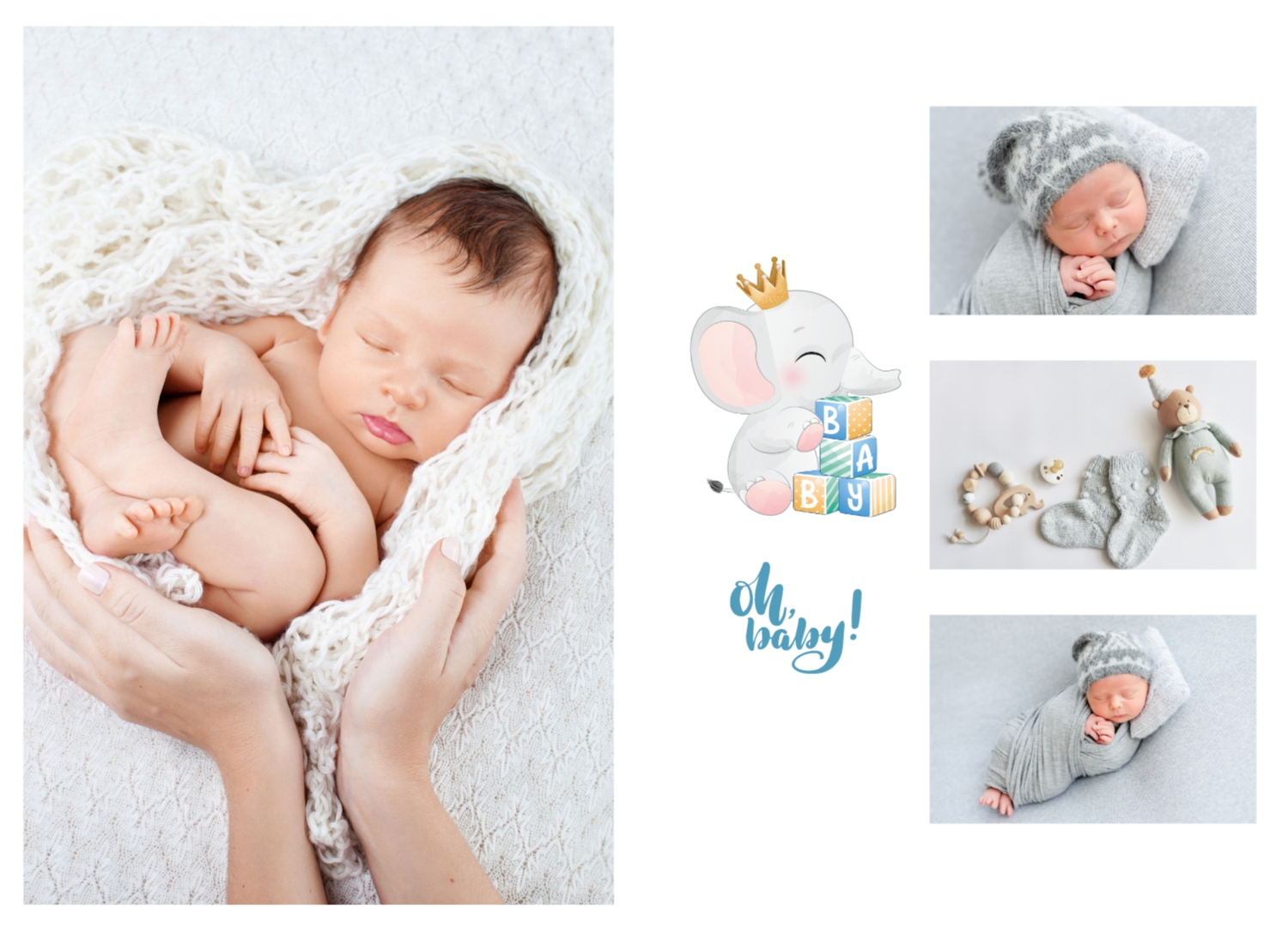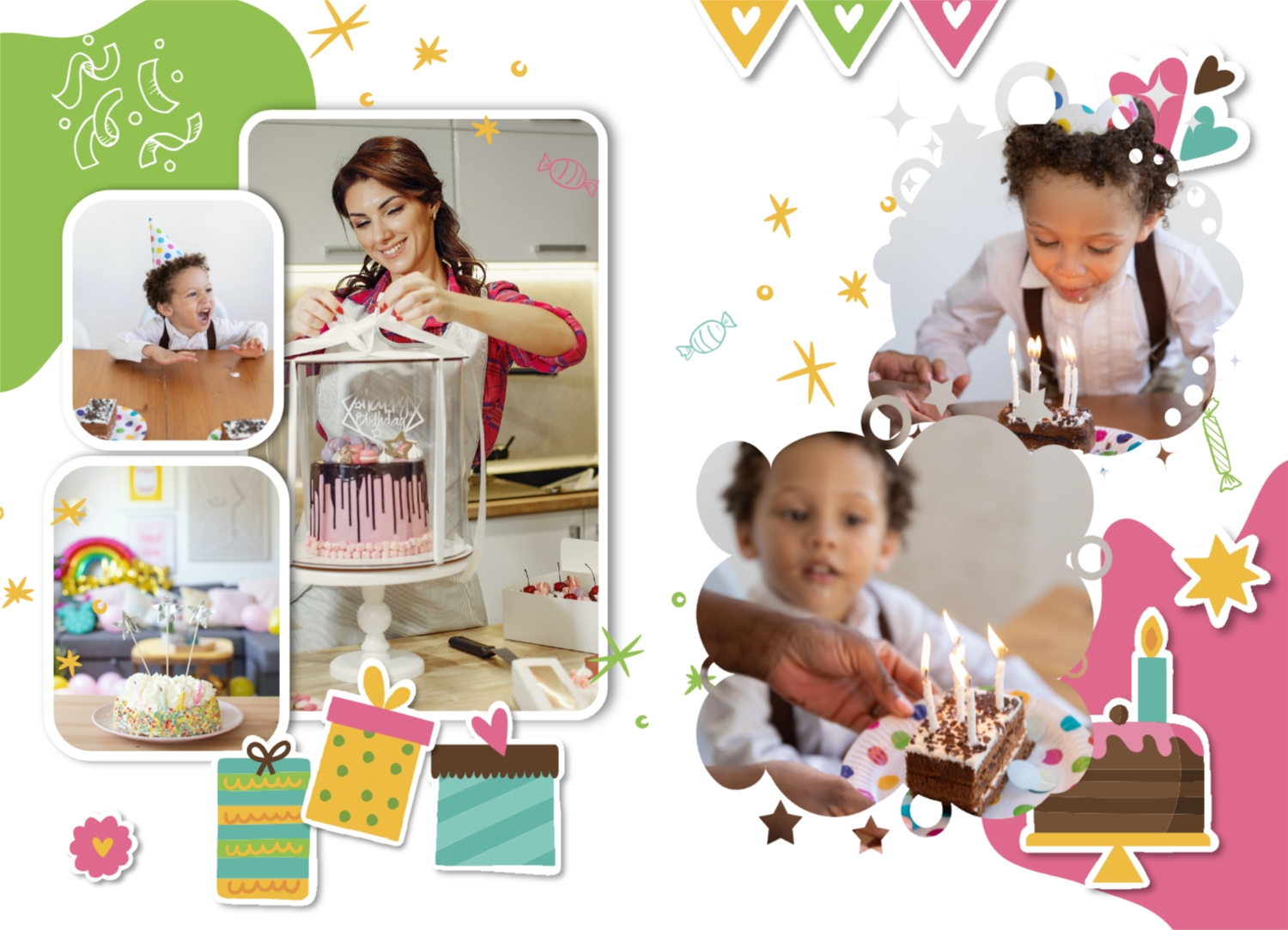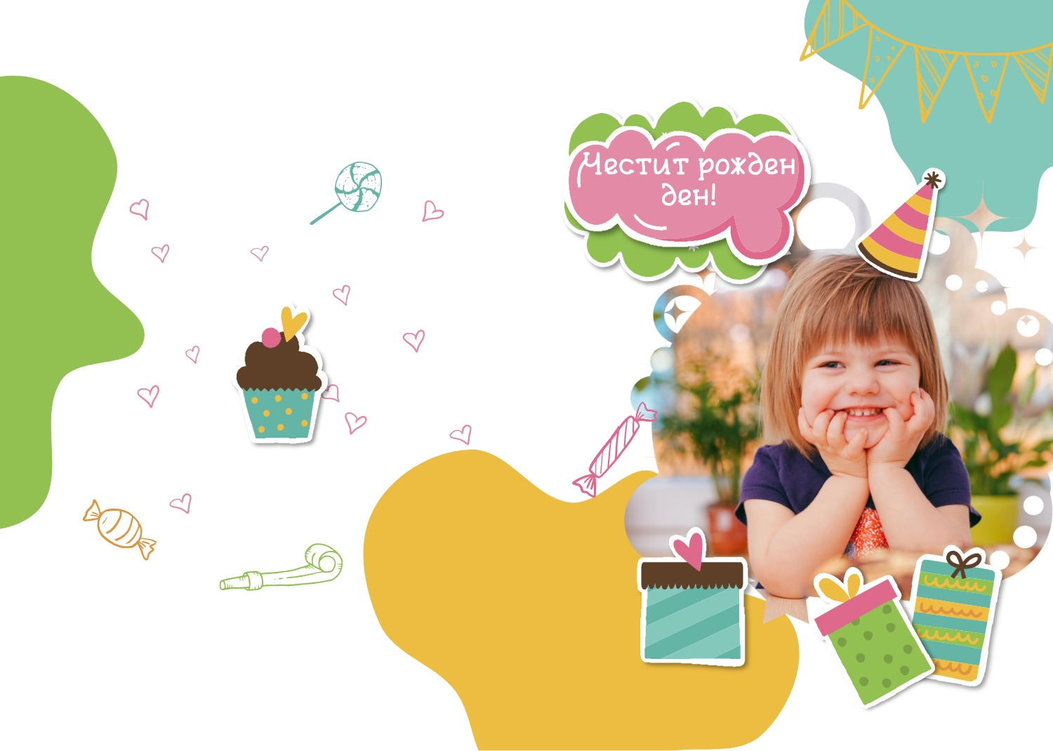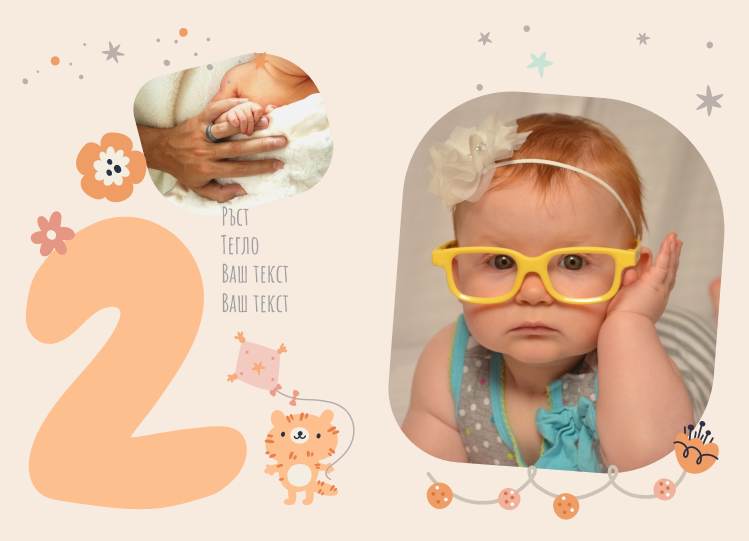 Шаблонът за фотокнига за детски снимки за рожден ден с твърди корици, тематичен в пространството за момче, ще ви помогне да създадете невероятен и уникален албум, който ще подчертае интересите и въображението на вашия син. Корицата на фотокнигата е декорирана в космически стил, изобразяваща звезди, планети, ракети. Използвайки такъв шаблон, можете лесно да създадете интересен и сладък фотоалбум, който ще зарадва вас и вашия син в продължение на много години. Онлайн конструкторът предоставя възможност за персонализиране на шаблона, добавяне на вашите снимки и текстове, за да направите албума уникален и точно както искате. Използвайте неговите инструменти, редактирайте шаблона за лични предпочитания без професионален дизайнер.