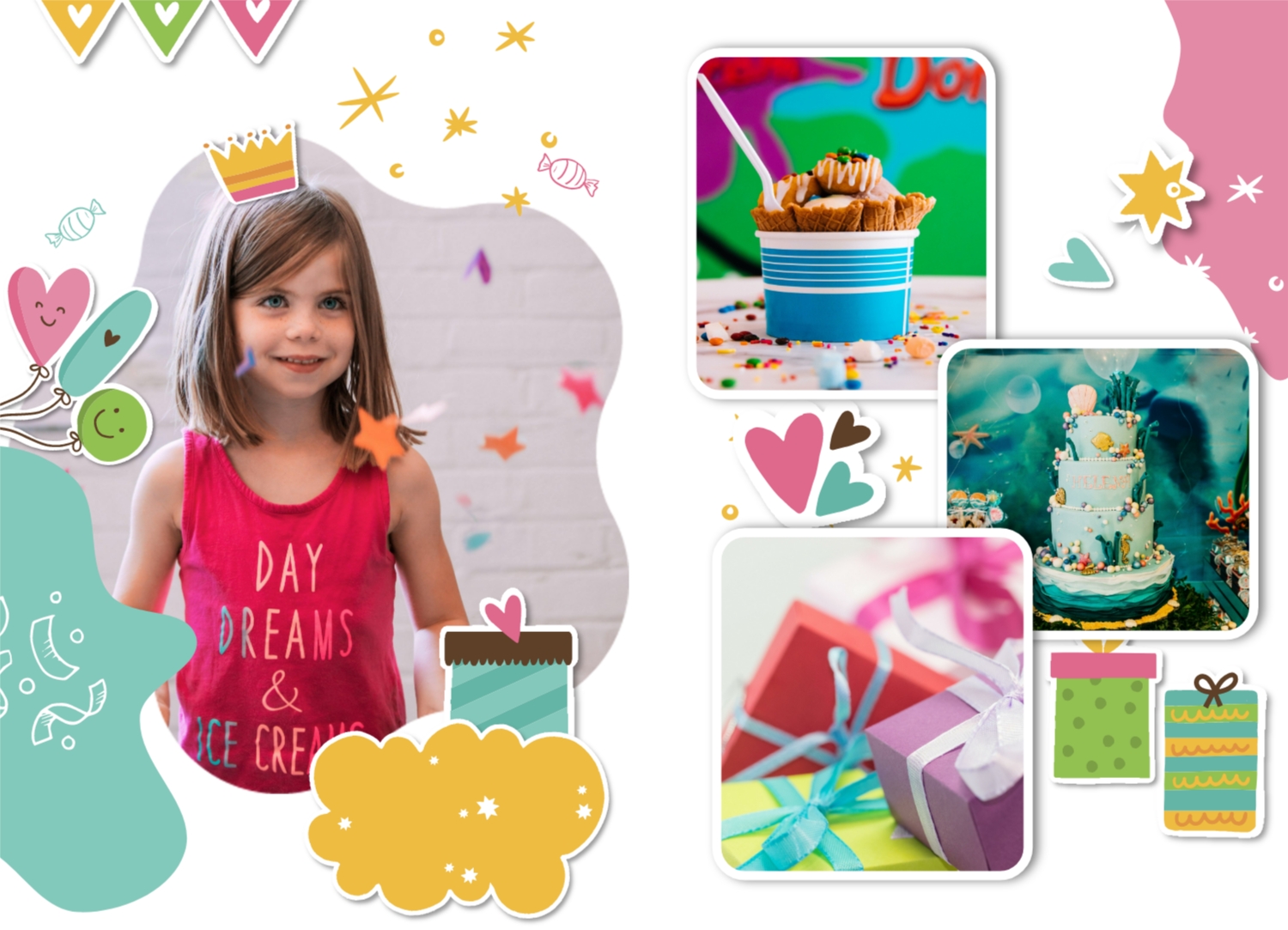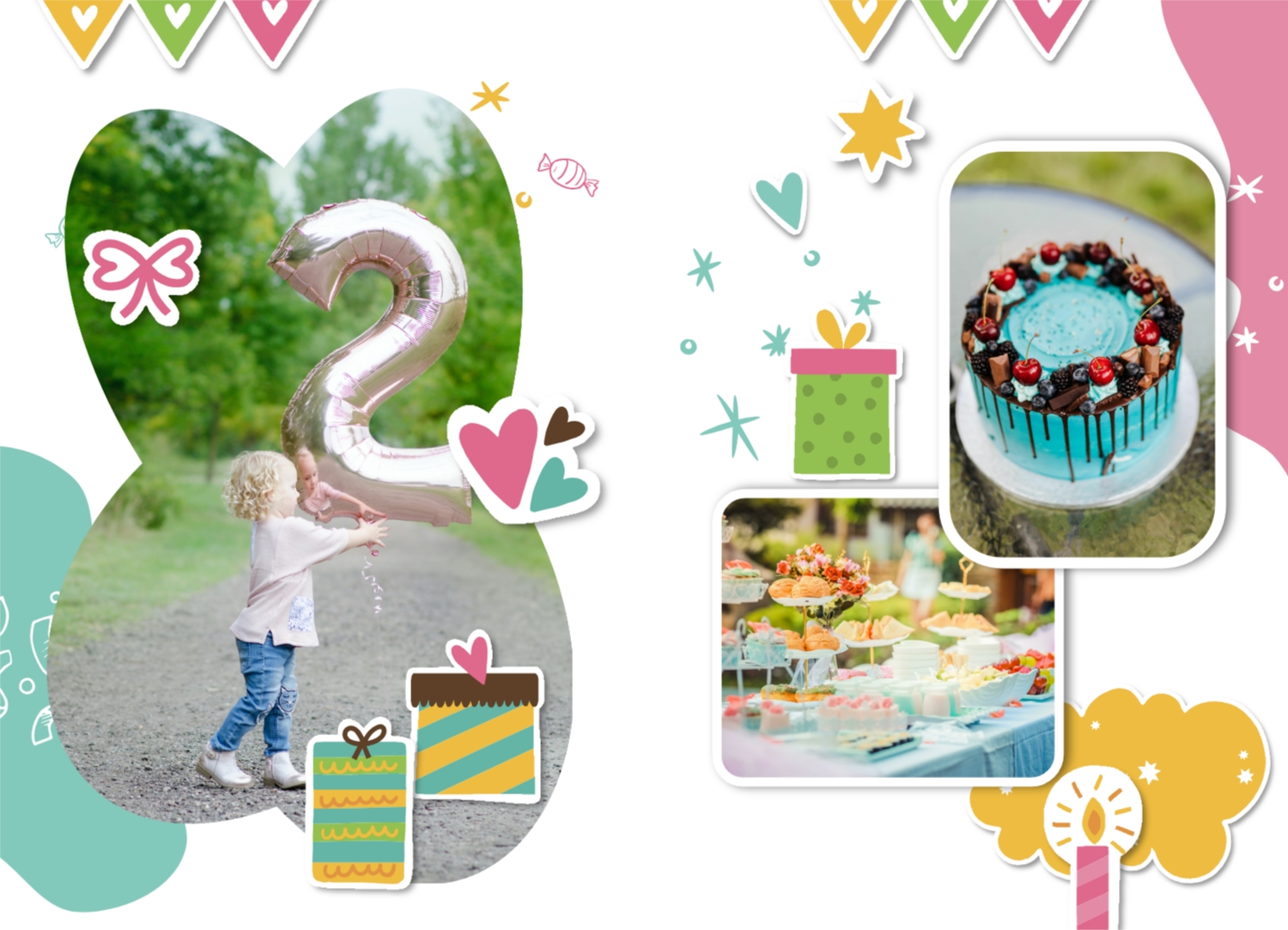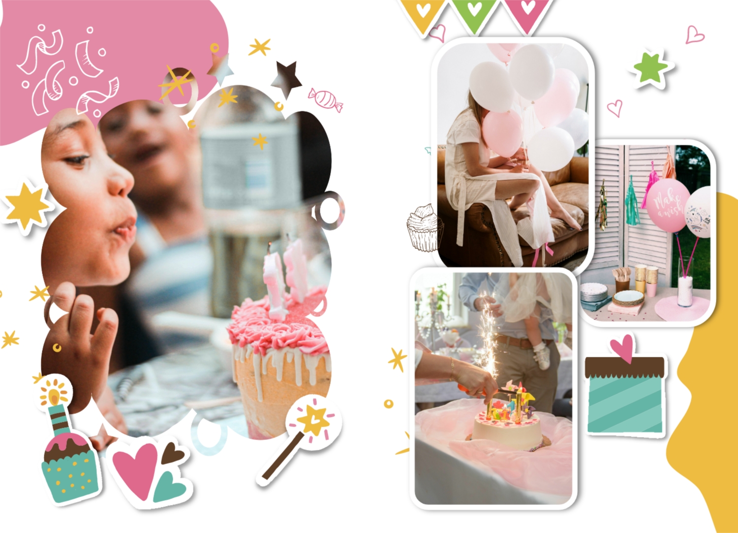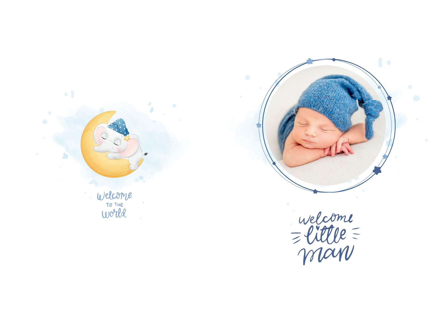 Шаблонът за фотокнига за детски снимки за рожден ден с твърди корици, тематичен в пространството за момче, ще ви помогне да създадете невероятен и уникален албум, който ще подчертае интересите и въображението на вашия син. Корицата на фотокнигата е декорирана в космически стил, изобразяваща звезди, планети, ракети. Използвайки такъв шаблон, можете лесно да създадете интересен и сладък фотоалбум, който ще зарадва вас и вашия син в продължение на много години. Онлайн конструкторът предоставя възможност за персонализиране на шаблона, добавяне на вашите снимки и текстове, за да направите албума уникален и точно както искате. Използвайте неговите инструменти, редактирайте шаблона за лични предпочитания без професионален дизайнер.