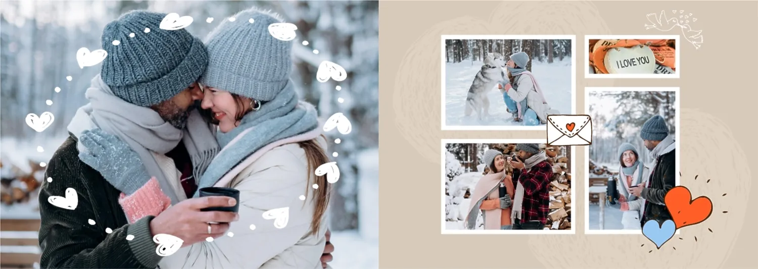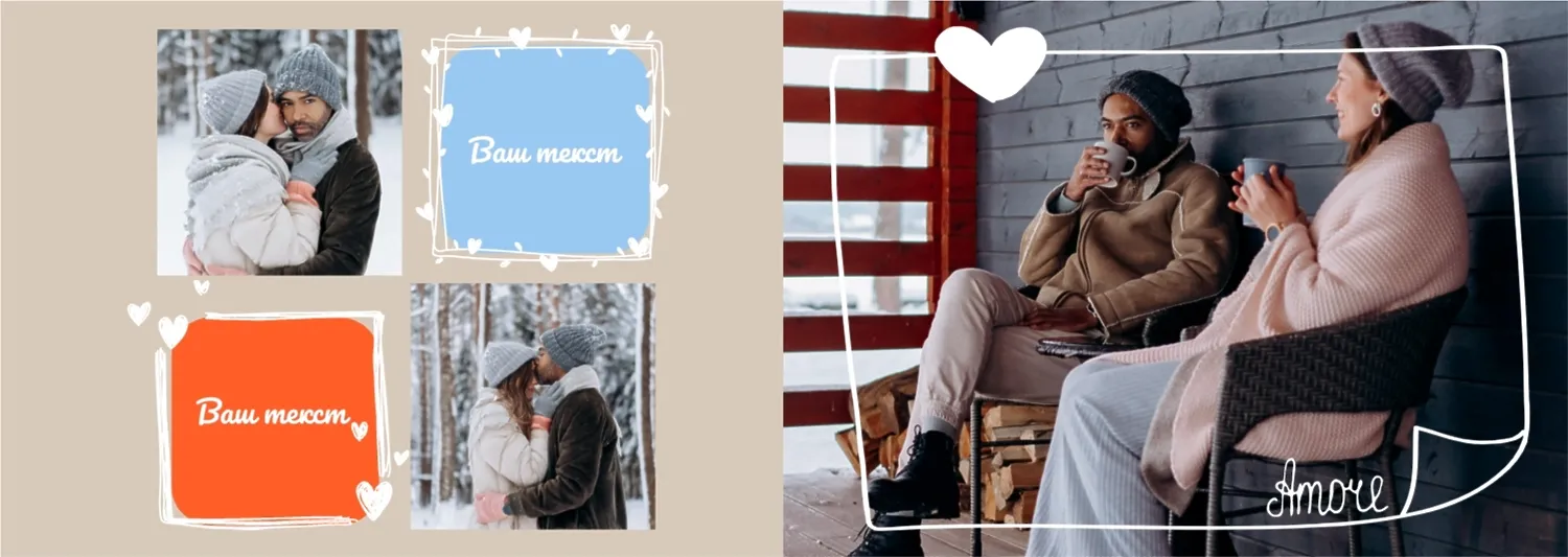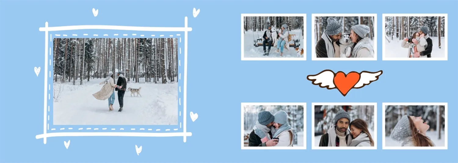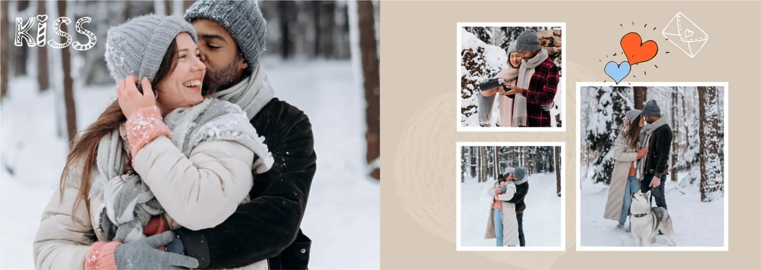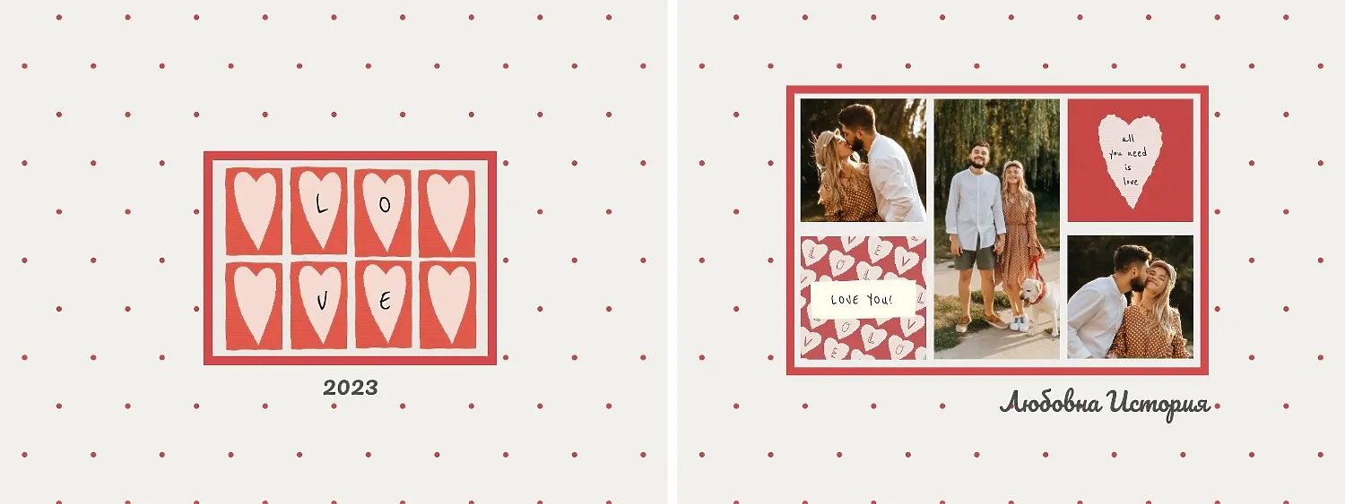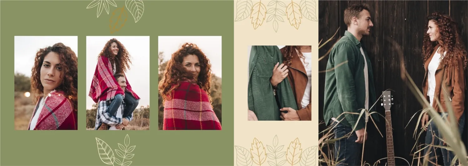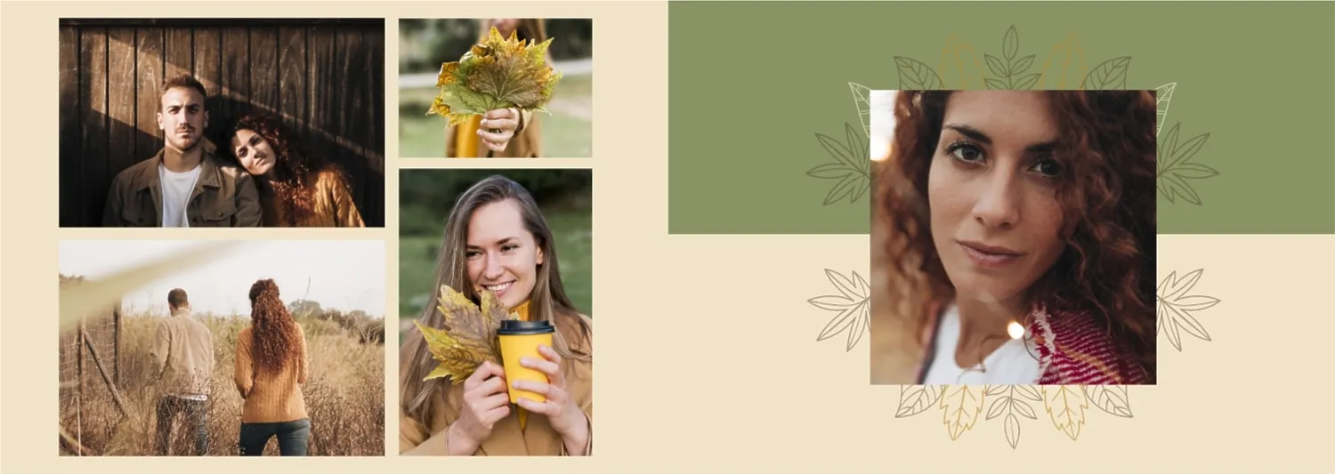 Есента е време на невероятни промени в природата, когато листата на дърветата се превръщат в златни и червени цветове, а въздухът е изпълнен с прохлада и магия. Нашите най-добри моменти от това невероятно време на годината заслужават специално внимание и запазване. За това създадохме безплатен шаблон за широка фотокнига с твърди корици най-добрите моменти от есента. Този шаблон е предназначен да подчертае красотата и комфорта на есента, с негова помощ можете да създадете уникална фотокнига, изпълвайки я с ярки снимки, улавящи есенни разходки, падане на листа и моменти на затопляща топлина със семейството и приятелите. Шаблонът предоставя разнообразни места за снимки и допълнителни записи, така че да можете да разкажете историята на есента си по начина, по който искате. С помощта на нашия онлайн дизайнер можете да реализирате творческите си идеи, като коригирате шаблона според вашия стил и предпочитания. Създайте своя уникална и вълшебна фотокнига" най-добрите моменти на есента " и подарете на себе си и на близките си ценни спомени, които ще стоплят душата през цялата година.