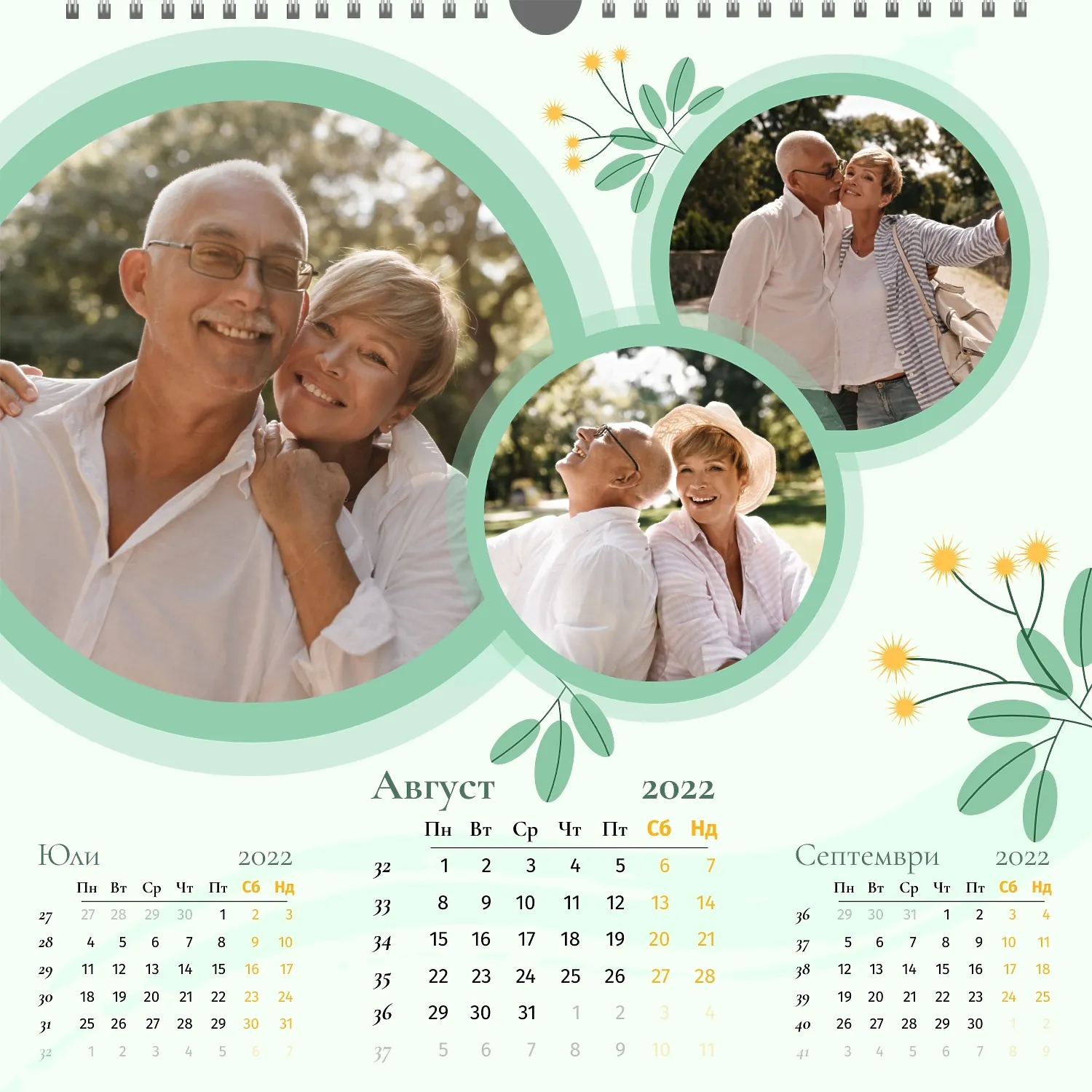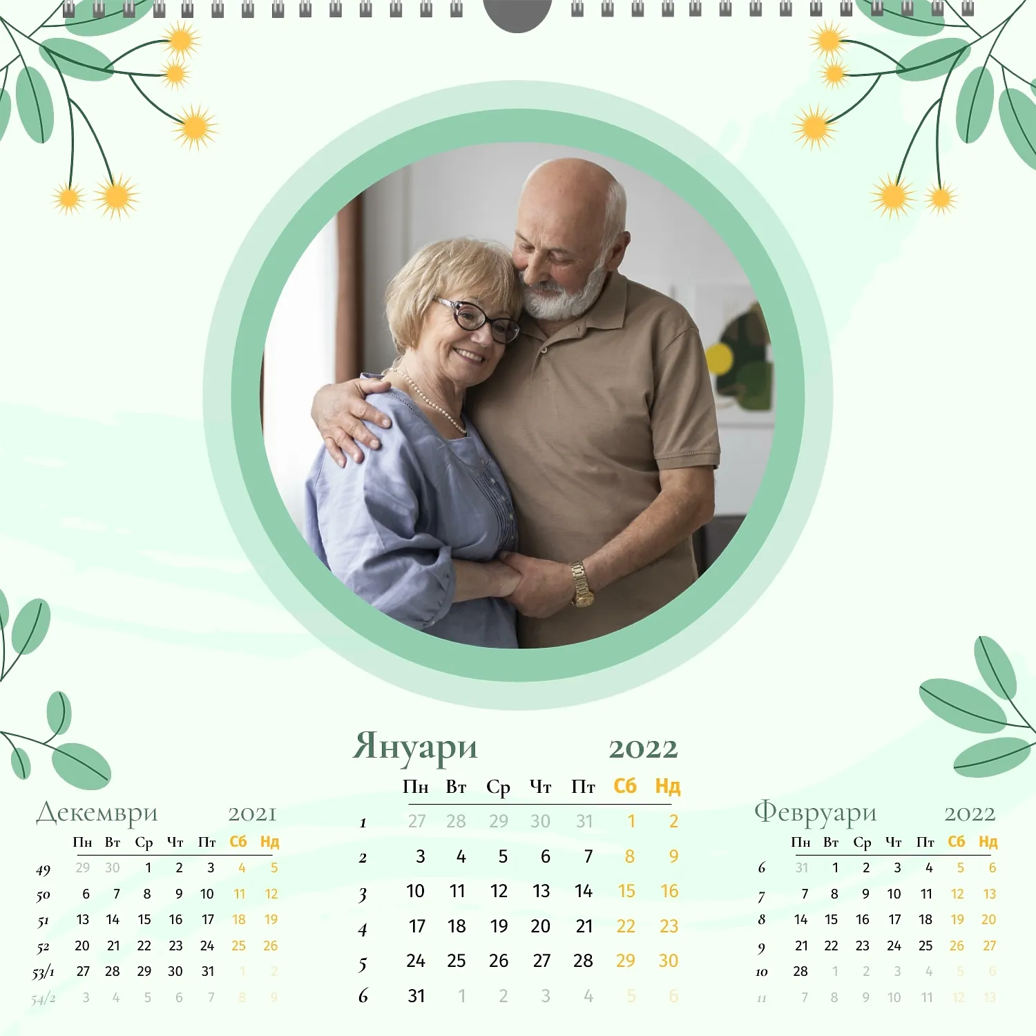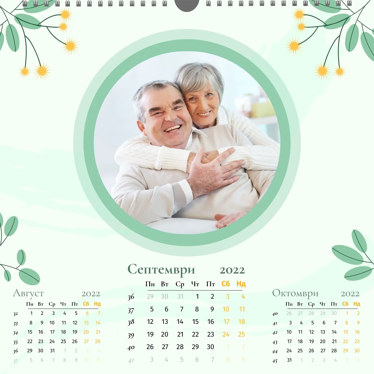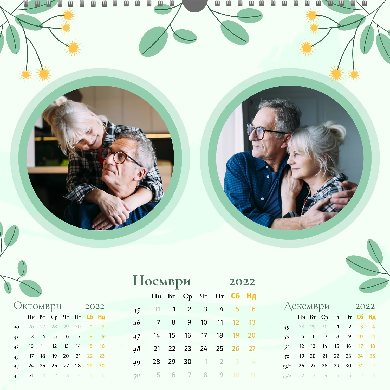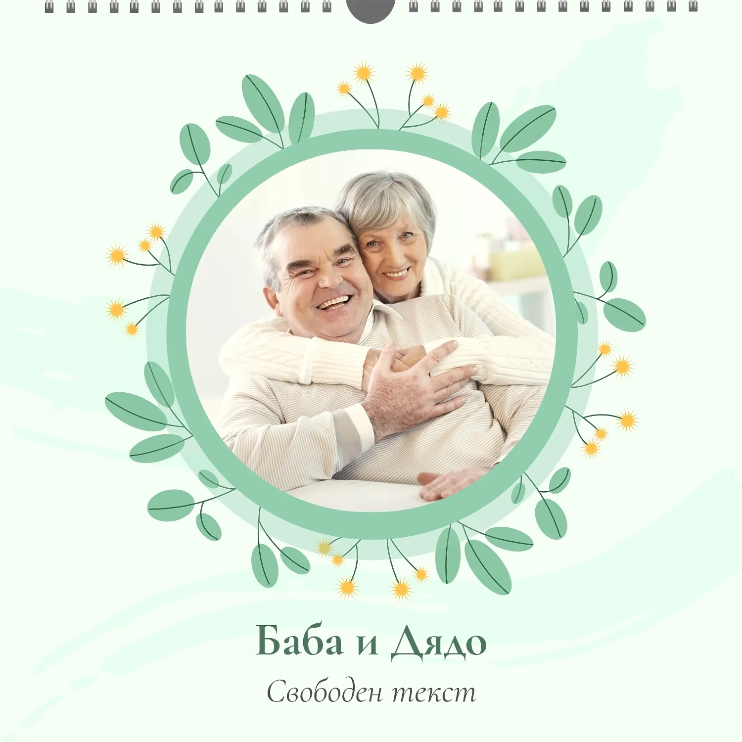 Шаблонът" нашето семейство " за стенен квадратен календар ви предоставя уникалната възможност да създадете персонализиран календар в нашия онлайн конструктор, отразяващ важни моменти и събития в живота на вашето семейство. Персонализирайте всеки месец според вашите предпочитания, поставете снимки, Добавете специални дати и важни събития. Ще можете да променяте цветовата схема, шрифтовете и стиловете, така че календарът да отговаря на вашия уникален стил и предпочитания. Персонализирайте заглавията на месеците, подчертайте важни дати и събития с цвят, за да направите календара си по-жив и запомнящ се.