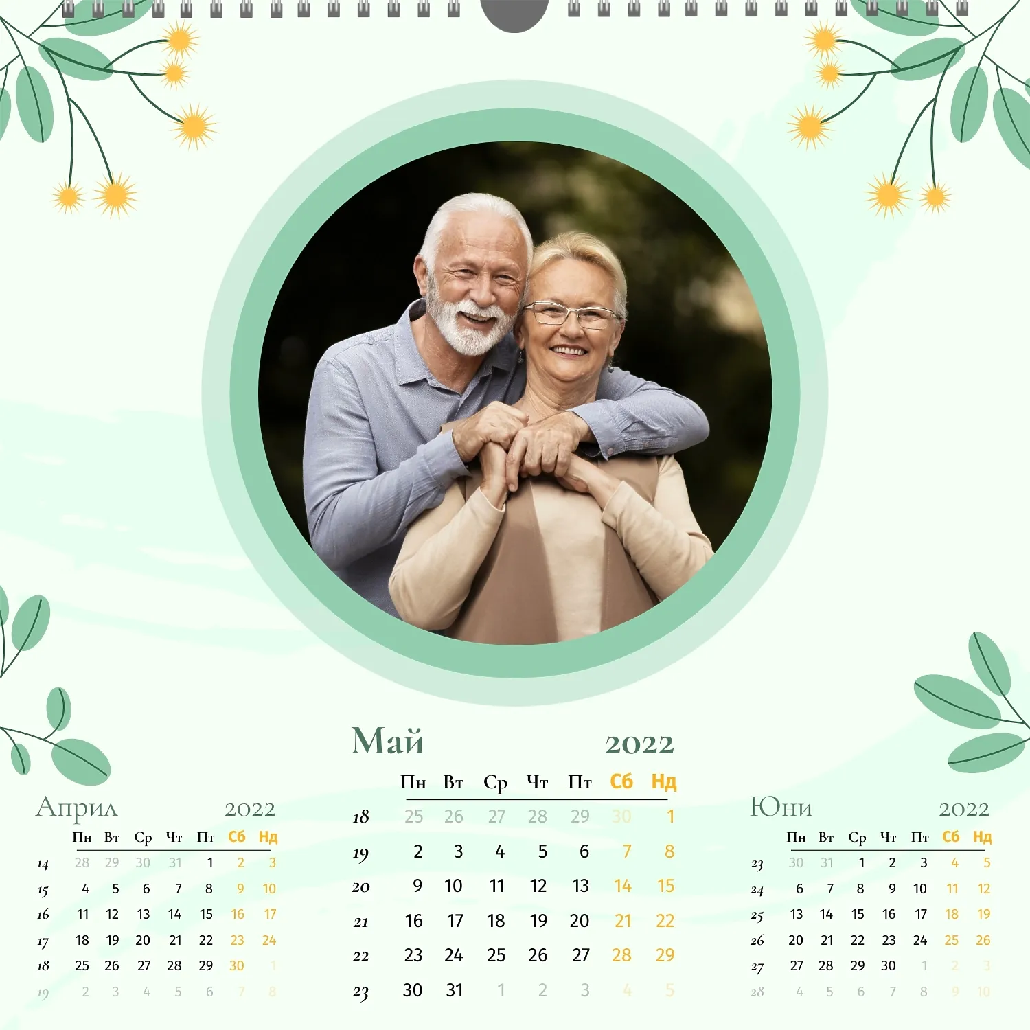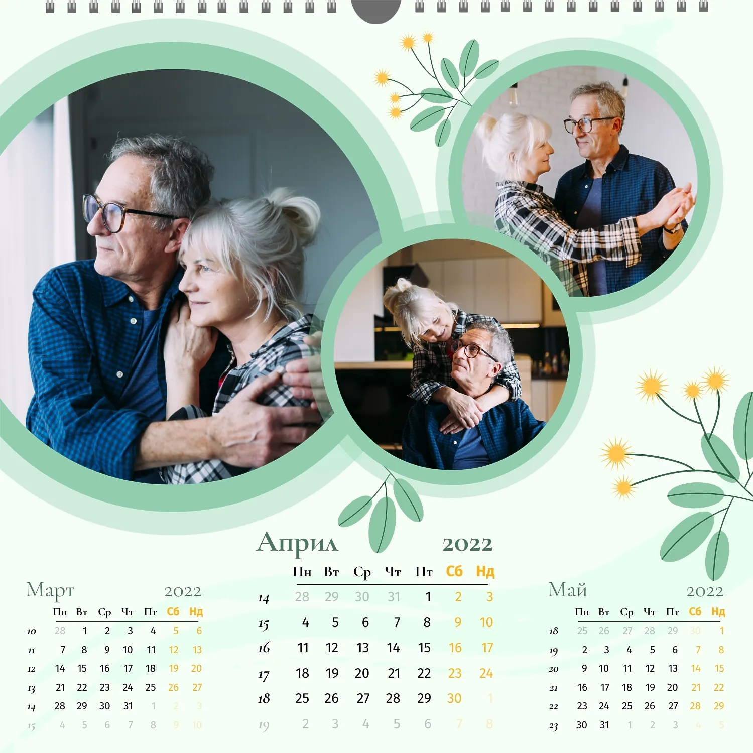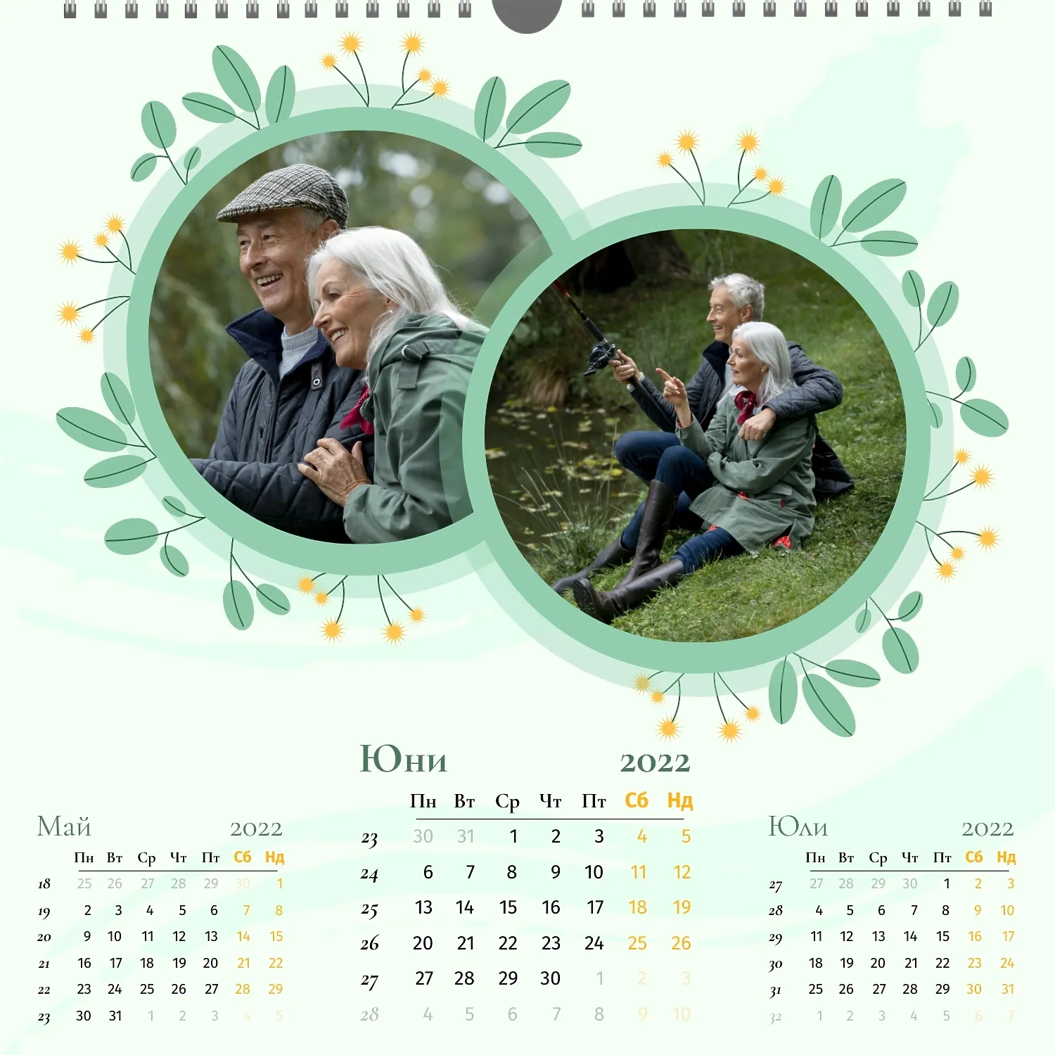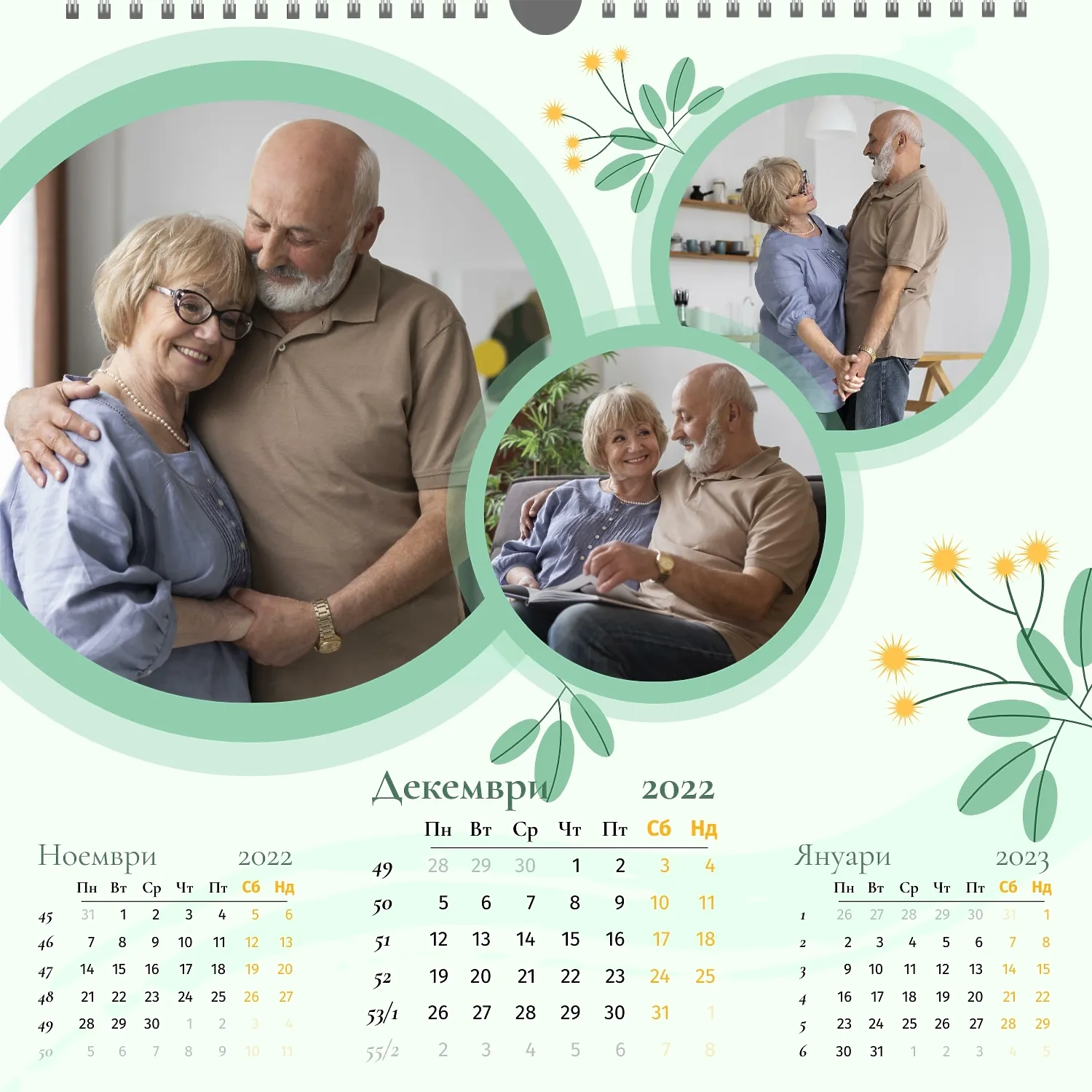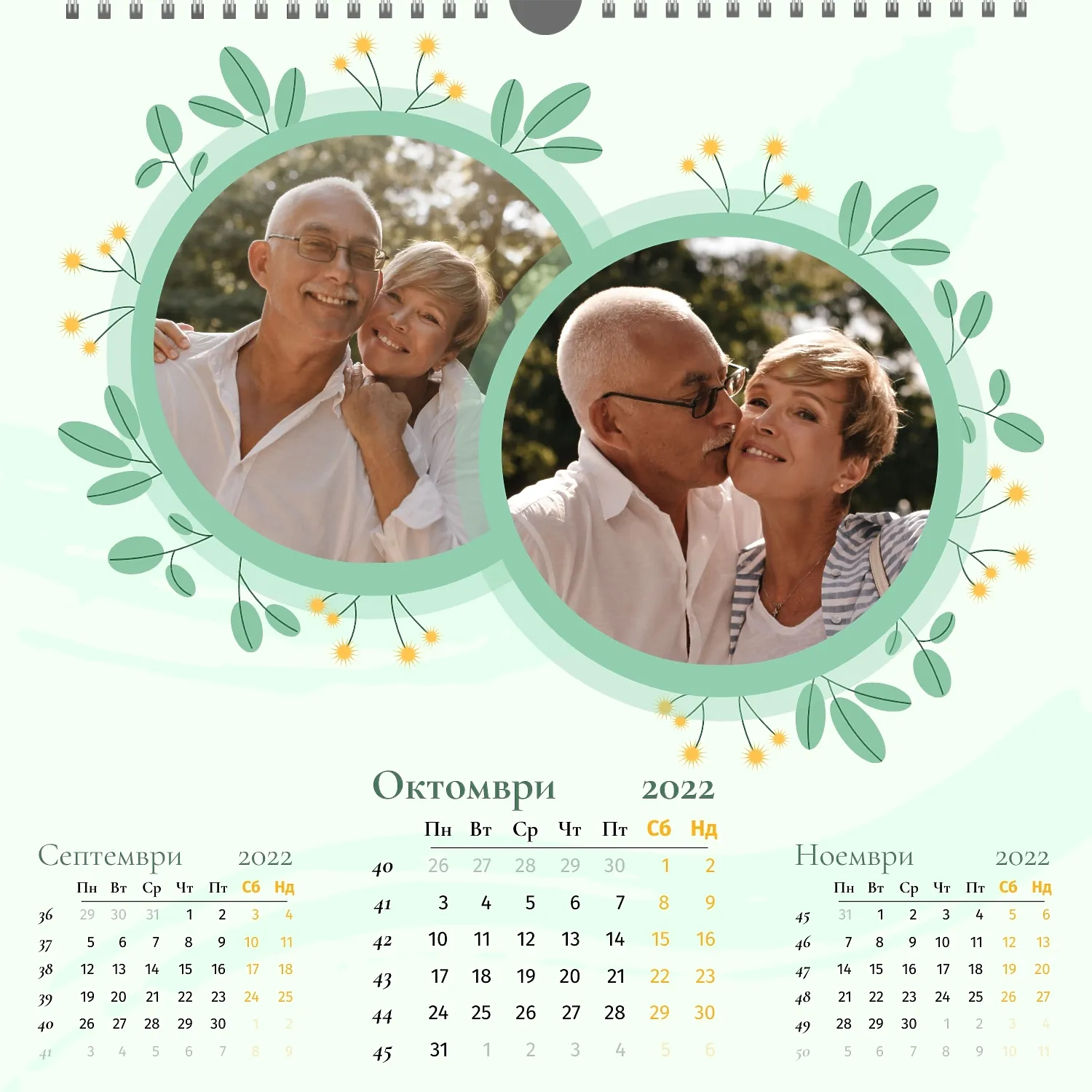 Шаблонът" нашето семейство " за стенен квадратен календар ви предоставя уникалната възможност да създадете персонализиран календар в нашия онлайн конструктор, отразяващ важни моменти и събития в живота на вашето семейство. Персонализирайте всеки месец според вашите предпочитания, поставете снимки, Добавете специални дати и важни събития. Ще можете да променяте цветовата схема, шрифтовете и стиловете, така че календарът да отговаря на вашия уникален стил и предпочитания. Персонализирайте заглавията на месеците, подчертайте важни дати и събития с цвят, за да направите календара си по-жив и запомнящ се.