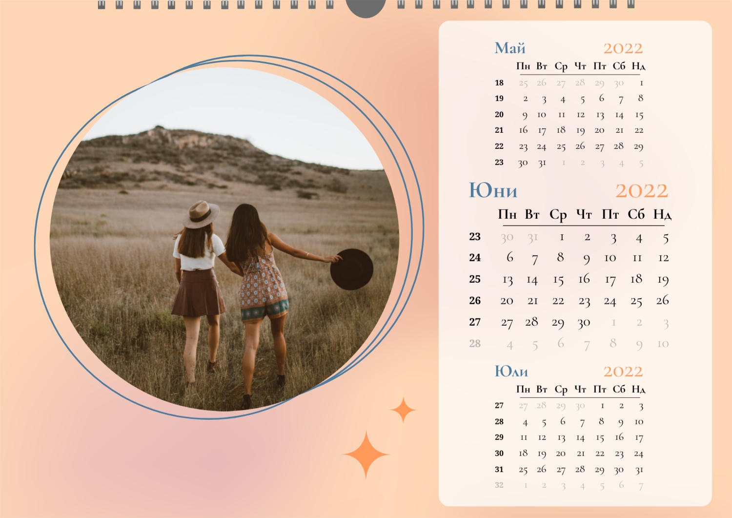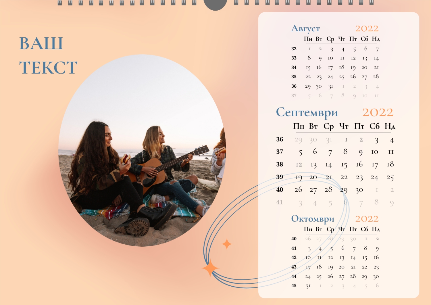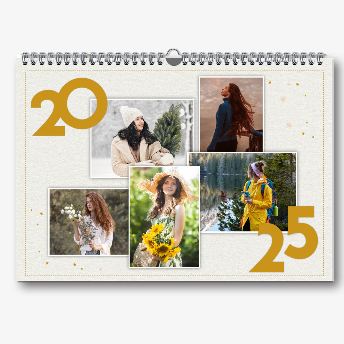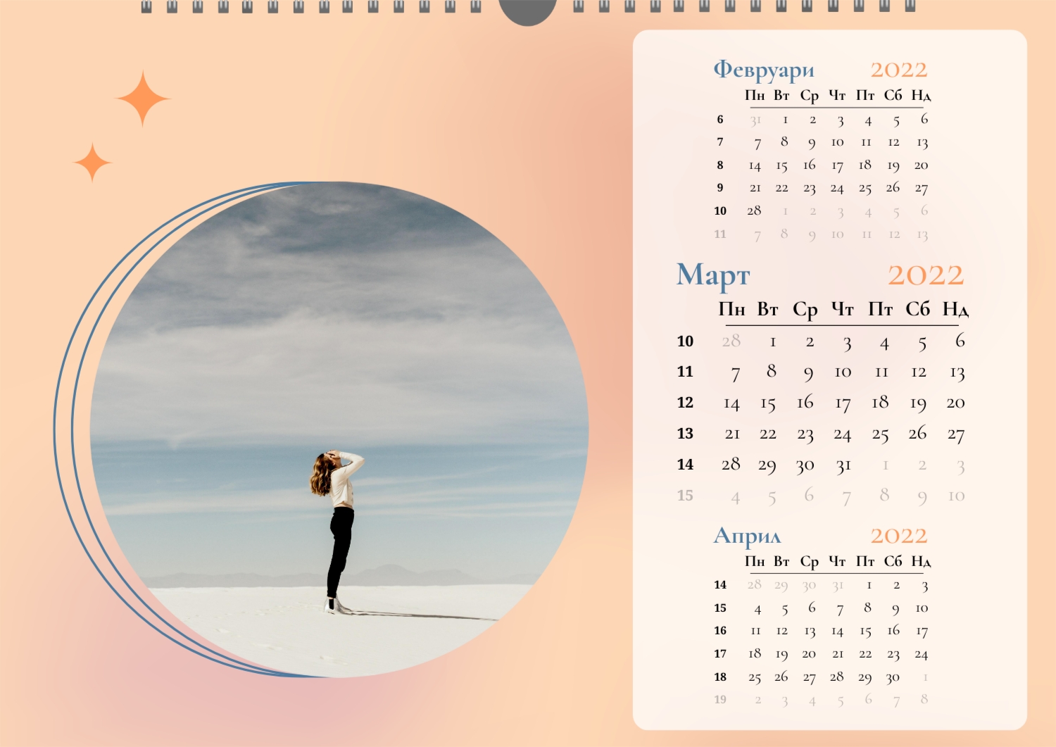 Шаблонът" най-добри спомени " за стенен широк календар в нашия онлайн конструктор предоставя уникална възможност да оживите най-ярките си моменти. Вдъхновен от мили спомени, този шаблон е създаден, за да можете лесно и креативно да проектирате календара си. С внимание към детайлите и лекота на използване, нашият онлайн конструктор ви позволява да персонализирате всеки елемент от този шаблон. Можете да променяте цветове, шрифтове, да добавяте свои снимки и текст, правейки всеки месец уникален. Персонализираният дизайн ще бъде отражение на вашия уникален стил и спомени. Създаването на вашия уникален хоризонтален стенен календар с помощта на шаблона "най-добри спомени" в нашия онлайн конструктор е възможност не само да запазите ценни моменти, но и да изразите своята индивидуалност чрез творческия процес на проектиране. Празнувайте всеки ден, вдъхвайки живот на спомените си и създайте календар, който ще ви радва през цялата година.