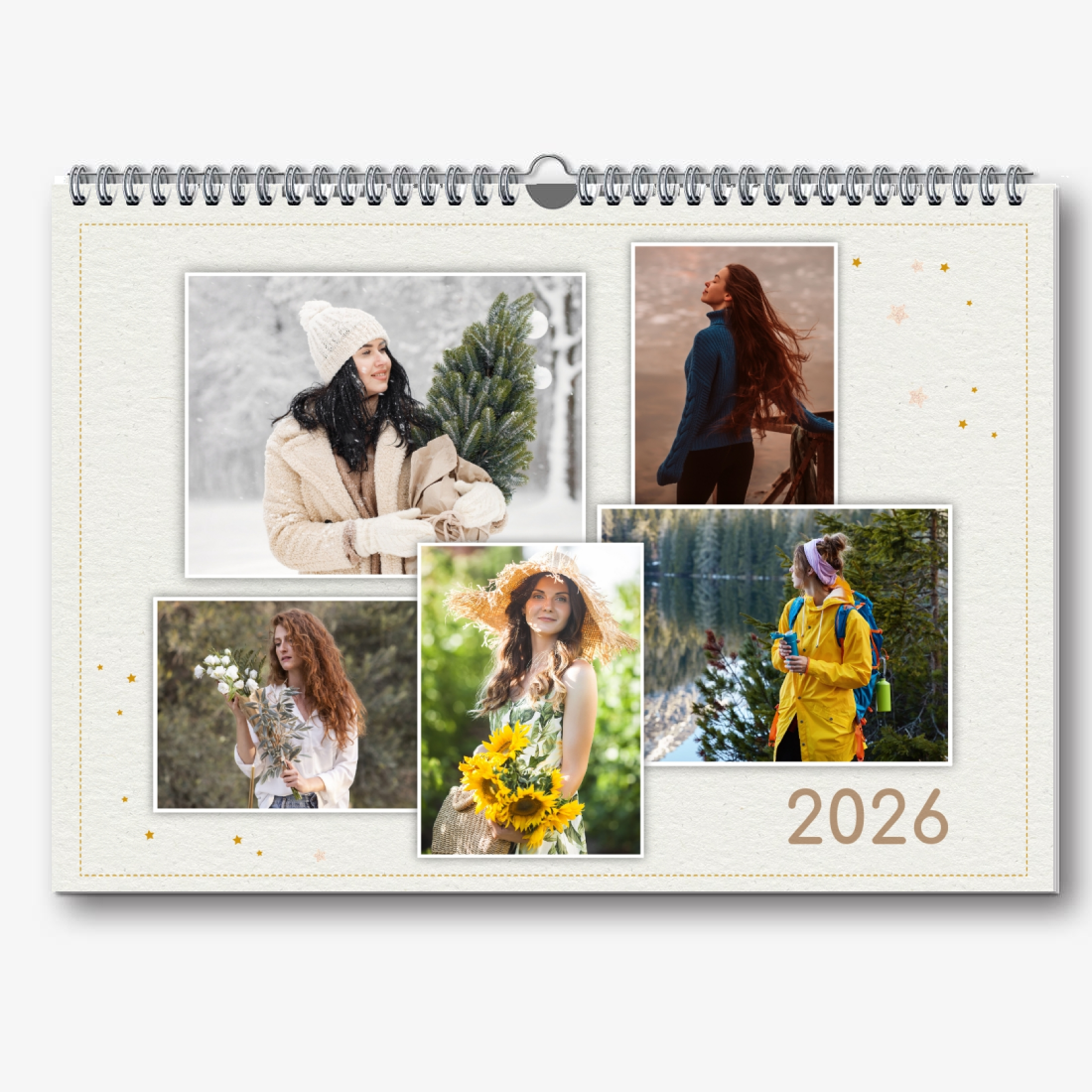 Шаблонът" най-добри спомени " за стенен широк календар в нашия онлайн конструктор предоставя уникална възможност да оживите най-ярките си моменти. Вдъхновен от мили спомени, този шаблон е създаден, за да можете лесно и креативно да проектирате календара си. С внимание към детайлите и лекота на използване, нашият онлайн конструктор ви позволява да персонализирате всеки елемент от този шаблон. Можете да променяте цветове, шрифтове, да добавяте свои снимки и текст, правейки всеки месец уникален. Персонализираният дизайн ще бъде отражение на вашия уникален стил и спомени. Създаването на вашия уникален хоризонтален стенен календар с помощта на шаблона "най-добри спомени" в нашия онлайн конструктор е възможност не само да запазите ценни моменти, но и да изразите своята индивидуалност чрез творческия процес на проектиране. Празнувайте всеки ден, вдъхвайки живот на спомените си и създайте календар, който ще ви радва през цялата година.