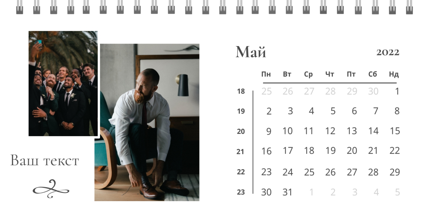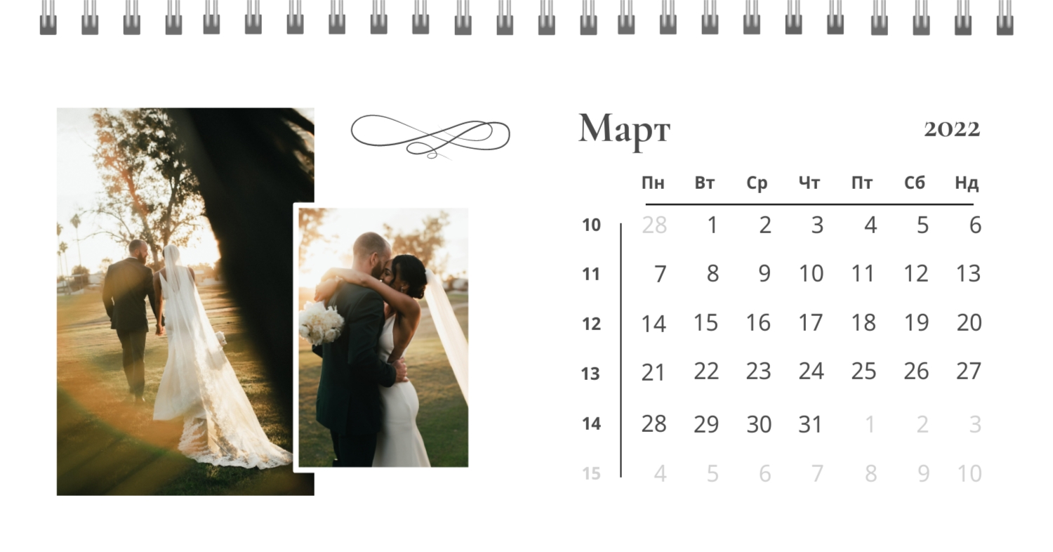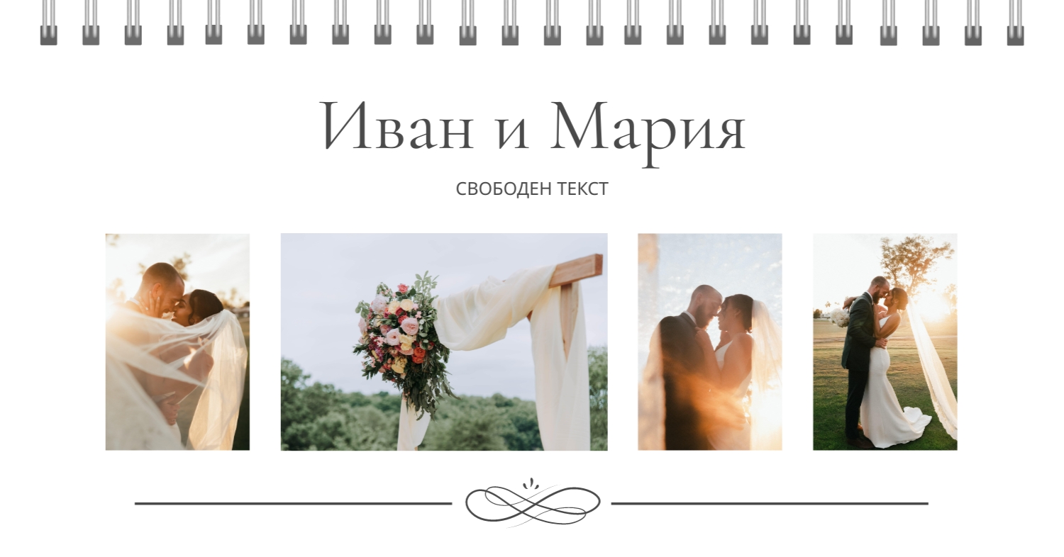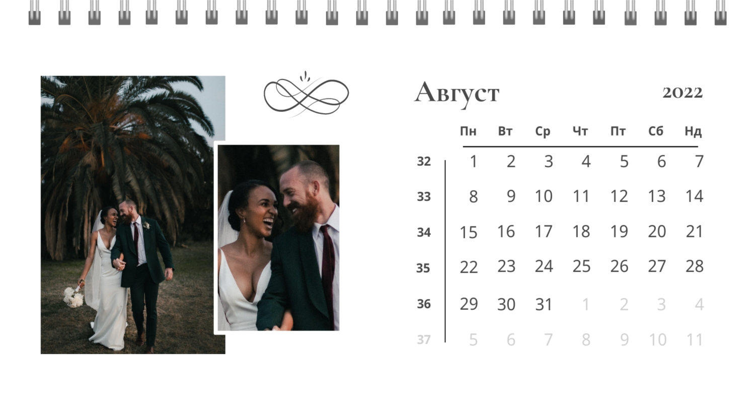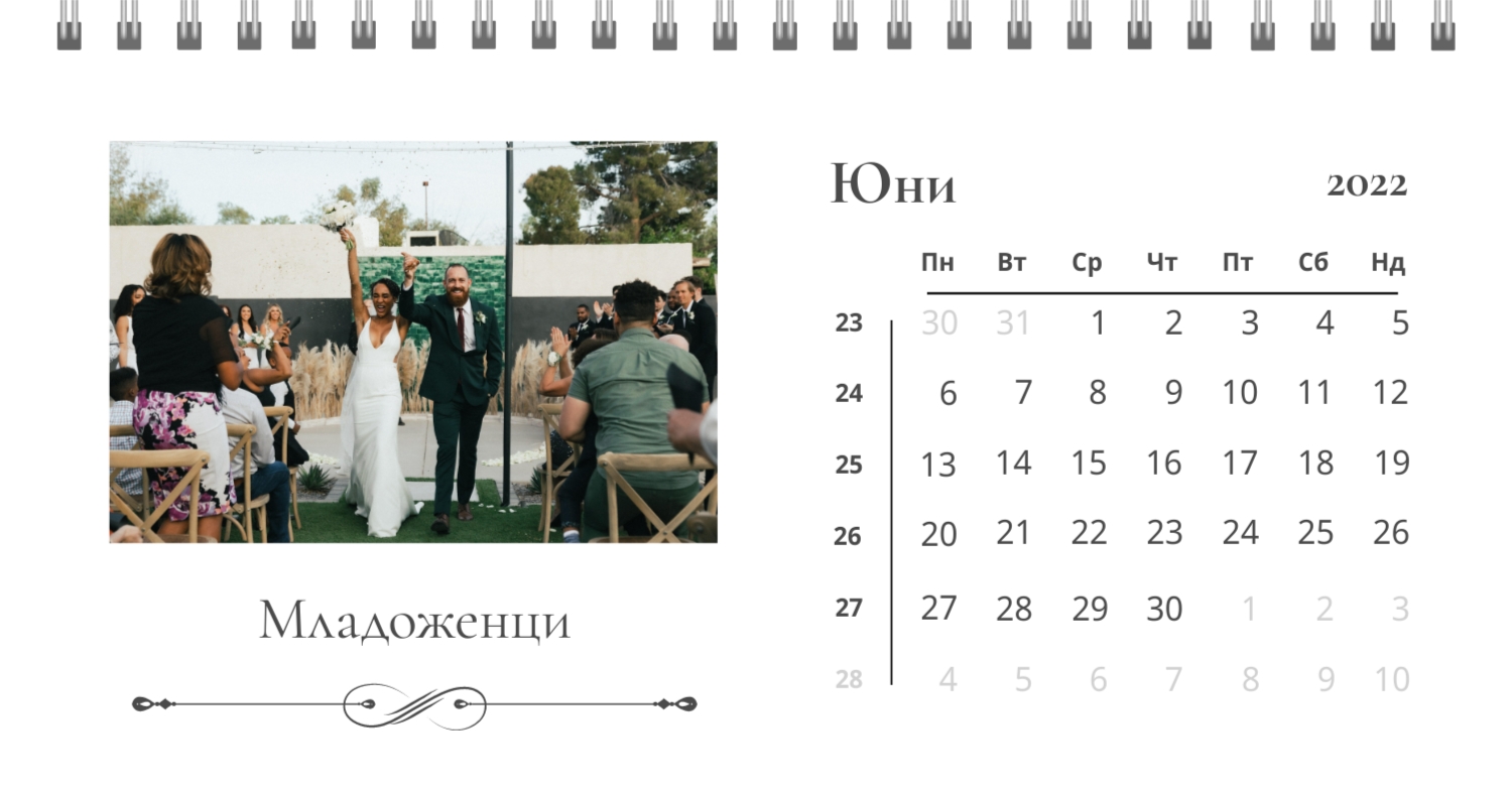 Шаблонът" щастлива зима за влюбени " е перфектната комбинация от уют и романтика, създадена специално за двойки, които искат да отпразнуват важните си дати в топла зимна атмосфера. Всички елементи на този календар са насочени към създаване на топло и вдъхновяващо настроение. Онлайн конструкторът предоставя широк спектър от възможности за персонализиране на този шаблон. Можете лесно да промените цветовата схема, като изберете онези нюанси, които отразяват вашата уникална любов. Шаблонът" щастлива зима за влюбените " ви дава възможност не само да следвате датите, но и да създадете заедно със спомените си уникална картина на вашето съвместно време.