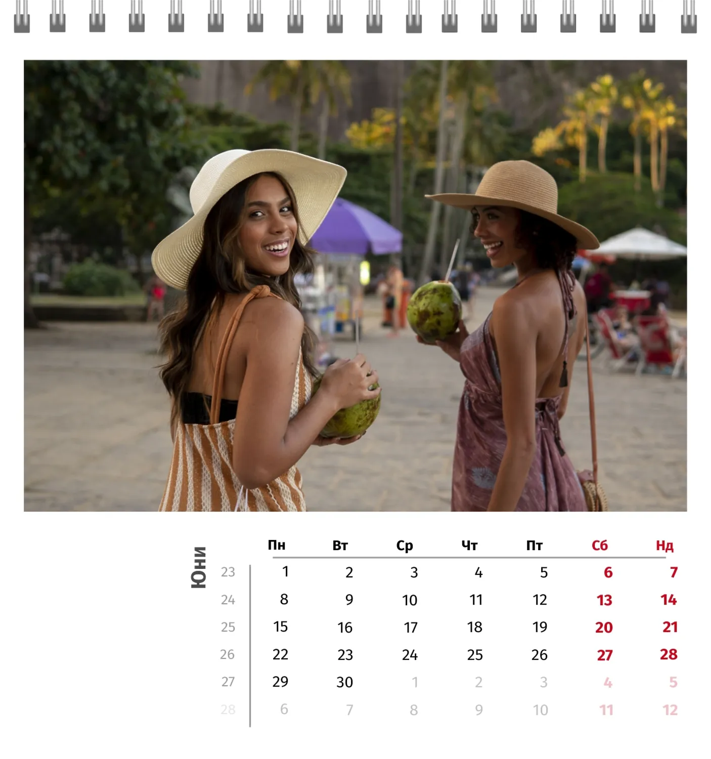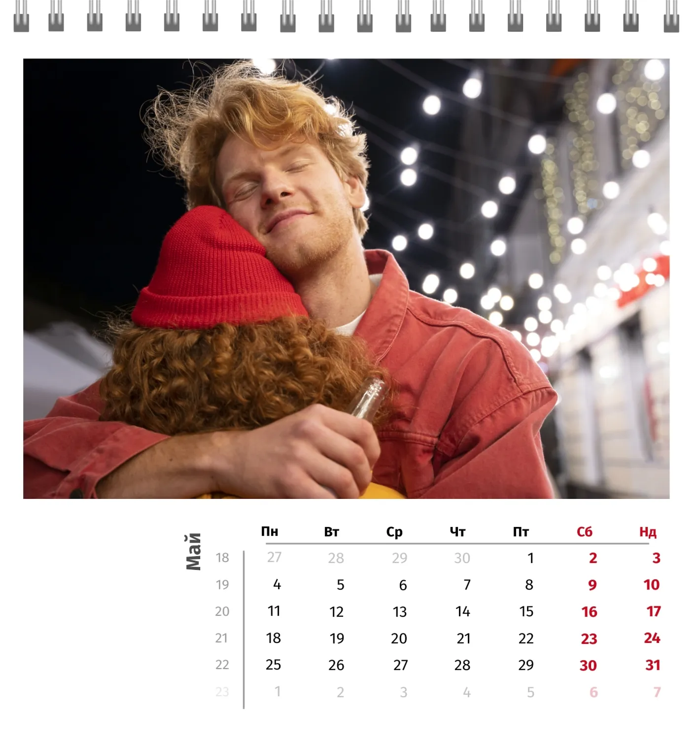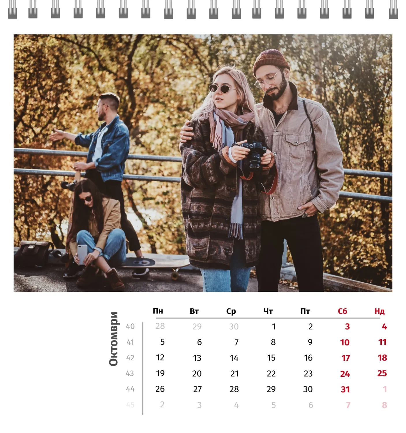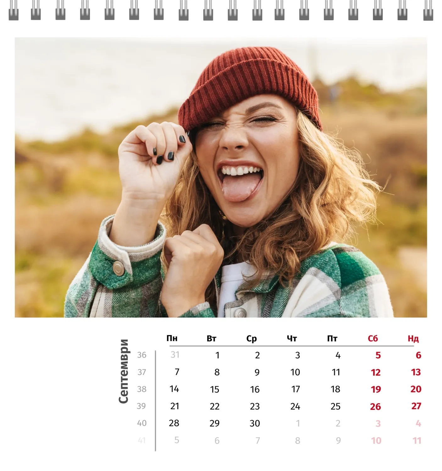 Шаблонът" щастлива зима за влюбени " е перфектната комбинация от уют и романтика, създадена специално за двойки, които искат да отпразнуват важните си дати в топла зимна атмосфера. Онлайн конструкторът предоставя широка гама от възможности за персонализиране на този шаблон за настолен календар. Можете лесно да промените цветовата схема, като изберете онези нюанси, които отразяват вашата уникална любов. Шаблонът" щастлива зима за влюбените " ви дава възможност не само да следвате датите, но и да създадете заедно със спомените си уникална картина на вашето съвместно време. Процесът на редактиране стъпка по стъпка в онлайн конструктора осигурява лекота на използване, като ви позволява да се съсредоточите върху това, което е наистина важно-вашата любов и уникалните моменти, които споделяте.