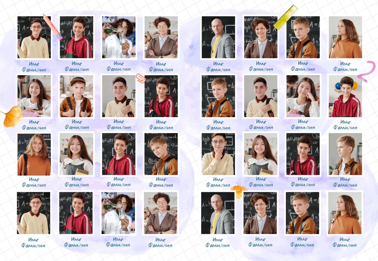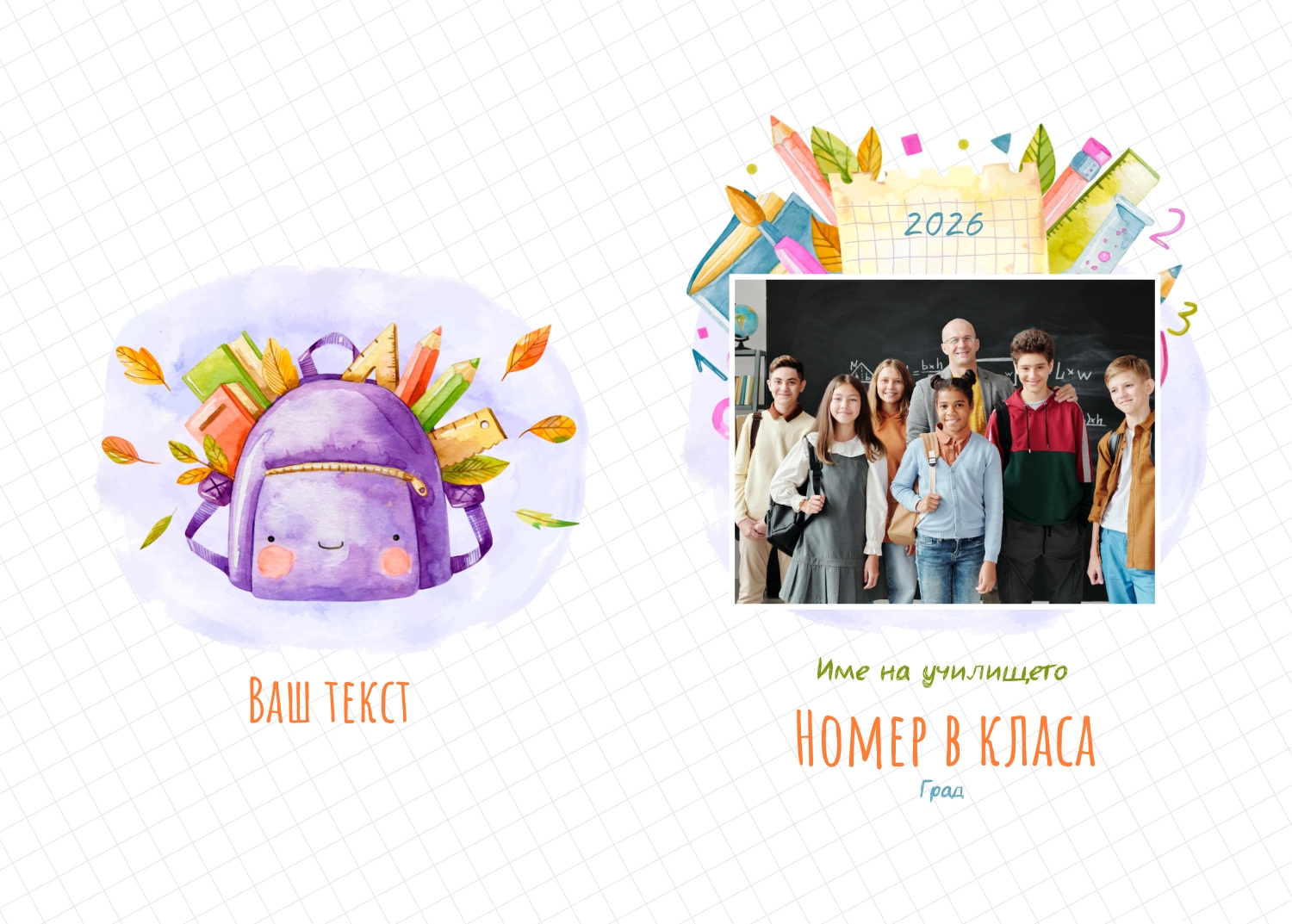 Готовият шаблон за винетка за завършване на гимназия е идеалното решение за създаване на стилен и запомнящ се дизайн. Този шаблон може лесно да бъде адаптиран към вашите изисквания в нашия онлайн конструктор, който предоставя много възможности за редактиране. В онлайн конструктора ще можете да промените всички ключови елементи на винетката: от фона и шрифта до поставянето на снимки и текстове. Това дава възможност не само да се направи стандартно оформление, но и да се създаде уникална винетка, която да отразява личността на вашия клас или образователна институция. Този шаблон за винетка е подходящ не само за ученици, но и за професионалисти, свързани с образование, дизайн, маркетинг или организиране на събития. Учителите и училищните администратори могат да го използват за създаване на официални винетки, а фотографите като основа за своите фотографски проекти. Маркетолозите могат да прилагат този шаблон за рекламни цели, като презентации на образователни програми или събития. Възможността за редактиране на шаблон в онлайн конструктор отваря безкрайни възможности за творчество. Можете да промените стила на винетката, да добавите или премахнете елементи, да персонализирате цветовете, шрифтовете и разположението на снимките и да интегрирате лога или други маркови елементи. По този начин всяка винетка ще бъде уникална и персонализирана.