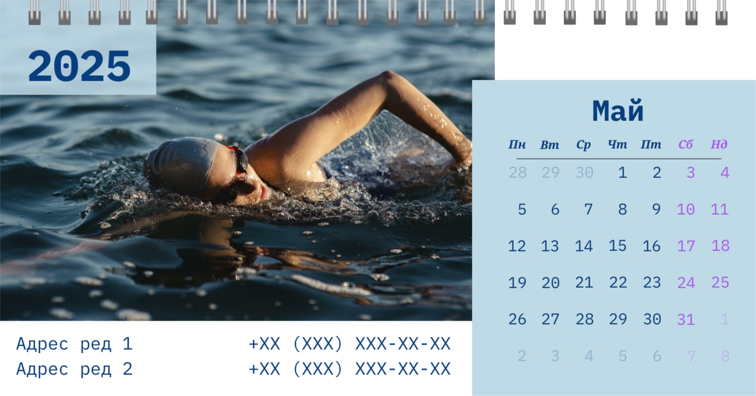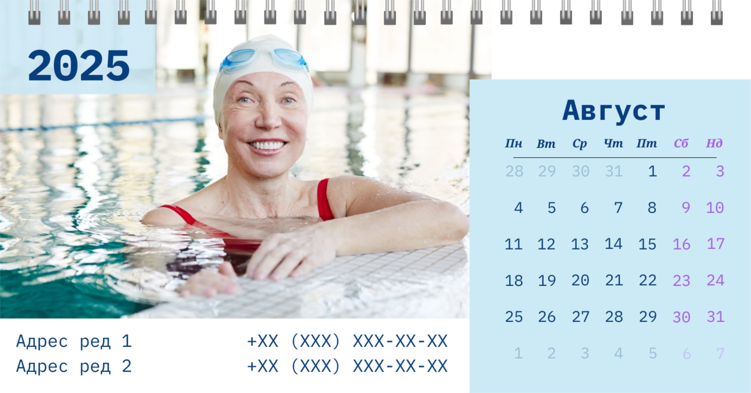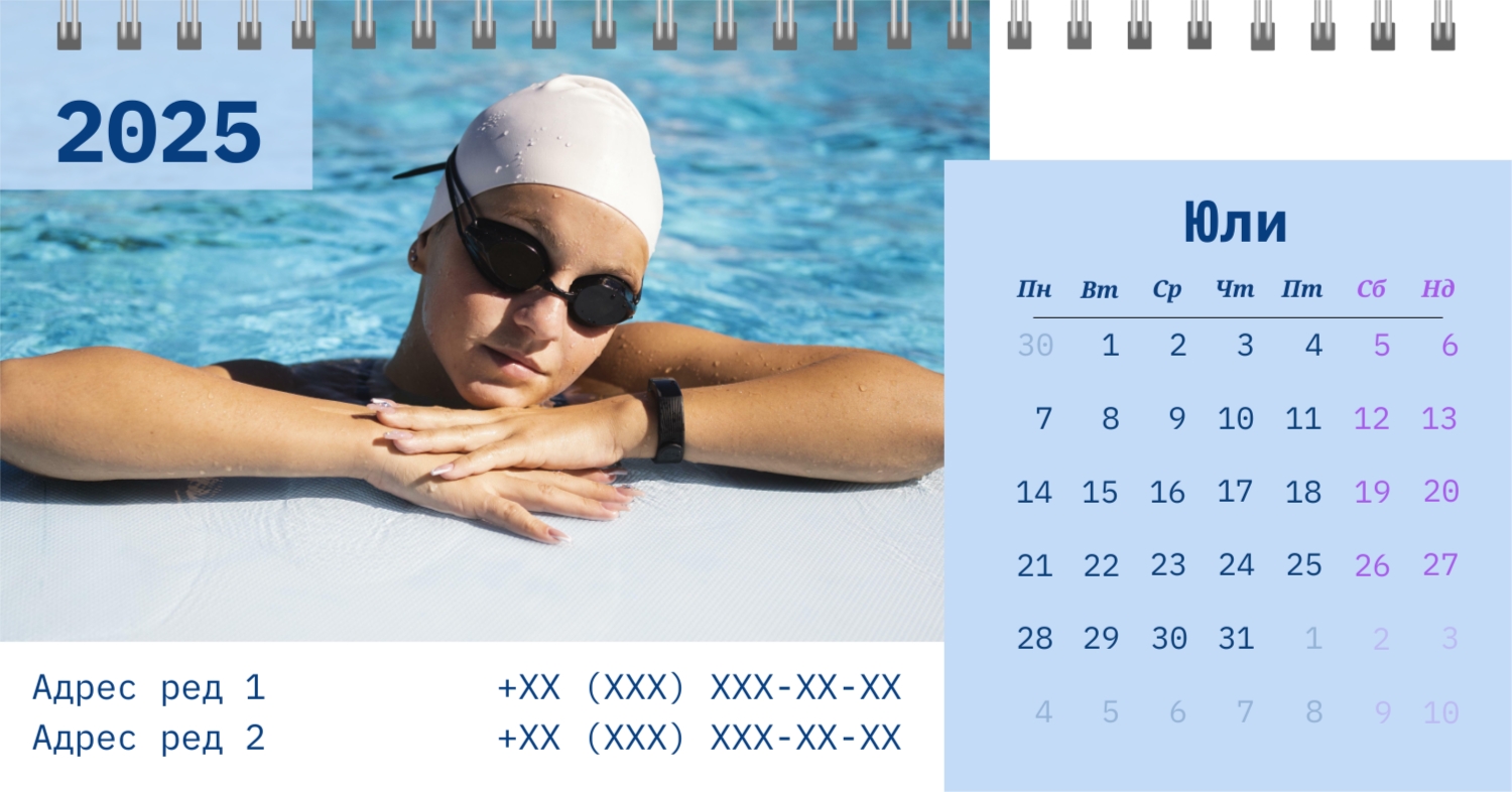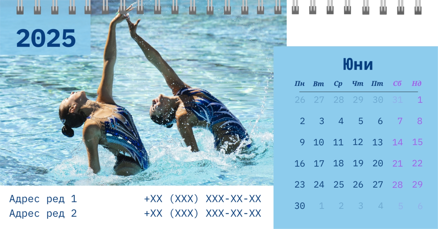 Безплатен шаблон за календар-къща за преобръщане онлайн за реклама на басейн, уроци по плуване. Създайте оформление "направи си сам" в онлайн конструктора на календари.