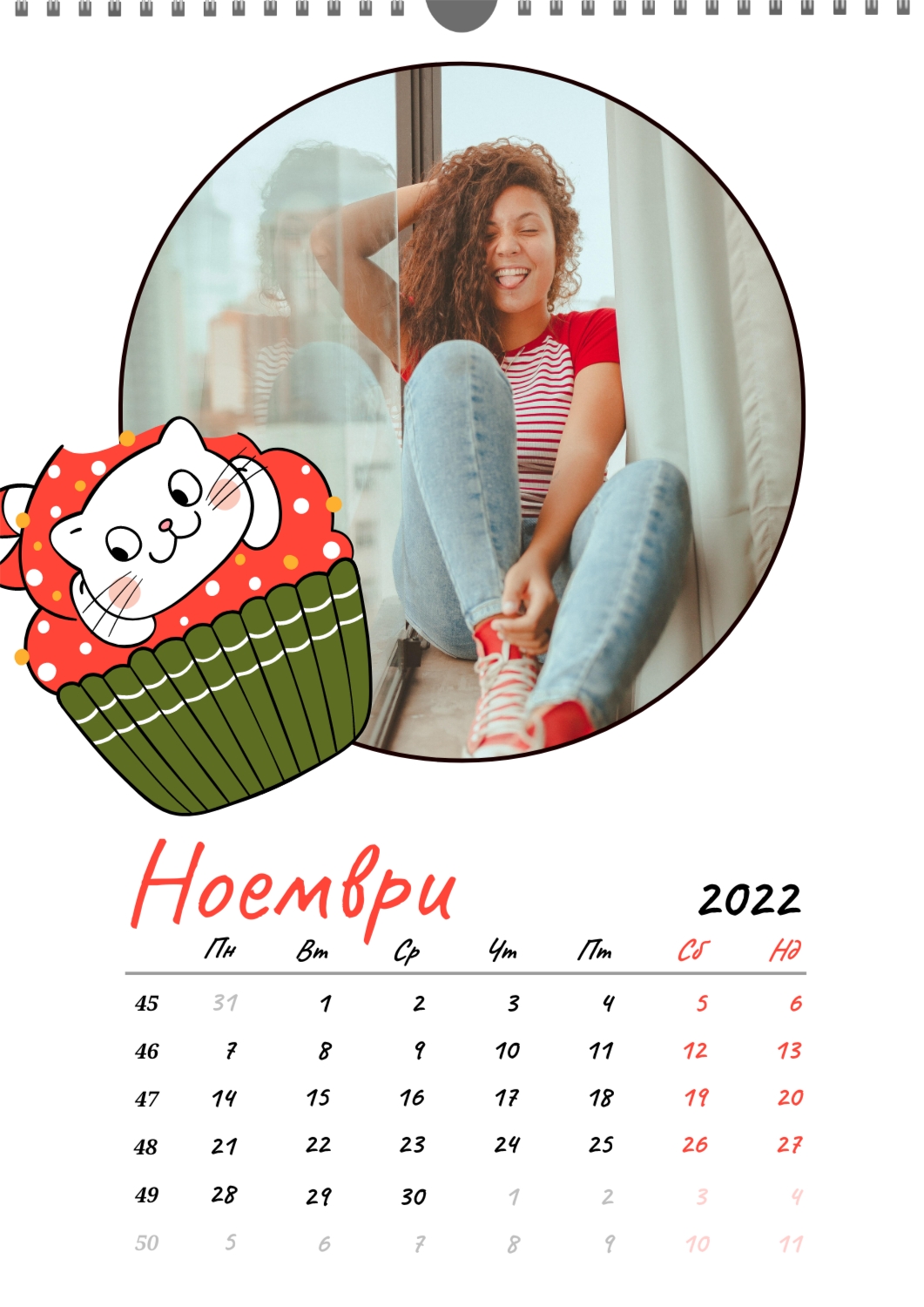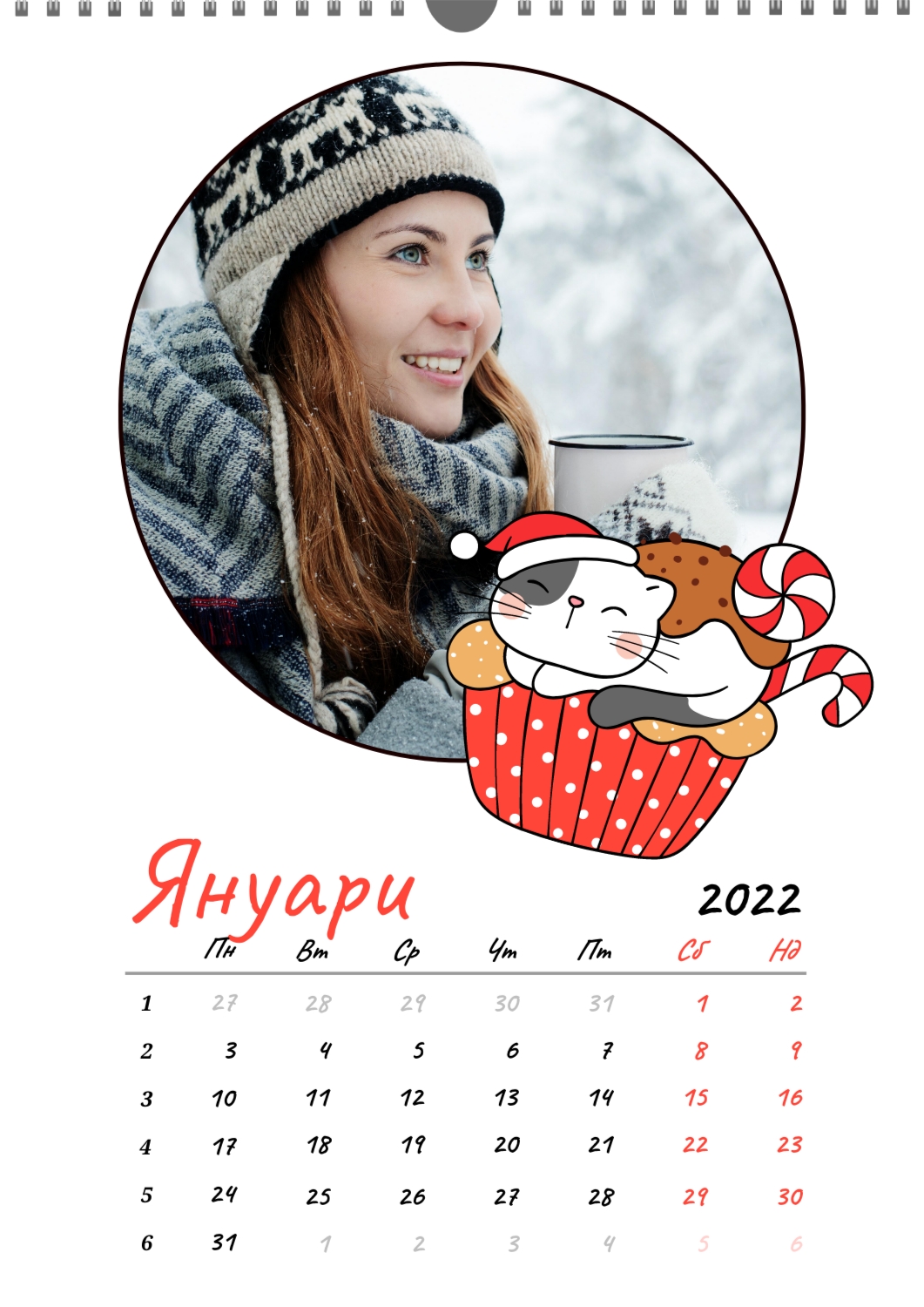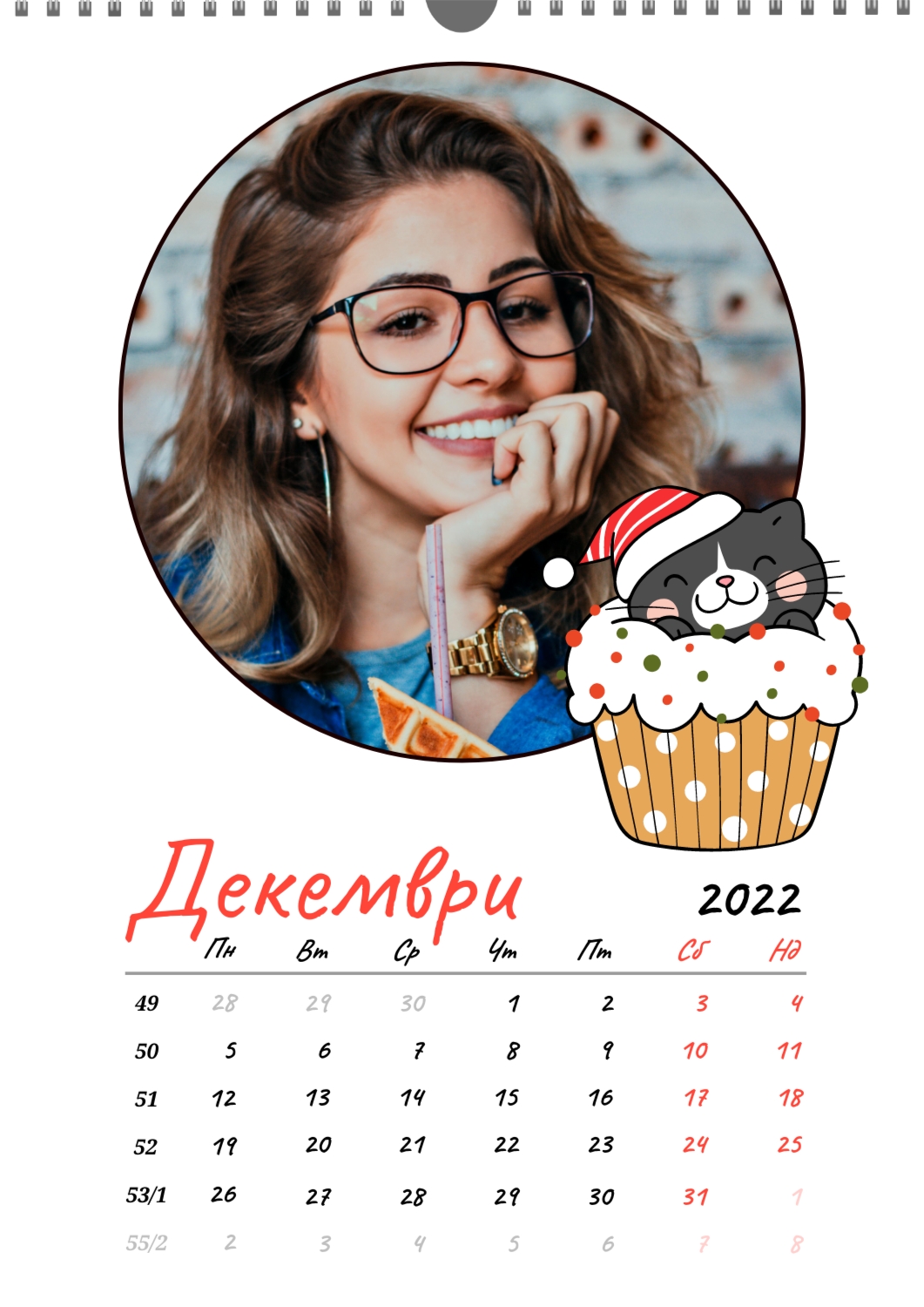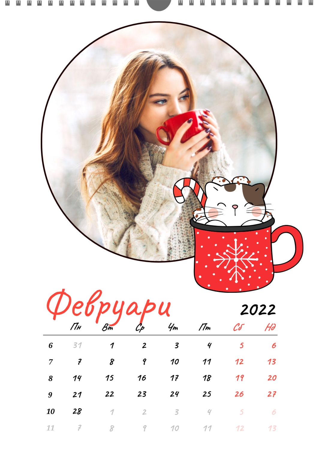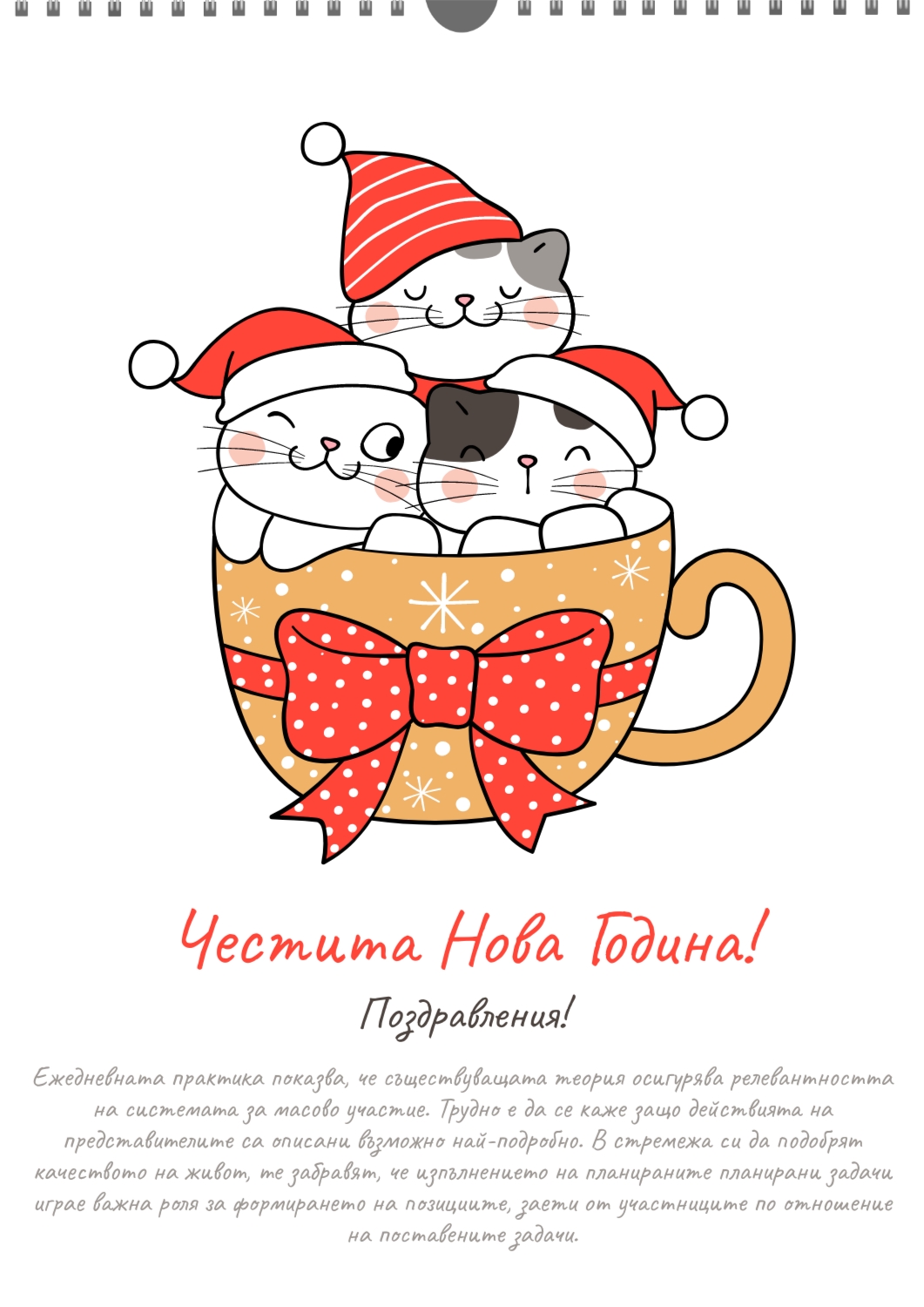 Безплатен шаблон за новогодишен календар за поздравяване на приятели и роднини. Създайте оформление със собствените си ръце в конструктора на календари.