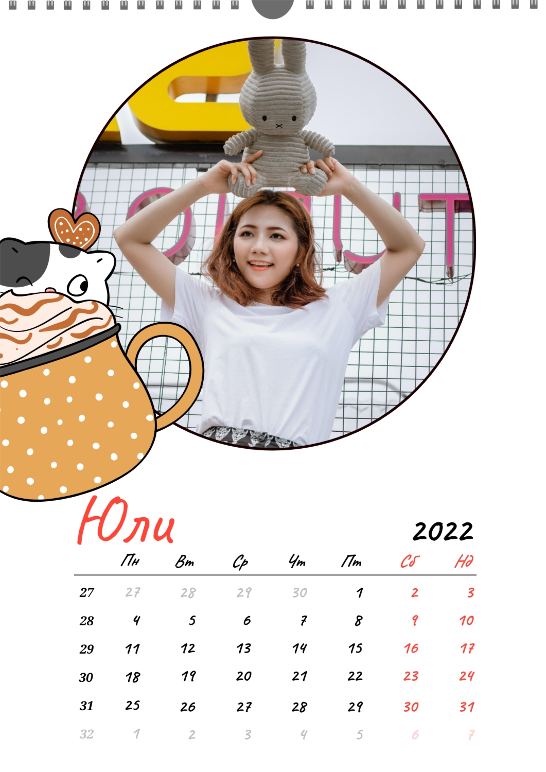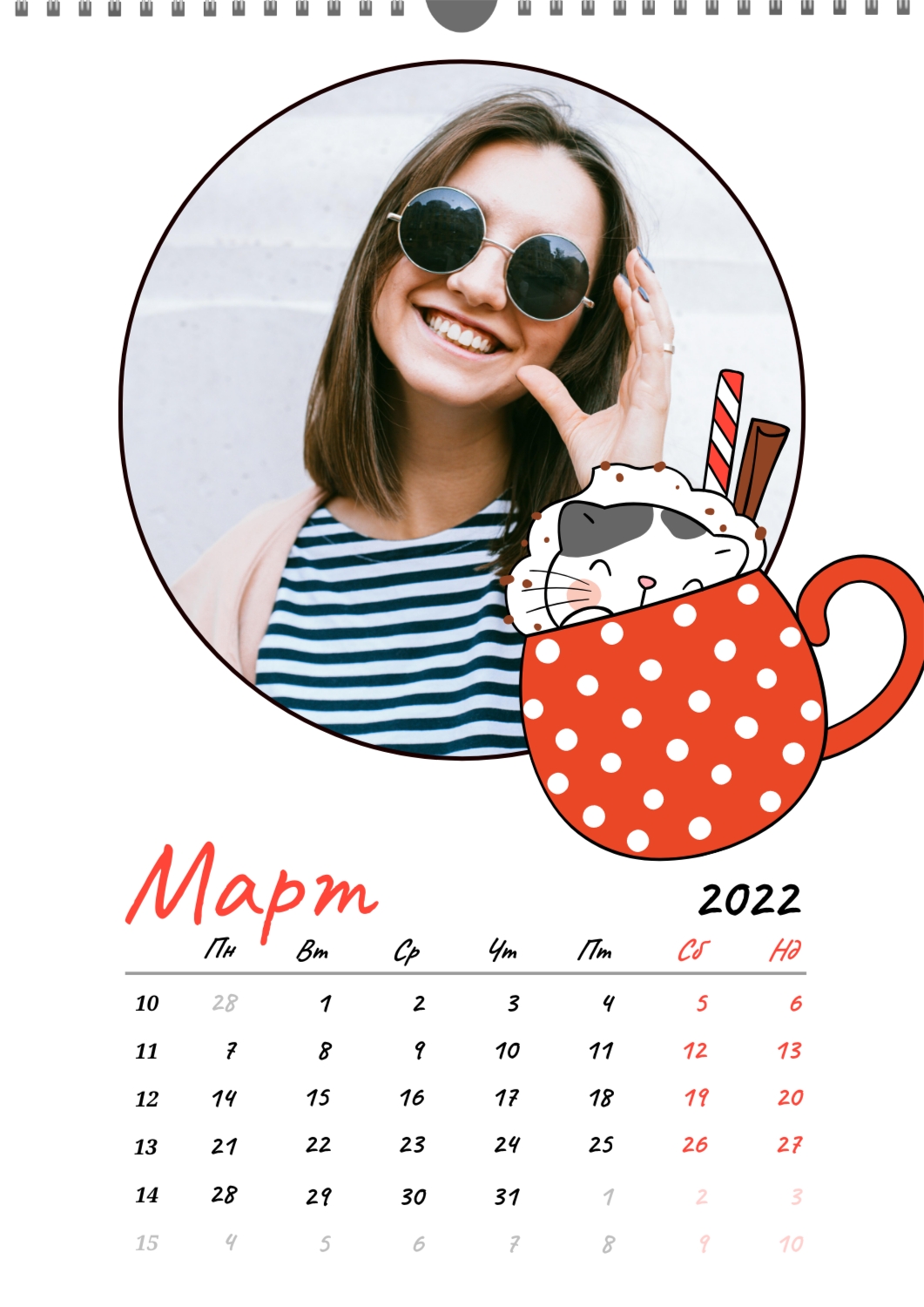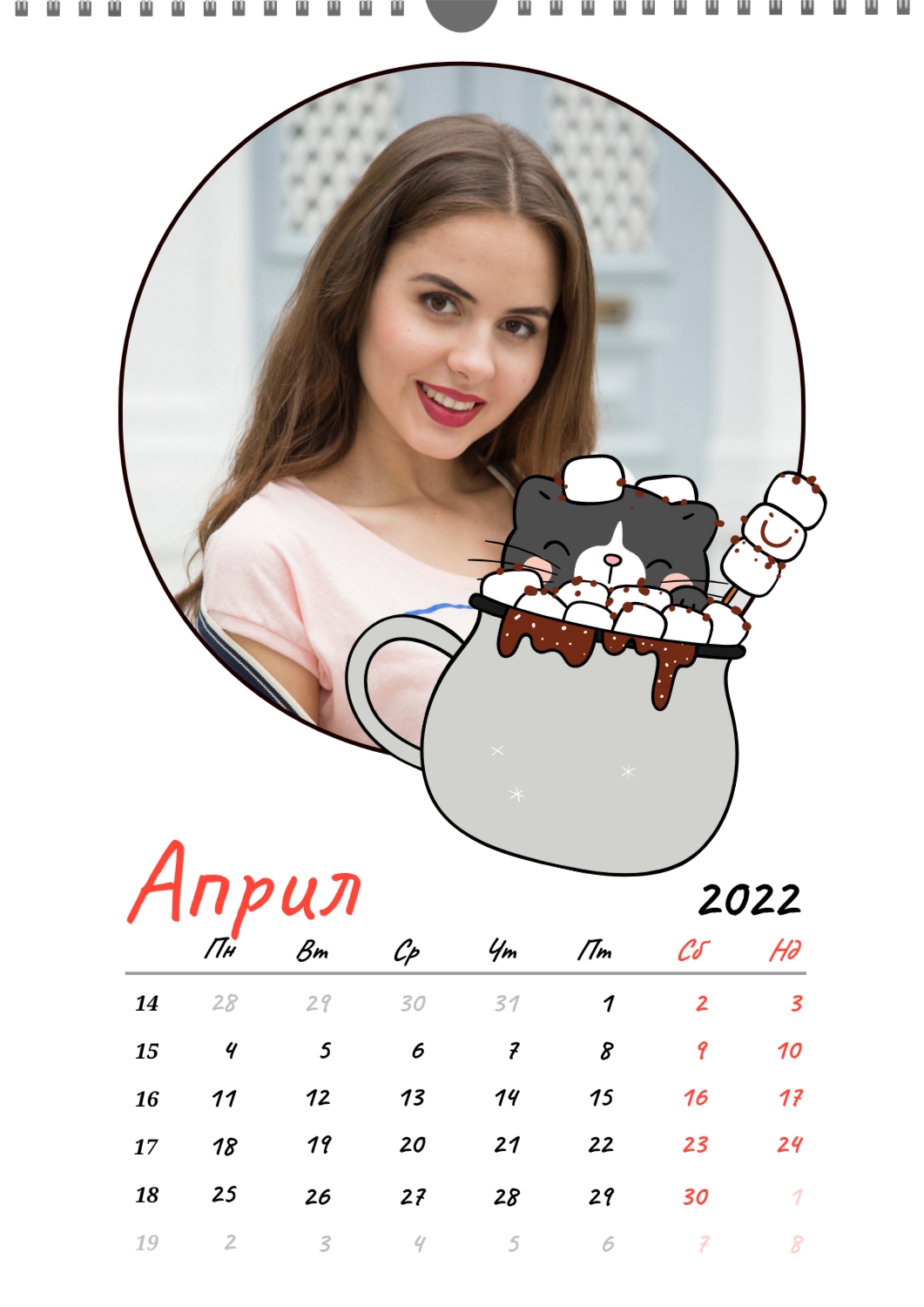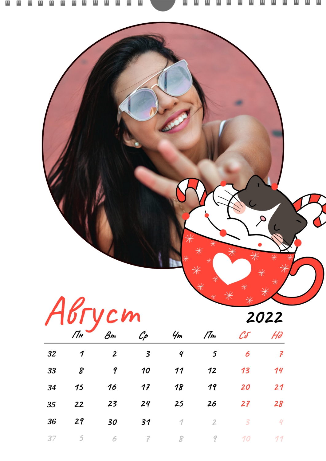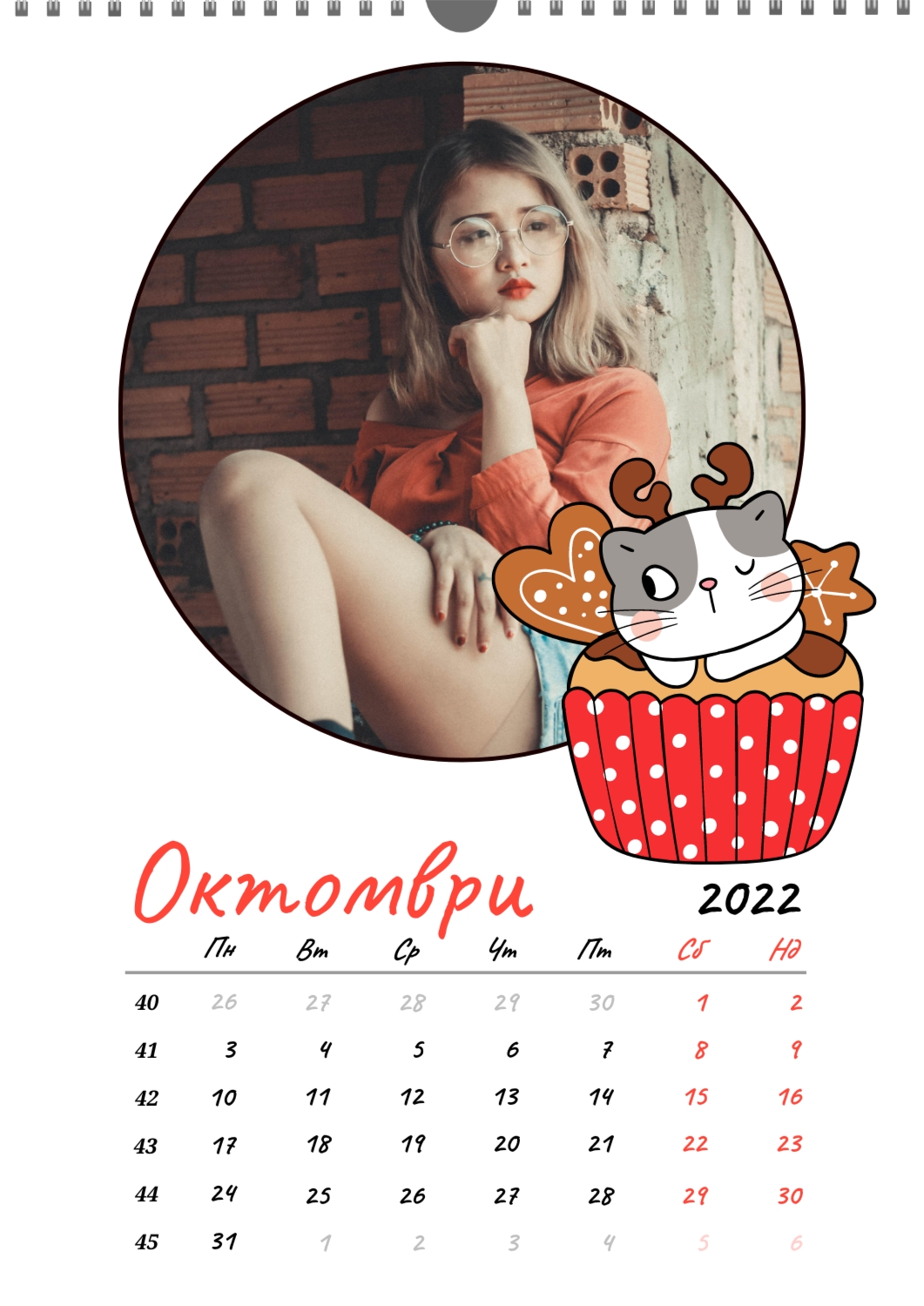 Безплатен шаблон за новогодишен календар за поздравяване на приятели и роднини. Създайте оформление със собствените си ръце в конструктора на календари.