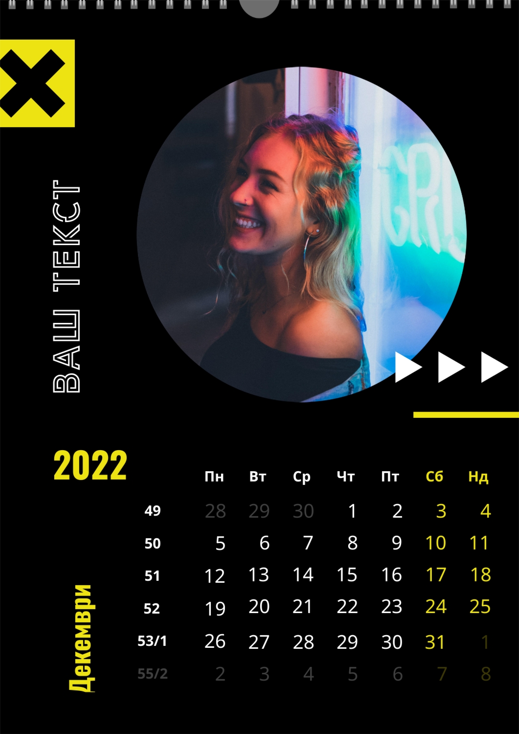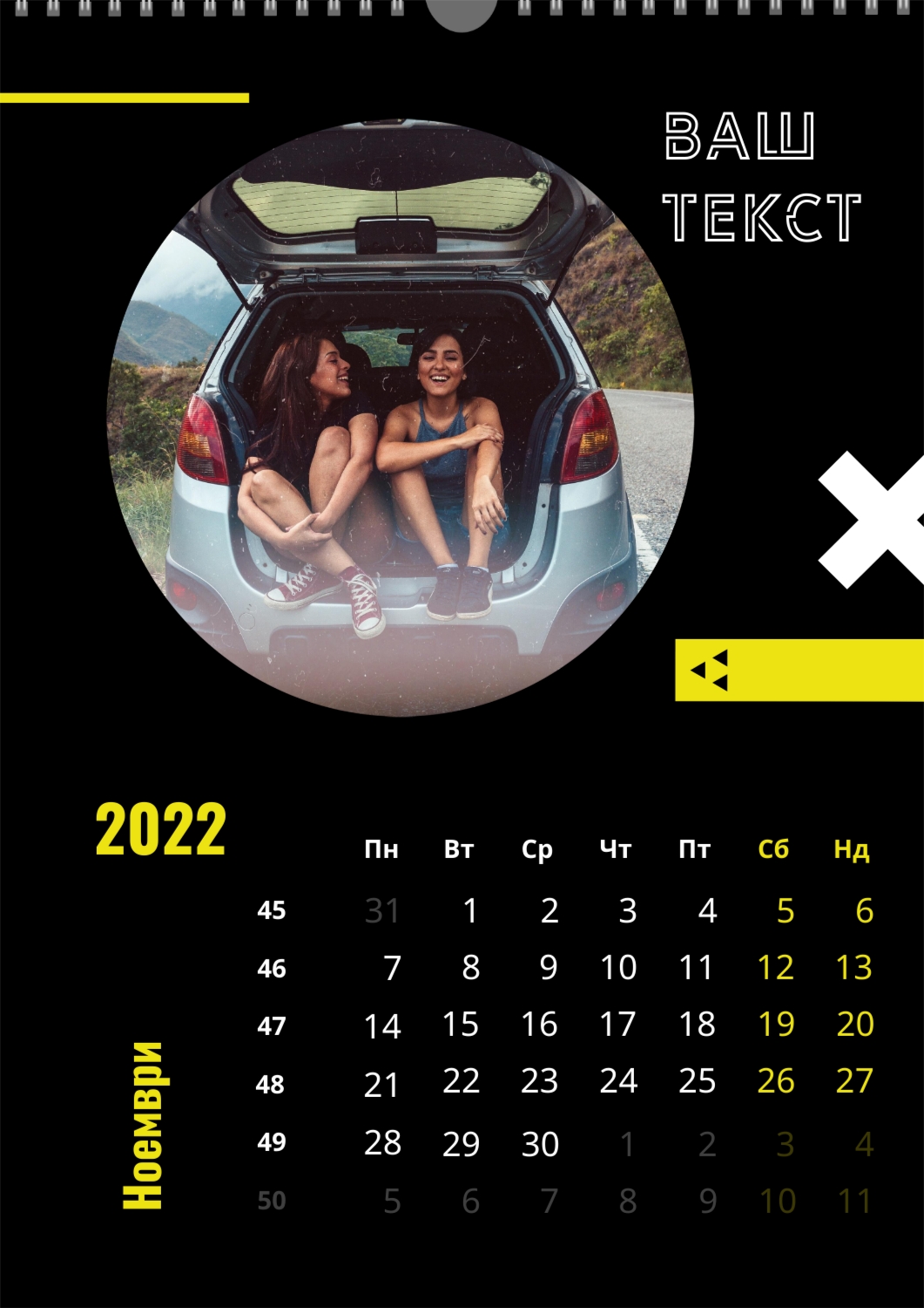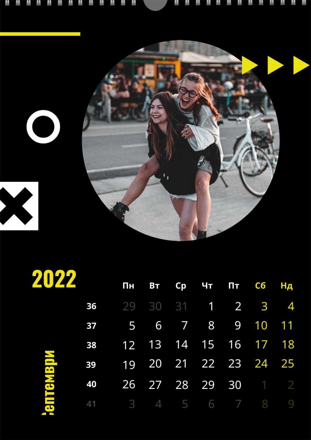Шаблонът" най-добри спомени " за стенен календар в нашия онлайн конструктор предоставя уникална възможност да оживите най-ярките си моменти. Вдъхновен от мили спомени, този шаблон е създаден, за да можете лесно и креативно да проектирате календара си. С внимание към детайлите и лекота на използване, нашият онлайн конструктор ви позволява да персонализирате всеки елемент от този шаблон. Можете да променяте цветове, шрифтове, да добавяте свои снимки и текст, правейки всеки месец уникален. Персонализираният дизайн ще бъде отражение на вашия уникален стил и спомени. Една от характеристиките на конструктора е възможността да добавяте допълнителни блокове за бележки, така че да можете да запазвате важни точки, планове и цели за всеки месец. Това прави календара не само стилен, но и функционален инструмент за вашата организация. Създаването на вашия уникален вертикален стенен календар с помощта на шаблона "най-добри спомени" в нашия онлайн конструктор е възможност не само да запазите ценни моменти, но и да изразите своята индивидуалност чрез творческия процес на проектиране. Празнувайте всеки ден, вдъхвайки живот на спомените си и създайте календар, който ще ви радва през цялата година.