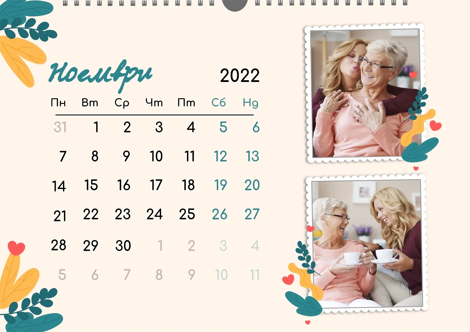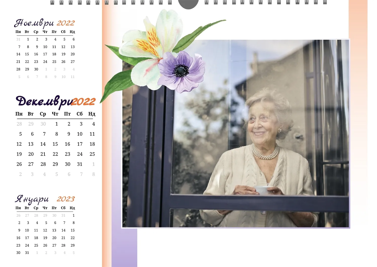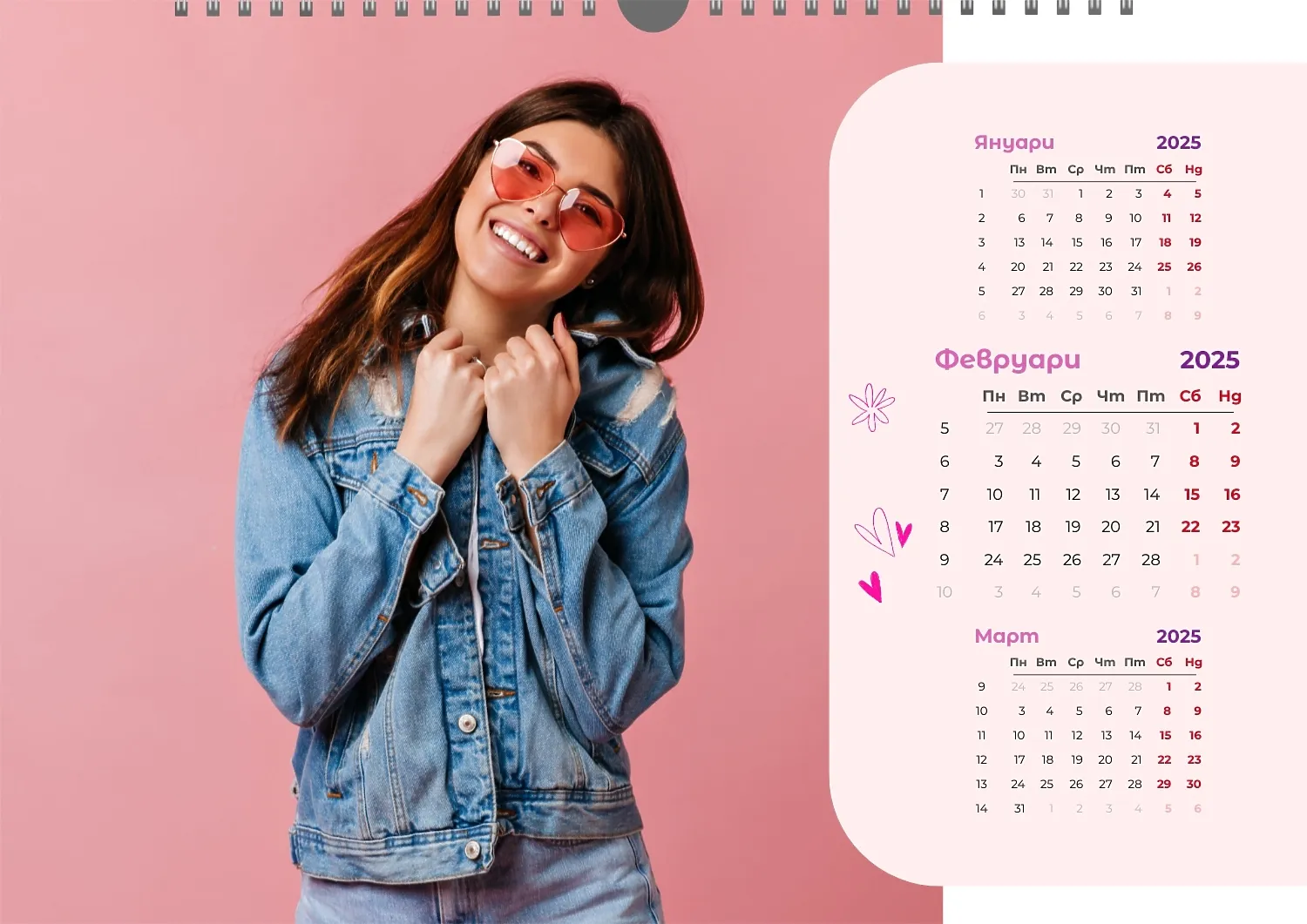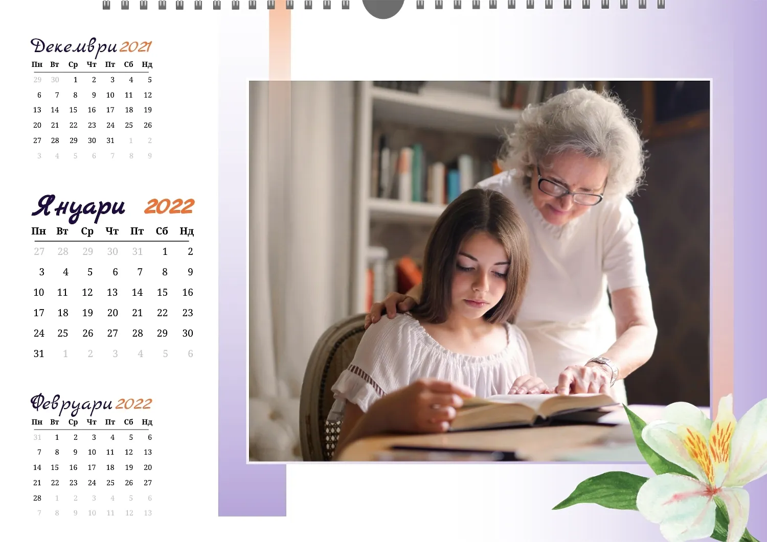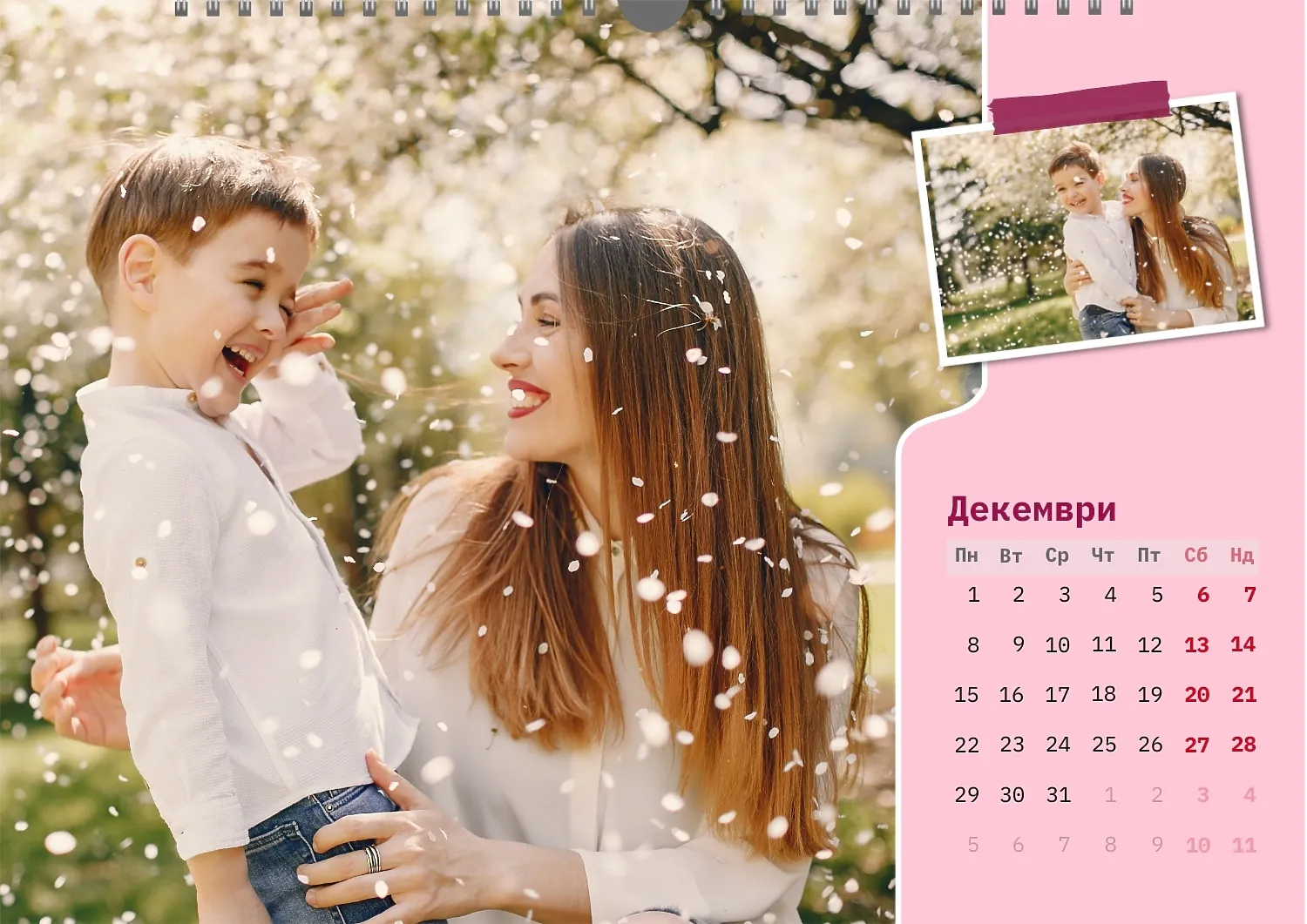 Безплатен шаблон за новогодишен календар като подарък за близки. Създайте оформление със собствените си ръце в конструктора на календари.