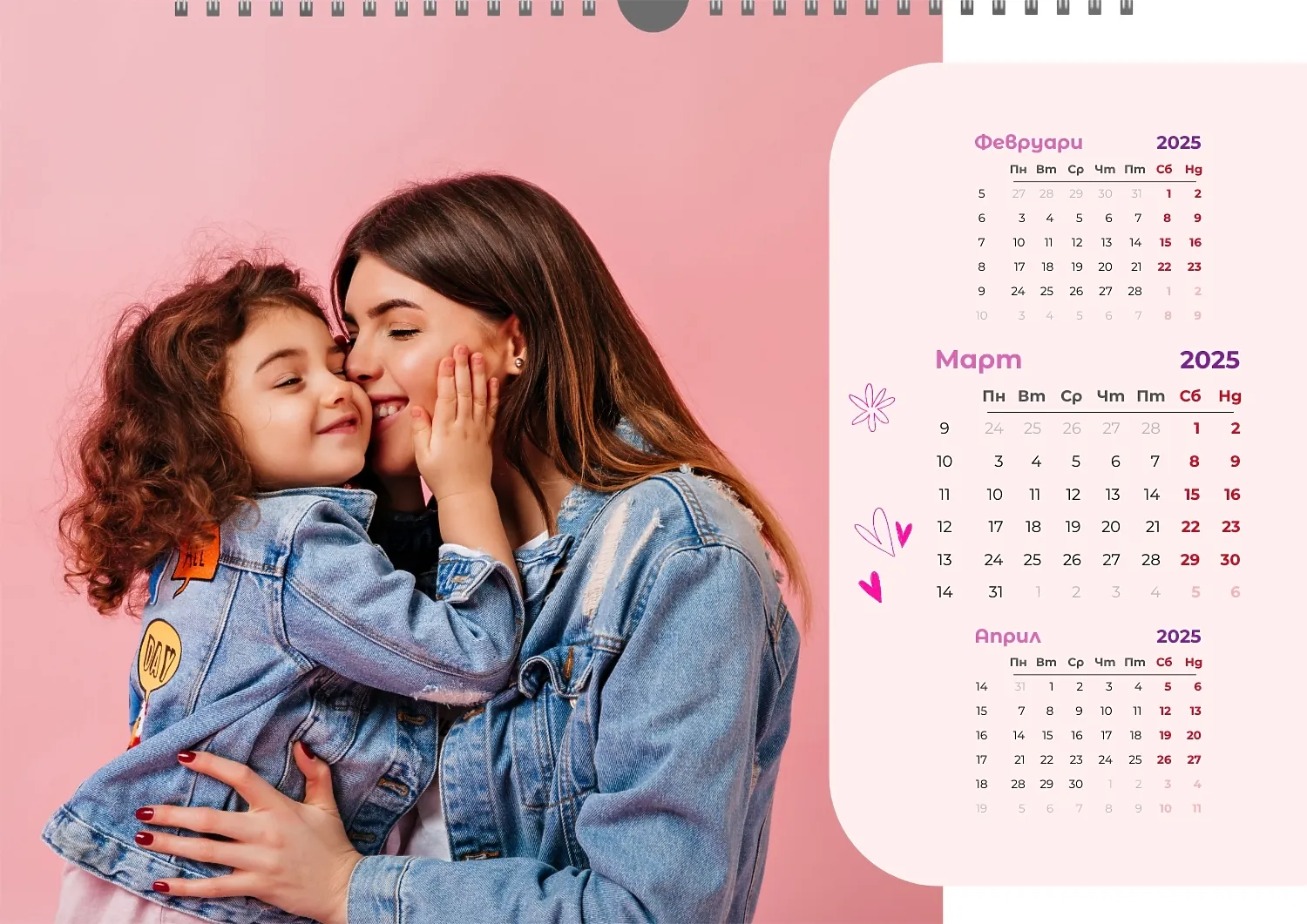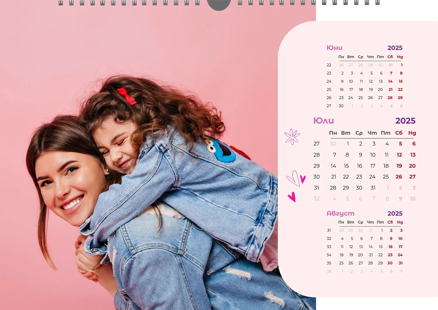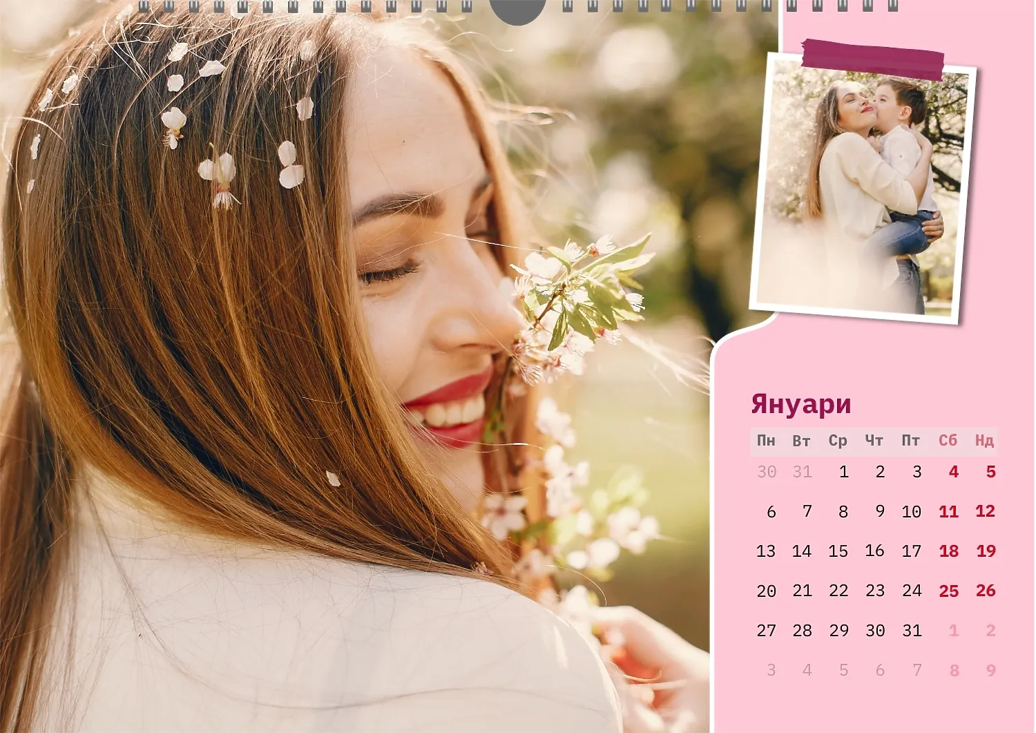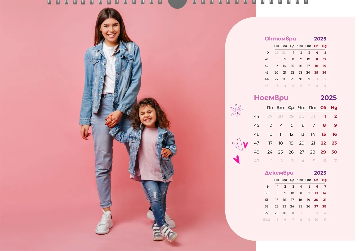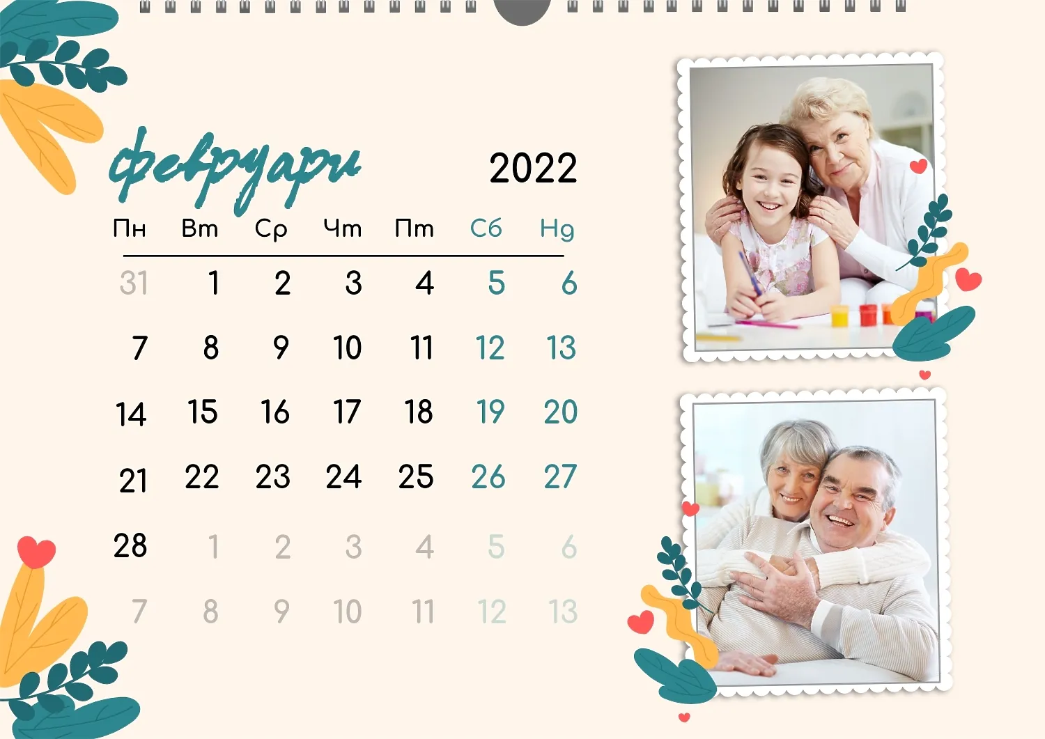 Безплатен шаблон за новогодишен календар като подарък за близки. Създайте оформление със собствените си ръце в конструктора на календари.
