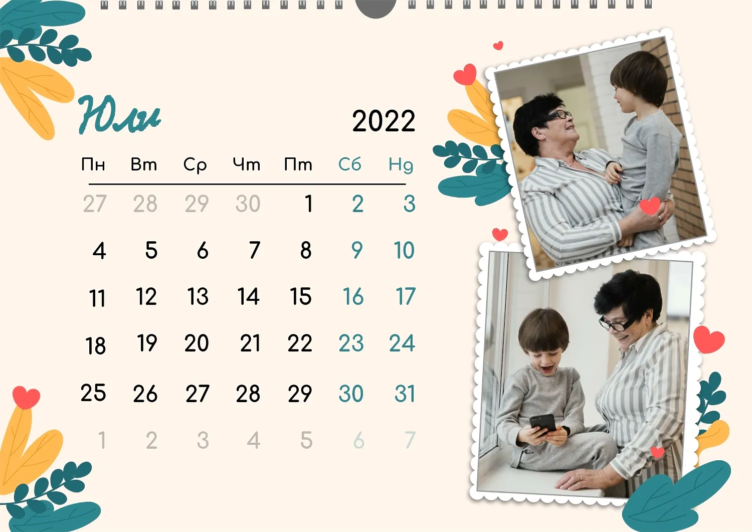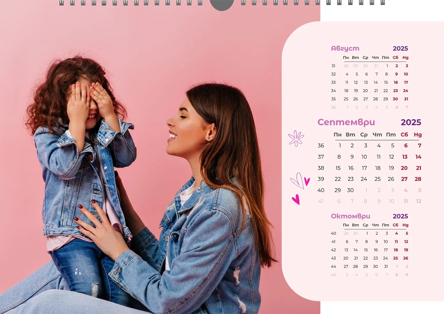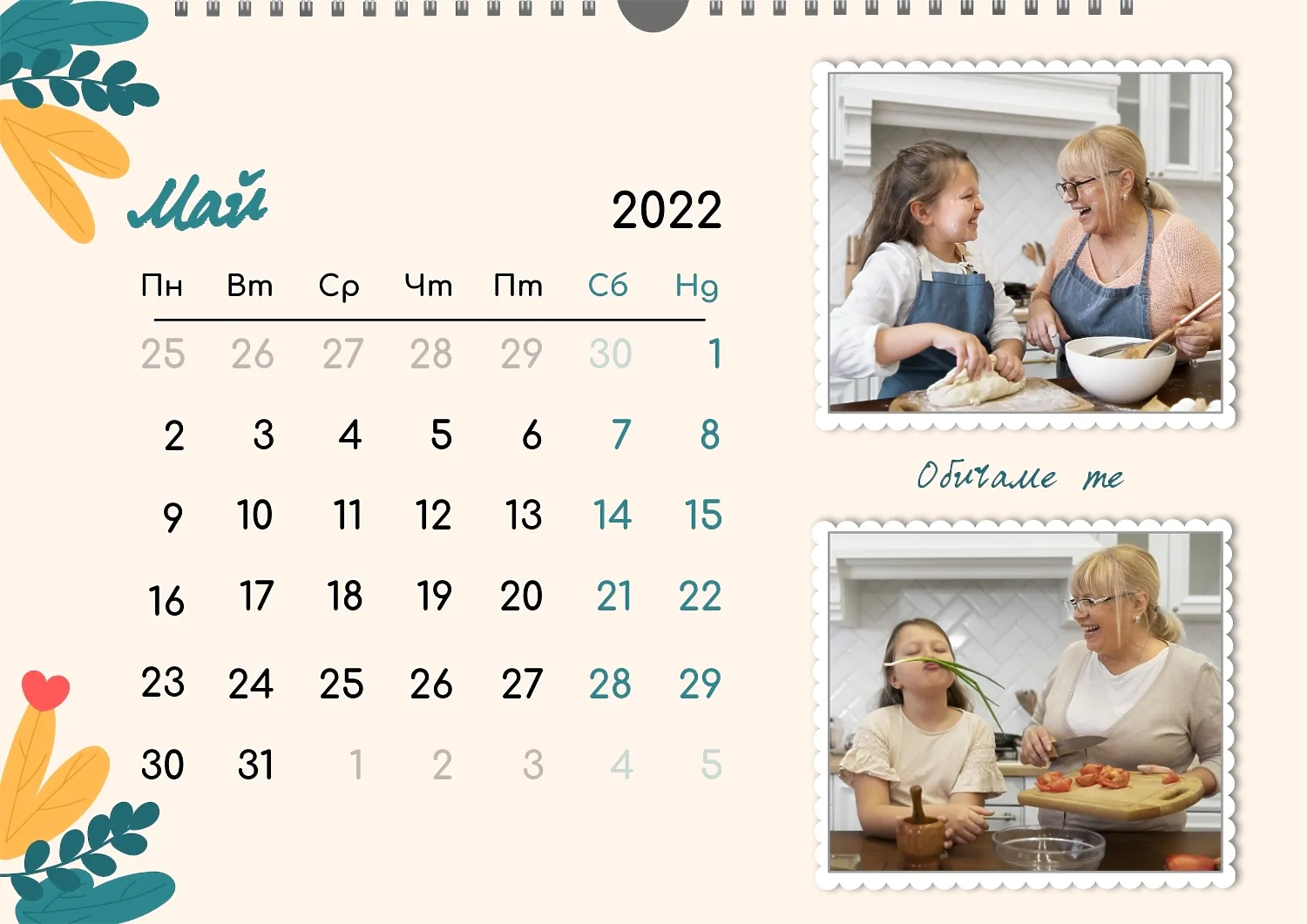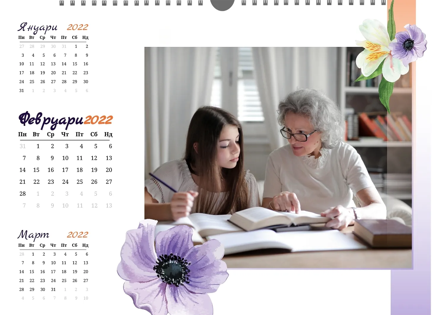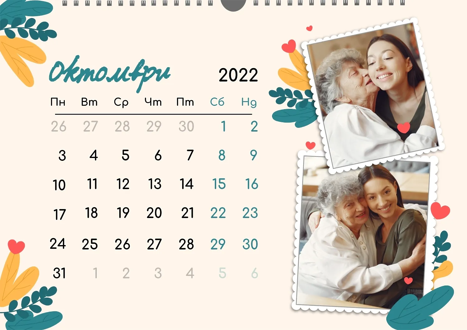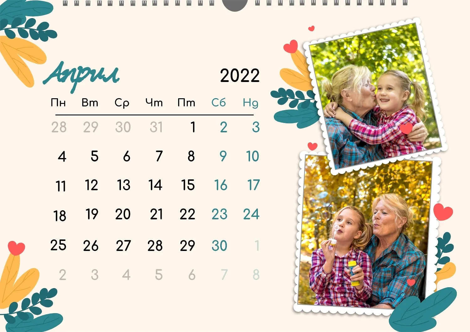 Безплатен шаблон за новогодишен календар като подарък за близки. Създайте оформление със собствените си ръце в конструктора на календари.