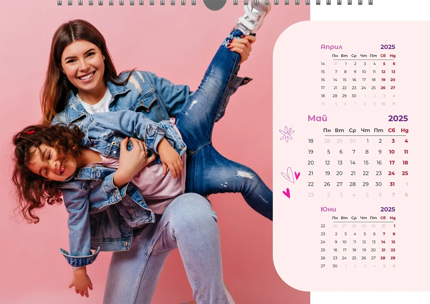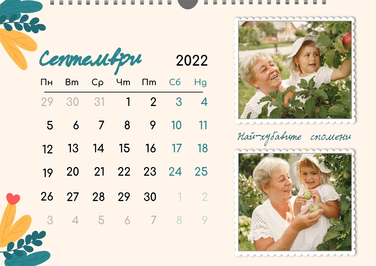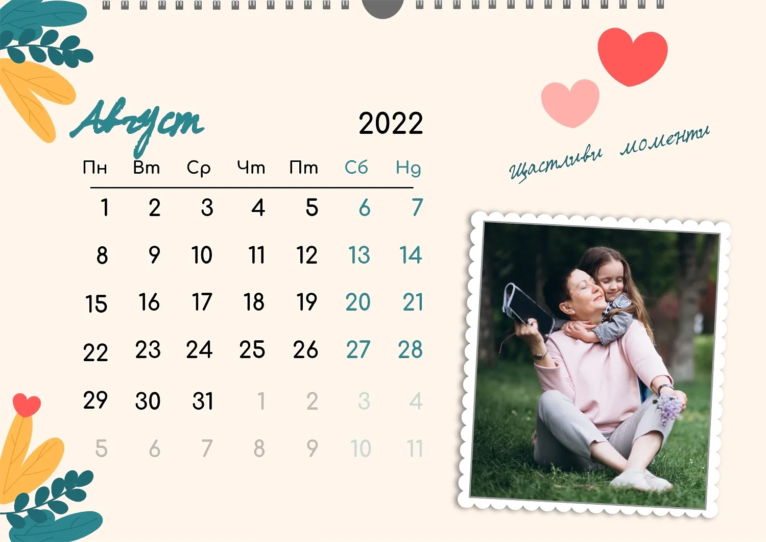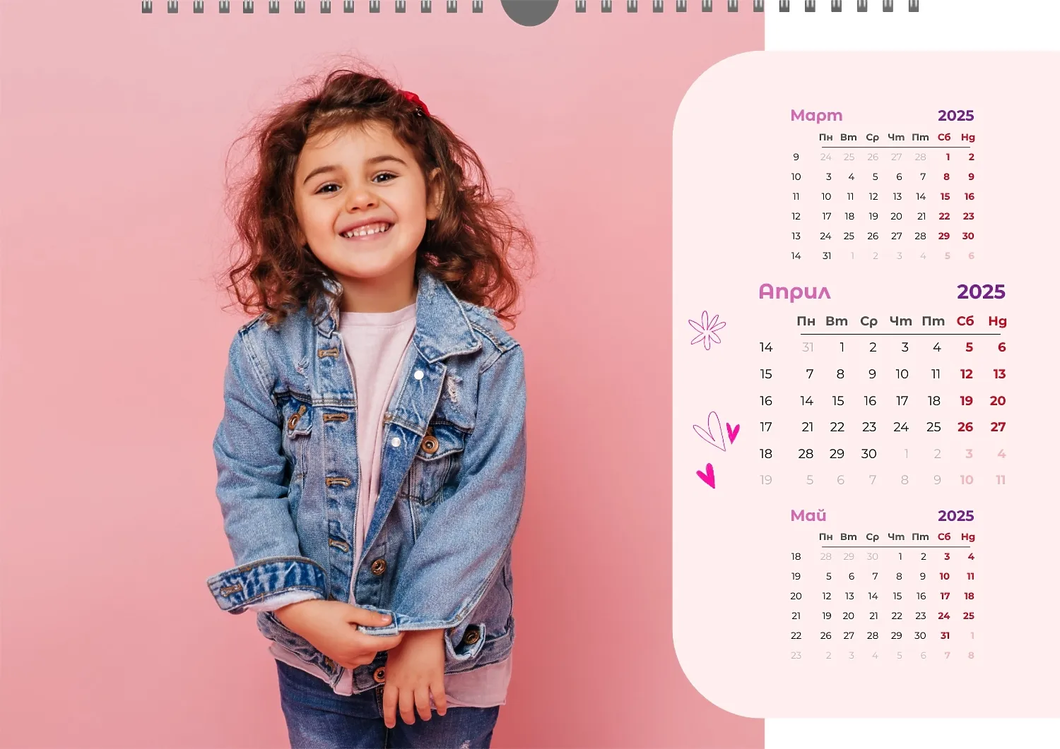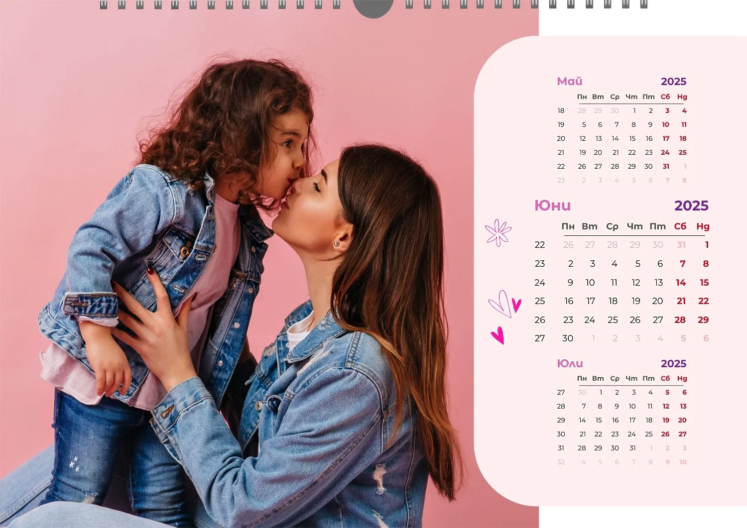 Безплатен шаблон за новогодишен календар като подарък за близки. Създайте оформление със собствените си ръце в конструктора на календари.