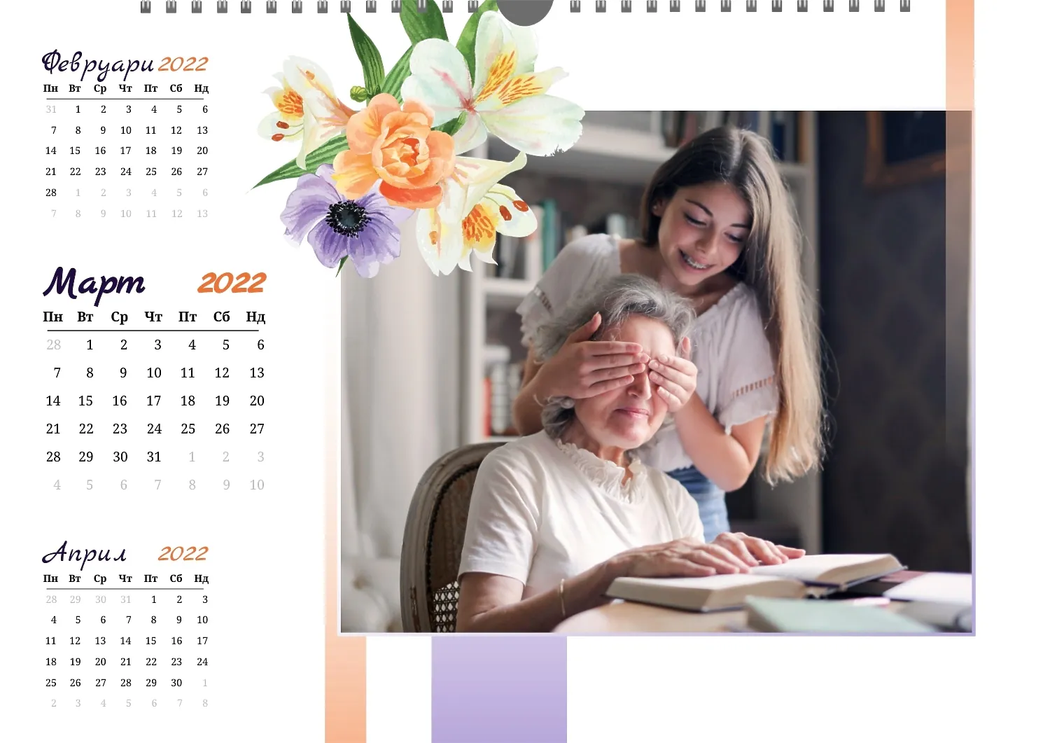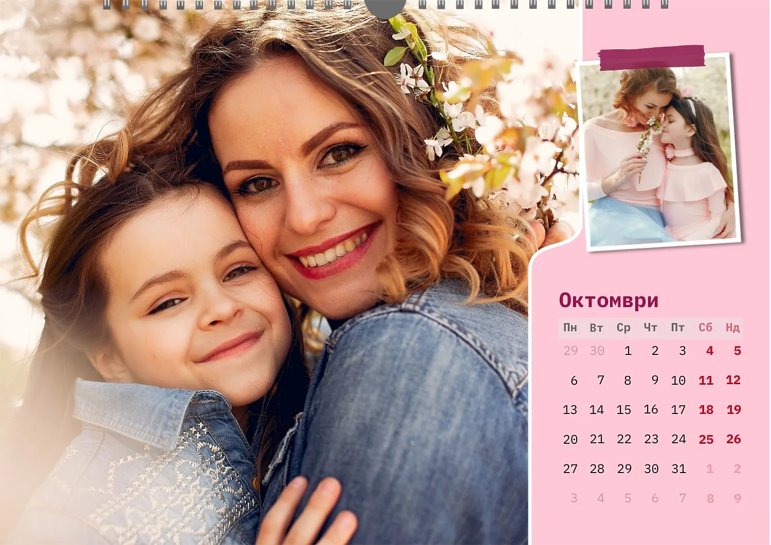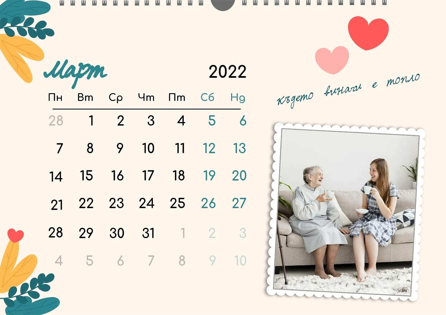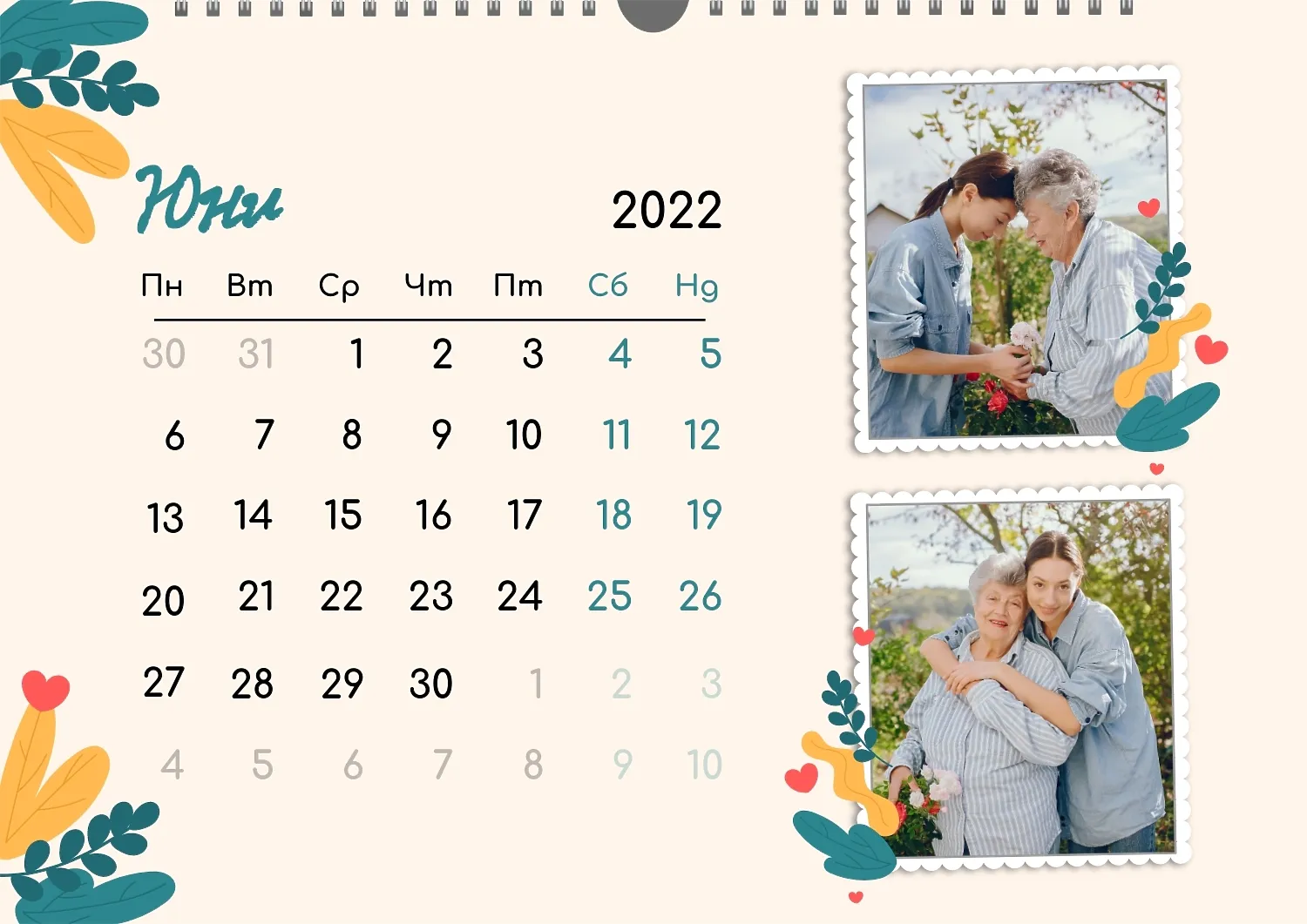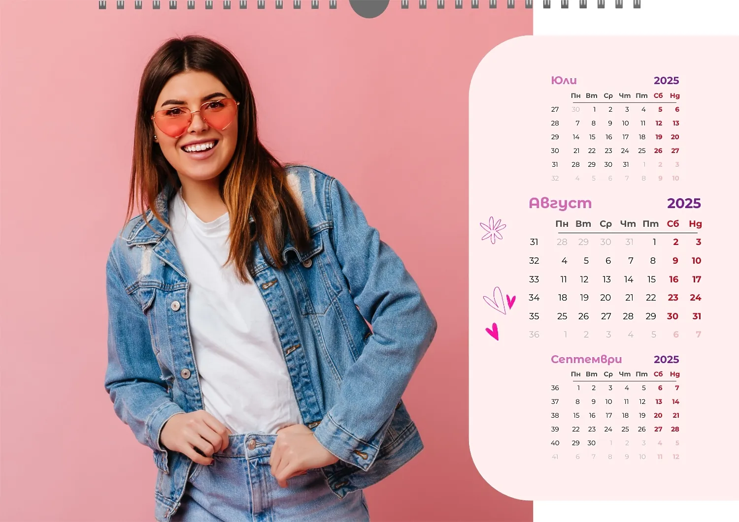 Безплатен шаблон за новогодишен календар като подарък за близки. Създайте оформление със собствените си ръце в конструктора на календари.