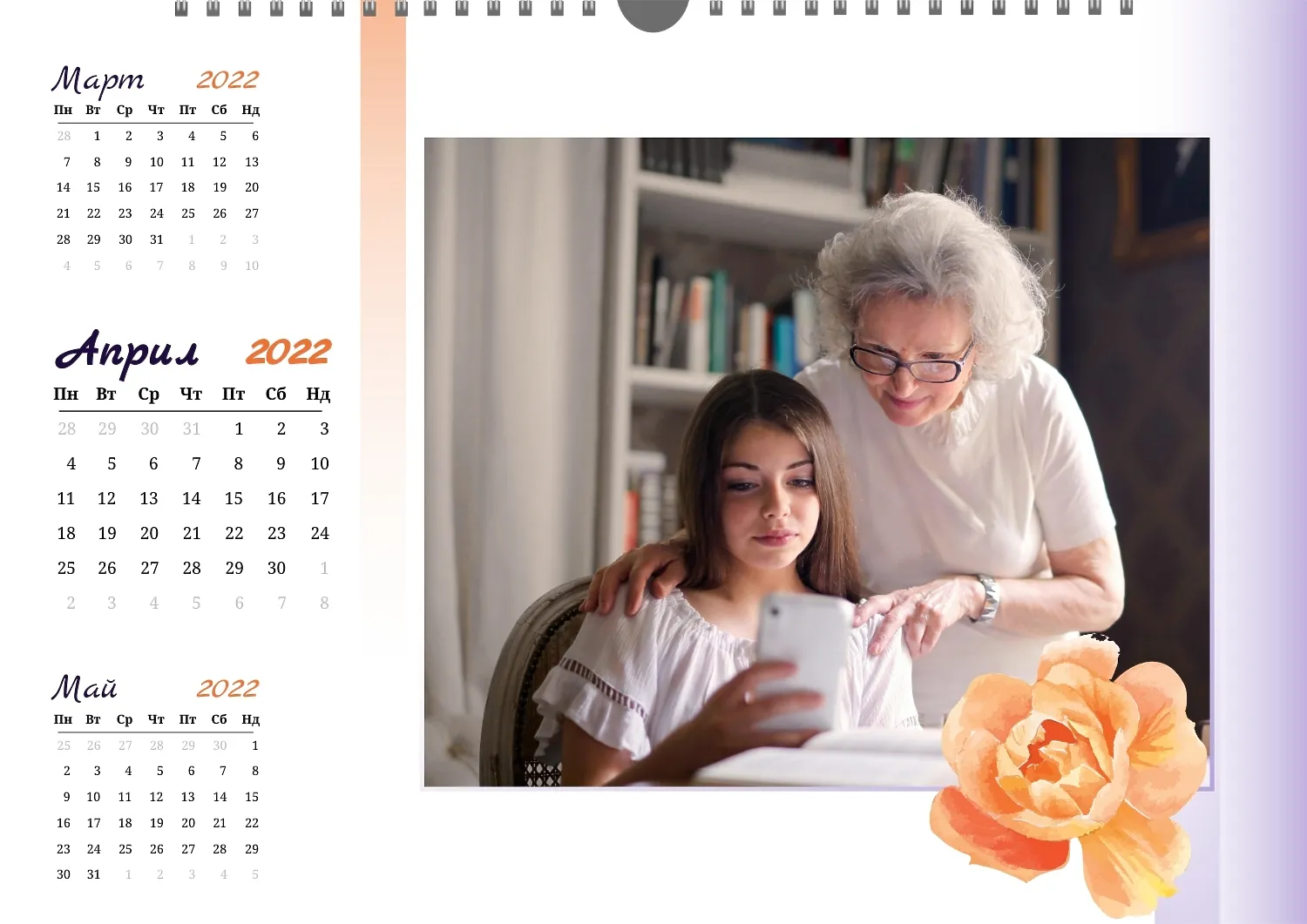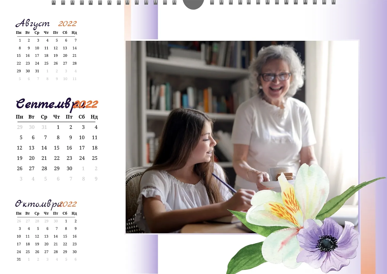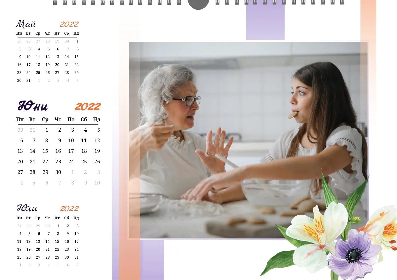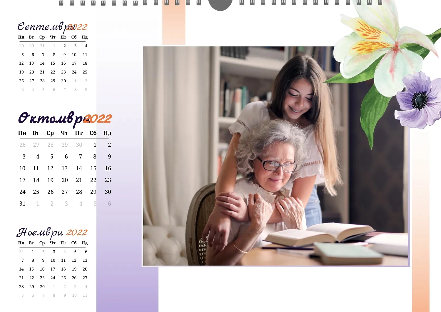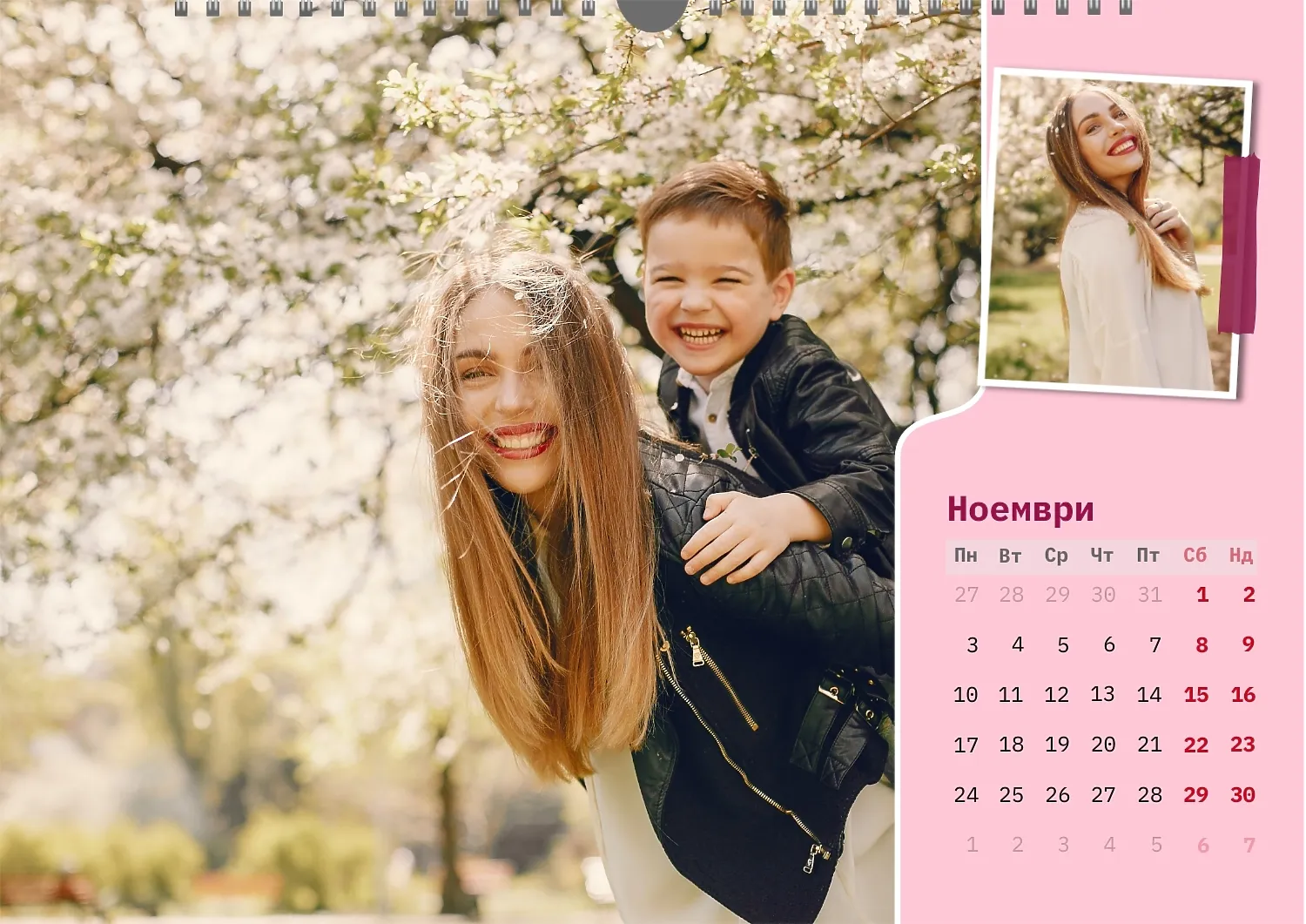 Безплатен шаблон за новогодишен календар като подарък за близки. Създайте оформление със собствените си ръце в конструктора на календари.