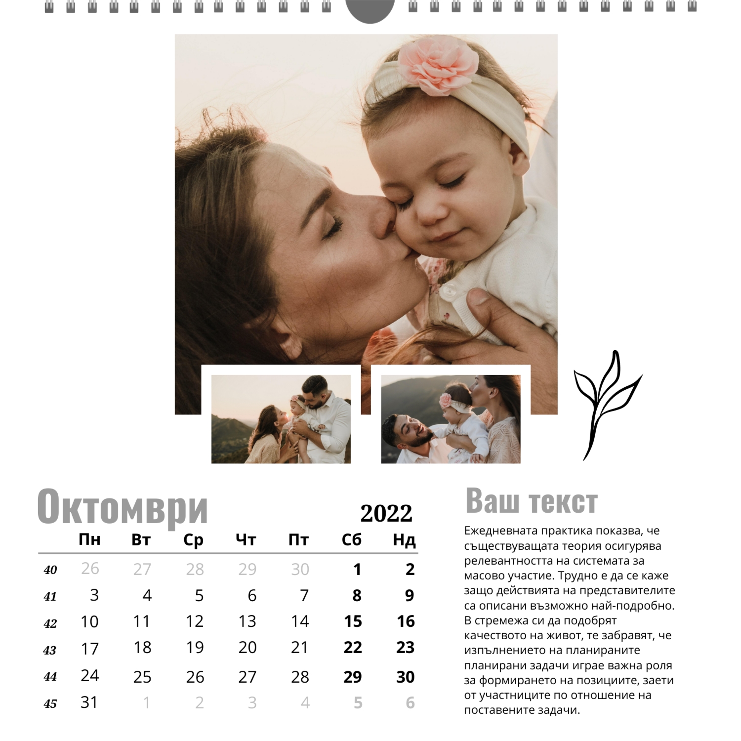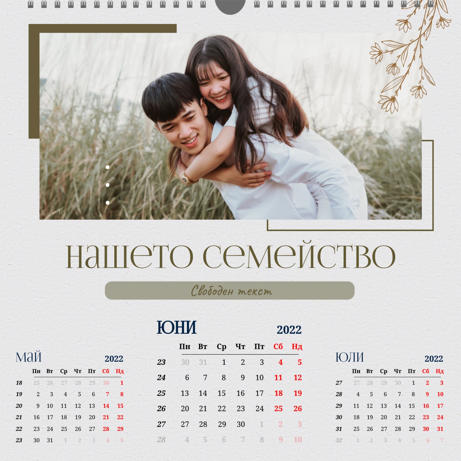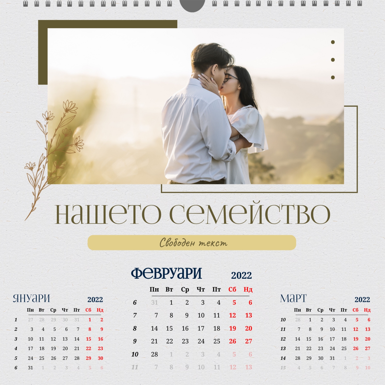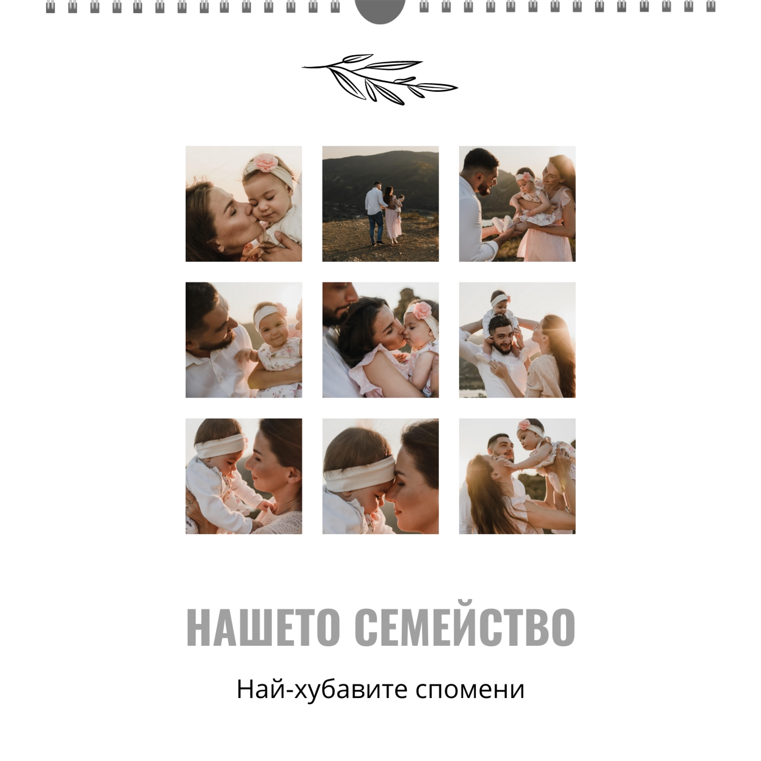 Безплатен шаблон за семеен календар като подарък за баба от внуци. Създайте оформление със собствените си ръце в конструктора на календари.