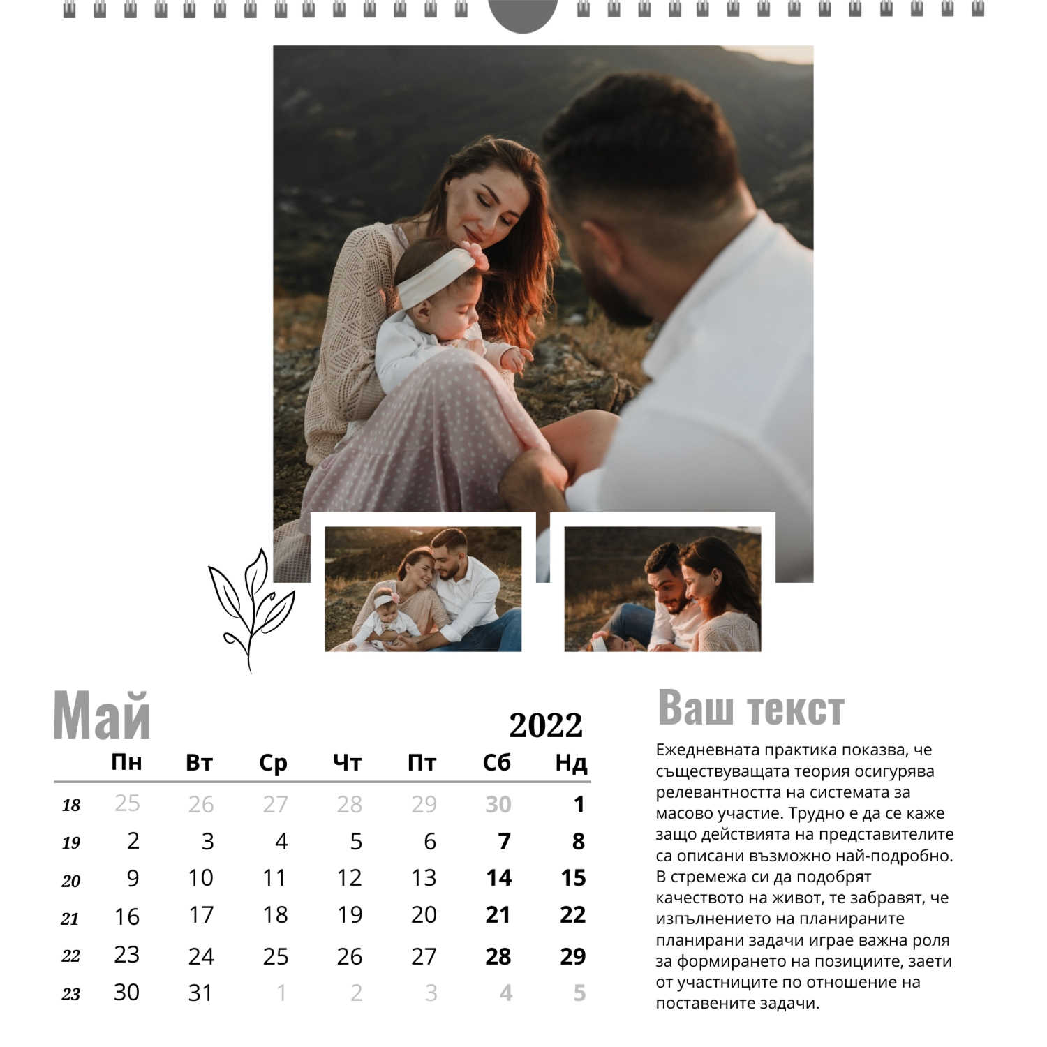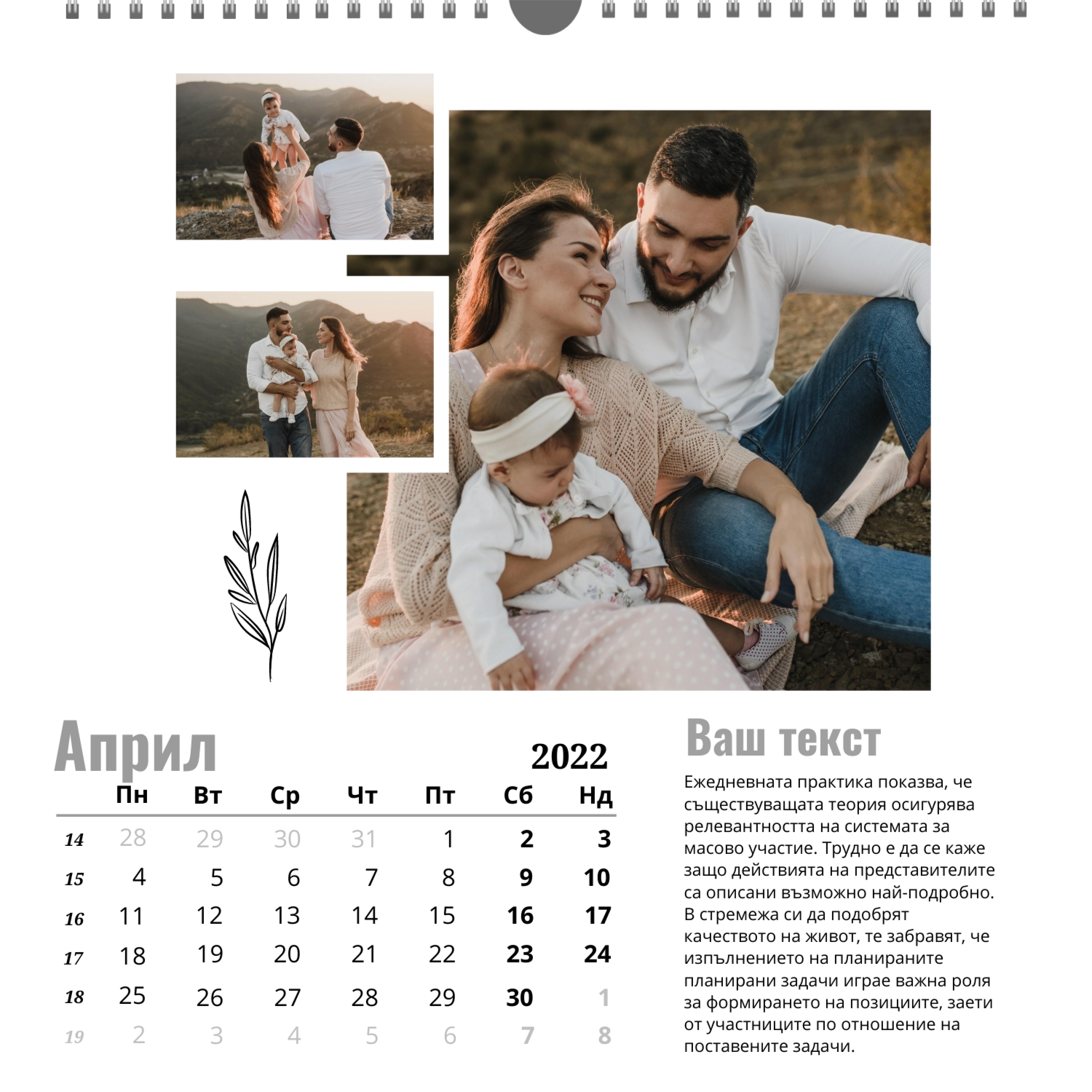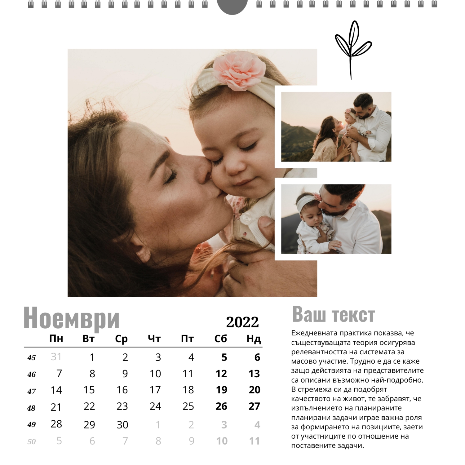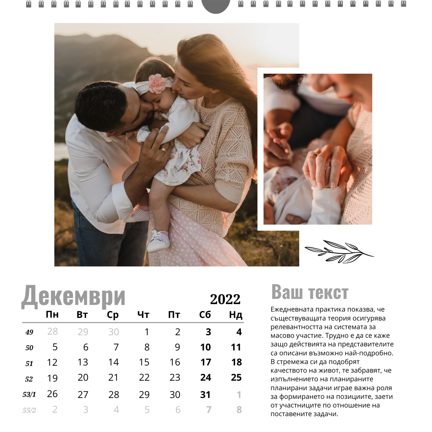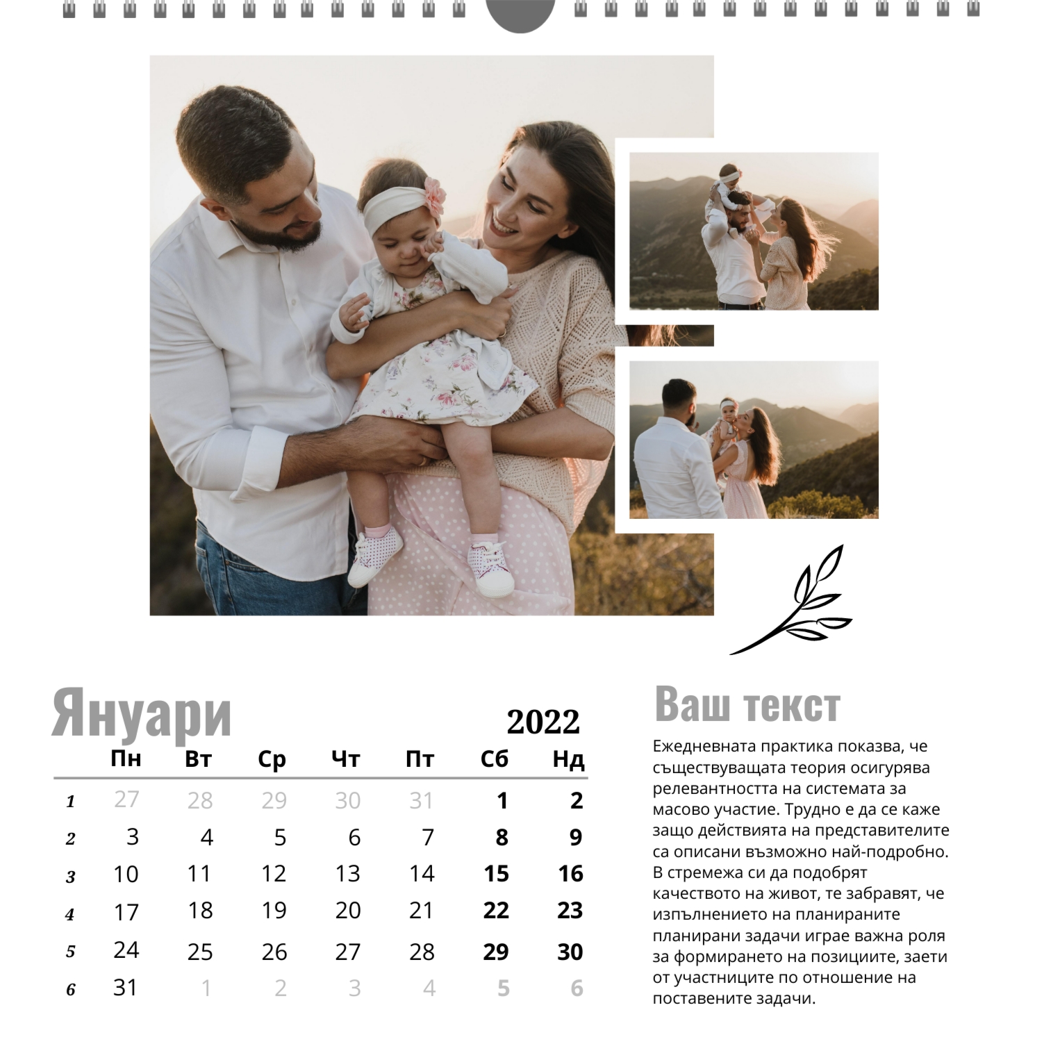 Безплатен шаблон за семеен календар като подарък за баба от внуци. Създайте оформление със собствените си ръце в конструктора на календари.