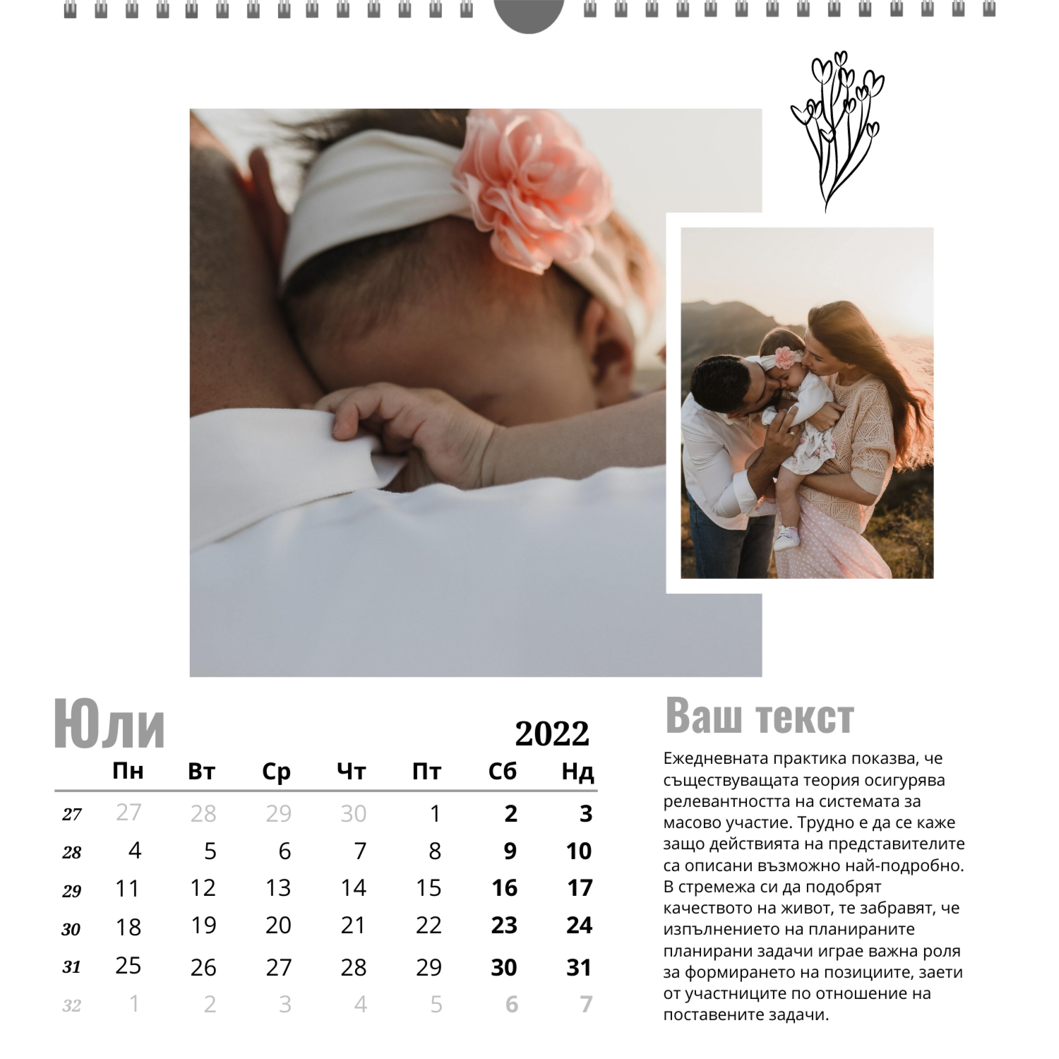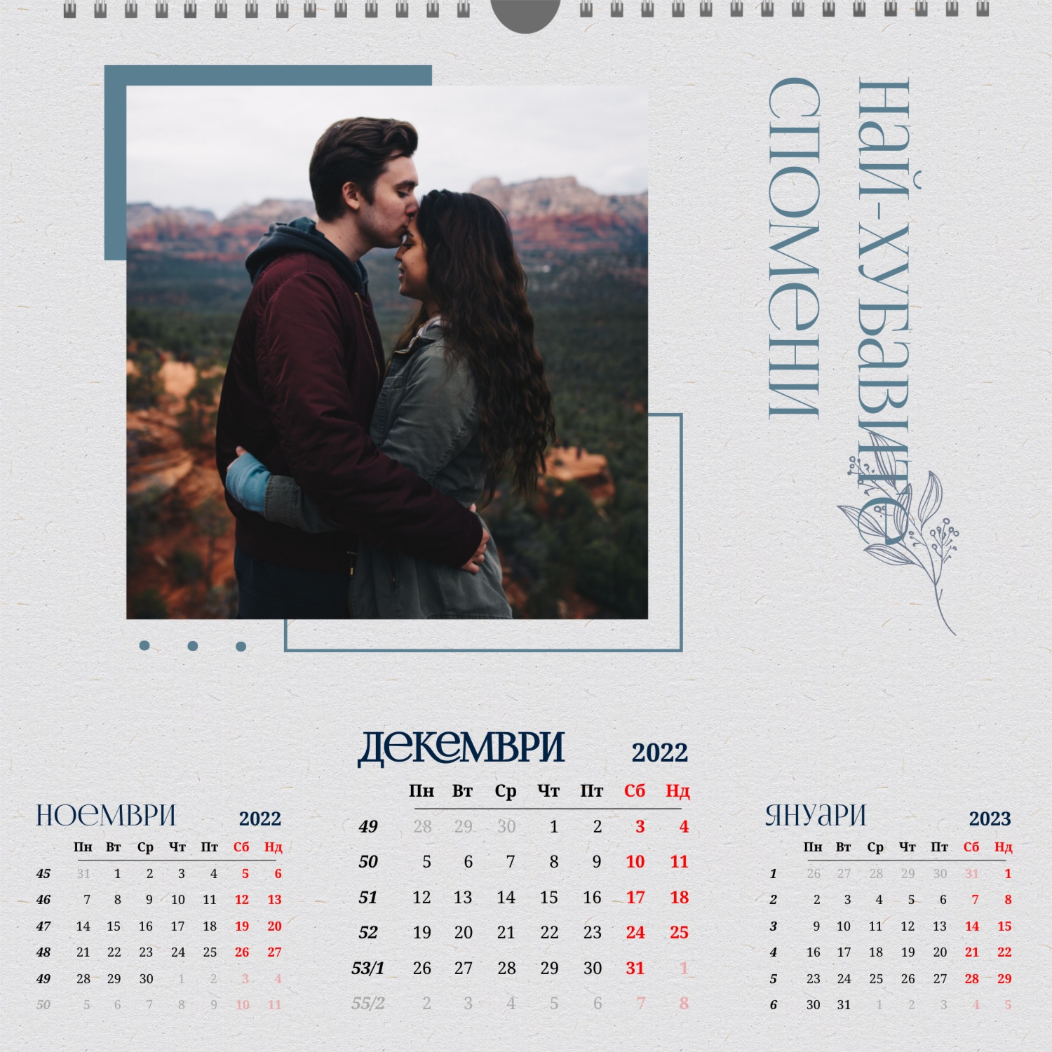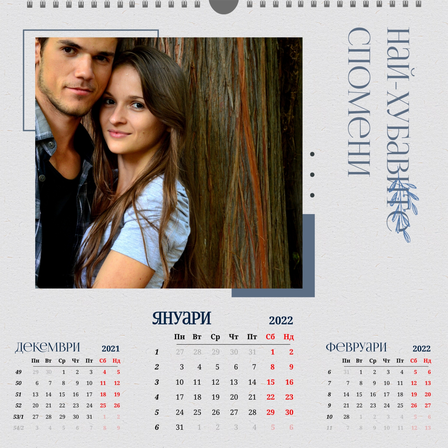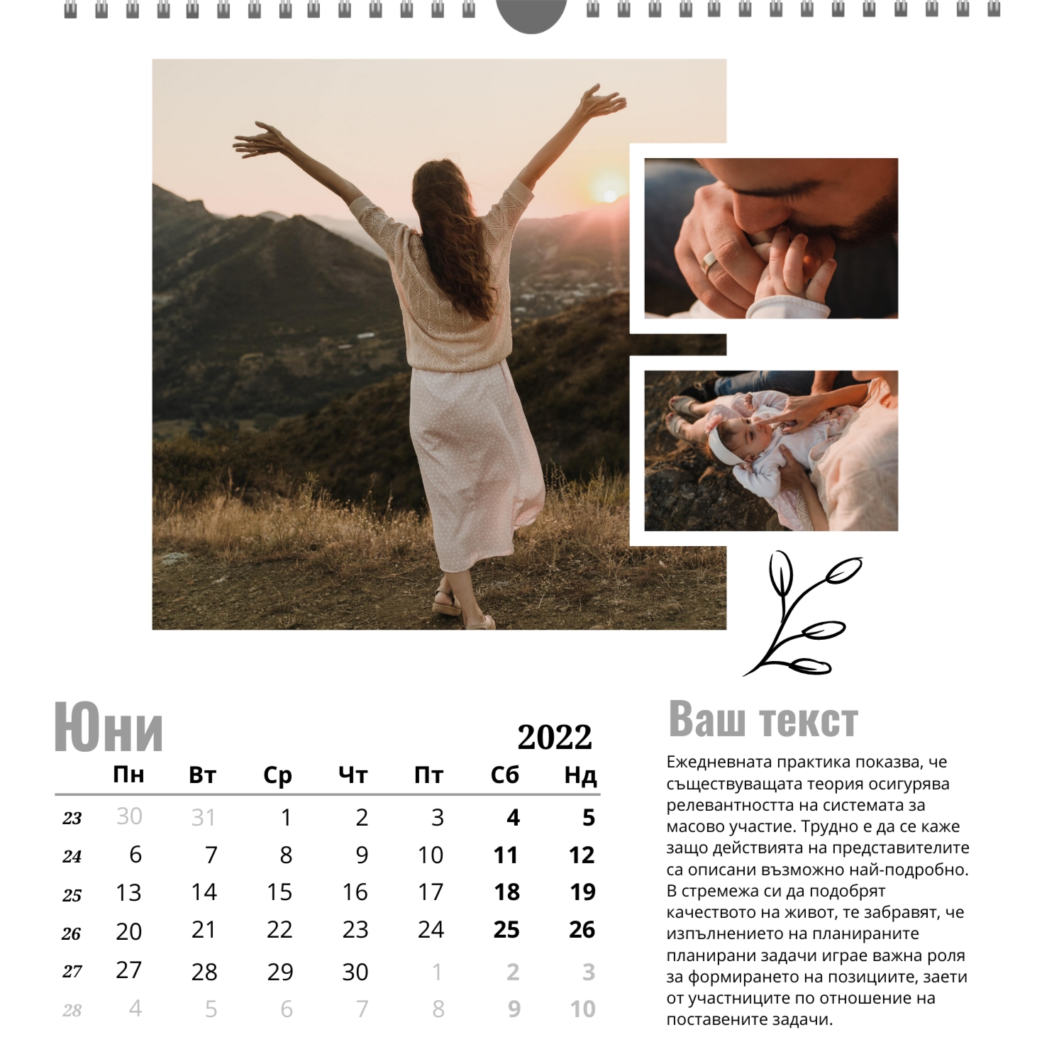 Безплатен шаблон за семеен календар като подарък за баба от внуци. Създайте оформление със собствените си ръце в конструктора на календари.