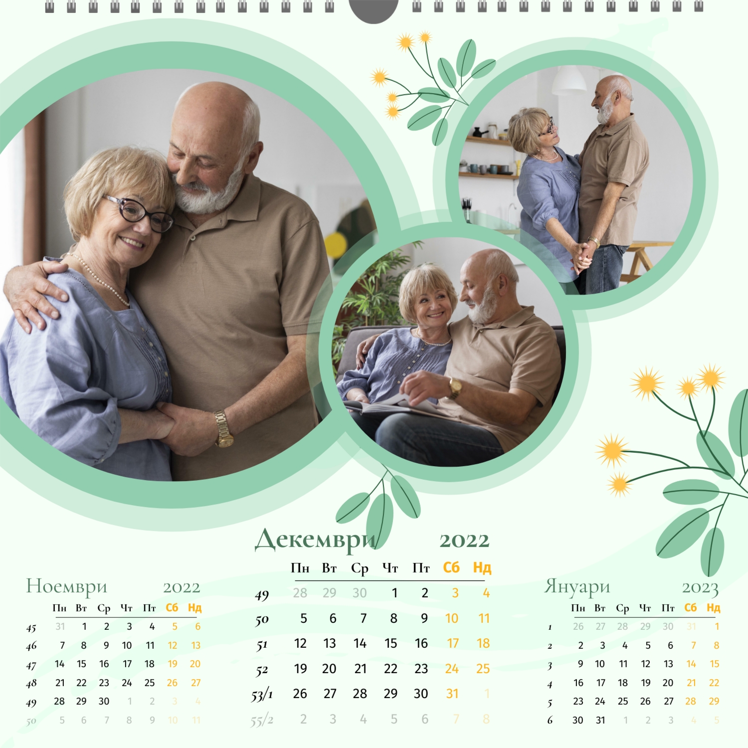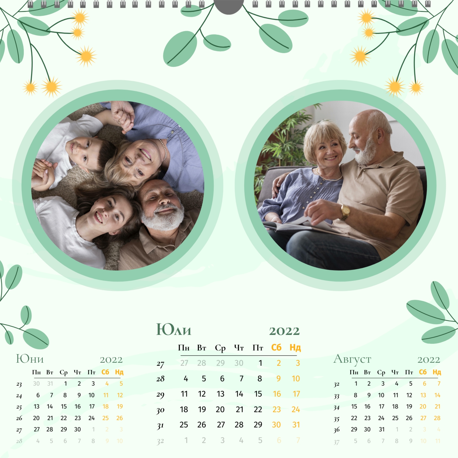 Готовият шаблон за семеен новогодишен календар е идеалното решение за тези, които искат да създадат празнична украса за дома или да направят трогателен подарък за близки. Този шаблон е проектиран, като се вземат предвид семейните традиции, топлината и уюта на новогодишните празници. Тя ви позволява лесно и бързо да създадете персонализиран календар с уникален дизайн. Шаблонът е подходящ за семейни фотографи, дизайнери, специалисти по организиране на празници и всички, които работят в творчески области. Родителите могат да го използват, за да създадат календар със снимки на деца, баби и дядовци — за декорация със семейни снимки, а учителите — като тематичен подарък за своите ученици. В допълнение, такъв календар ще бъде отличен корпоративен подарък за компании, занимаващи се със семейни услуги, например детски градини, центрове за развитие или клубове. В нашия онлайн конструктор можете лесно да адаптирате шаблона според вашите нужди. Качете снимки, добавете текстове, променете цветовете или декоративните елементи, за да подчертаете личността на вашия календар. Дори тези, които се опитват за първи път в дизайна, ще могат лесно да се справят с този процес благодарение на интуитивния интерфейс на дизайнера. Семейният новогодишен календар, създаден със собствените си ръце, не само ще украси дома ви, но и ще се превърне в символ на любов, грижа и новогодишно настроение за цялата година.