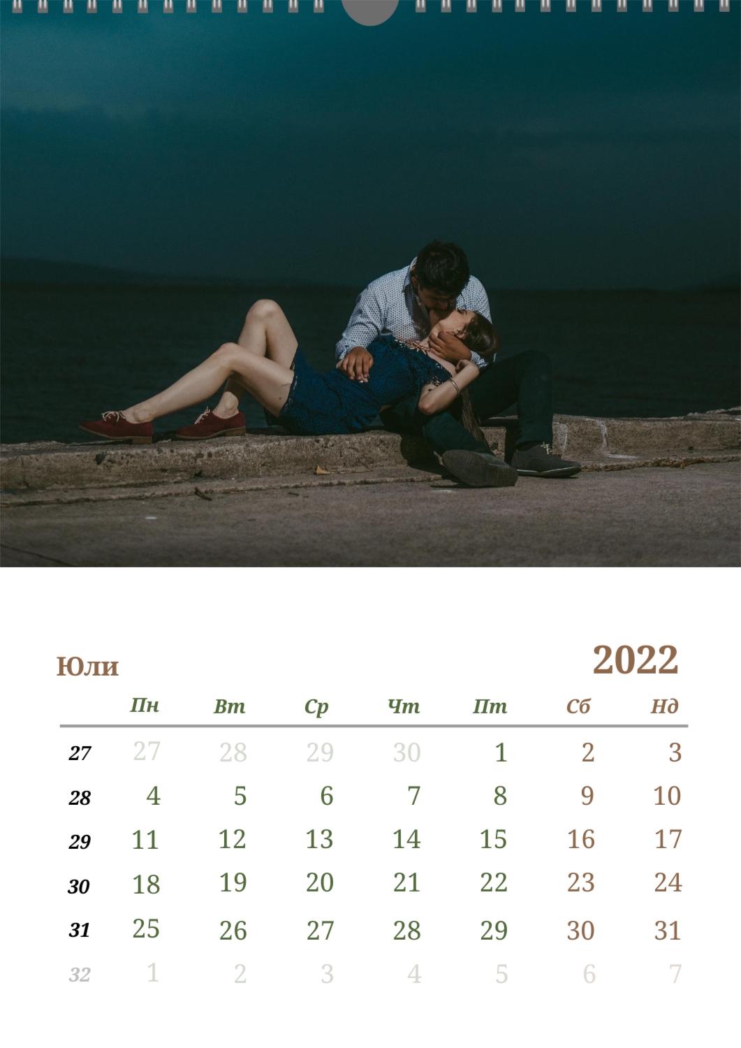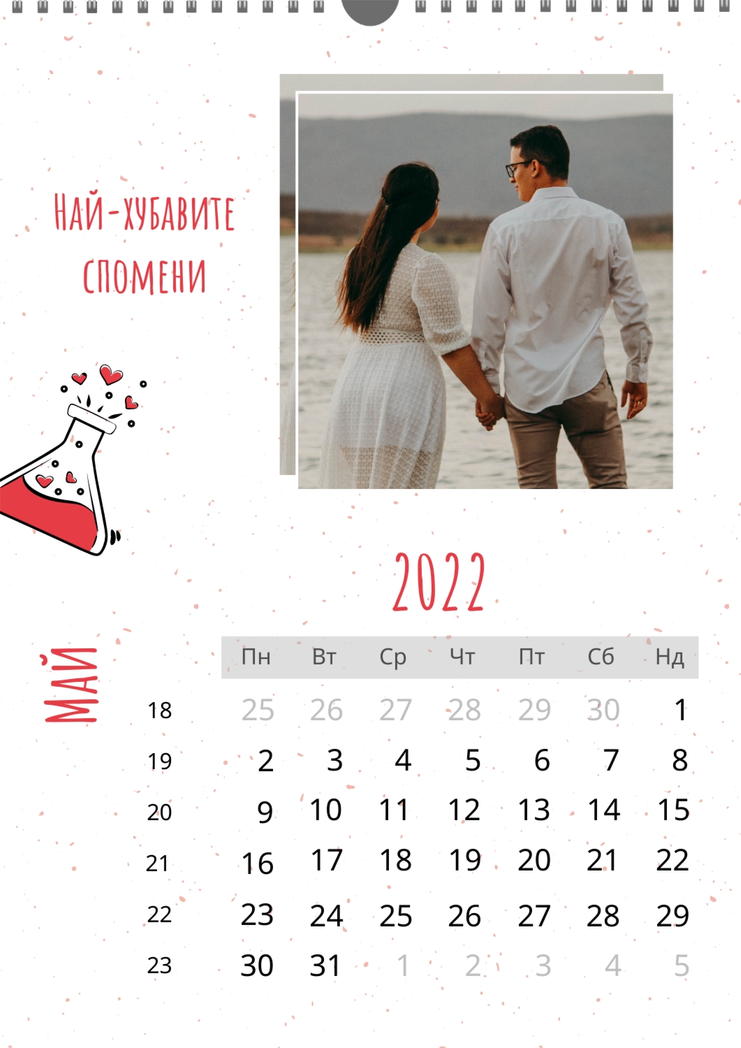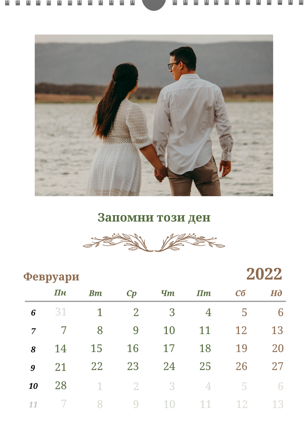 Шаблонът за календар" най — добри спомени " е идеалната основа за създаване на персонализиран стенен календар, който ще отразява най-значимите моменти от живота ви. Този шаблон е подходящ за всеки потребител, който иска да подчертае индивидуалността и да запази важни събития в стилен и функционален формат. Особено ще бъде полезно за фотографи, двойки, собственици на творчески студия или малки фирми, които искат да създадат уникален продукт за клиентите или да дадат на своите близки нещо специално. Основната характеристика на шаблона" най — добри спомени " е неговата гъвкавост. Можете лесно да адаптирате дизайна според вашите нужди с нашия удобен онлайн дизайнер. Редактирането ви позволява да замените снимки, да добавите текстови блокове с важни дати или вдъхновяващи цитати и да изберете цветова схема, която подчертава настроението ви. Дизайнерът предлага прост интерфейс, където буквално създавате уникален календар със собствените си ръце, добавяйки лични щрихи и експериментирайки с дизайнерски елементи. Този шаблон ще бъде чудесно решение за тези, които искат да съчетаят творчеството с практичността. Например собствениците на йога студия могат да вмъкнат снимки от своите класове, за да мотивират учениците, а фотографите да използват шаблон, за да представят работата си. Благодарение на възможността за безплатно редактиране, "Най-добрите спомени" се превръща не само в календар, но и в истинска история, декорирана в стилен и удобен формат.