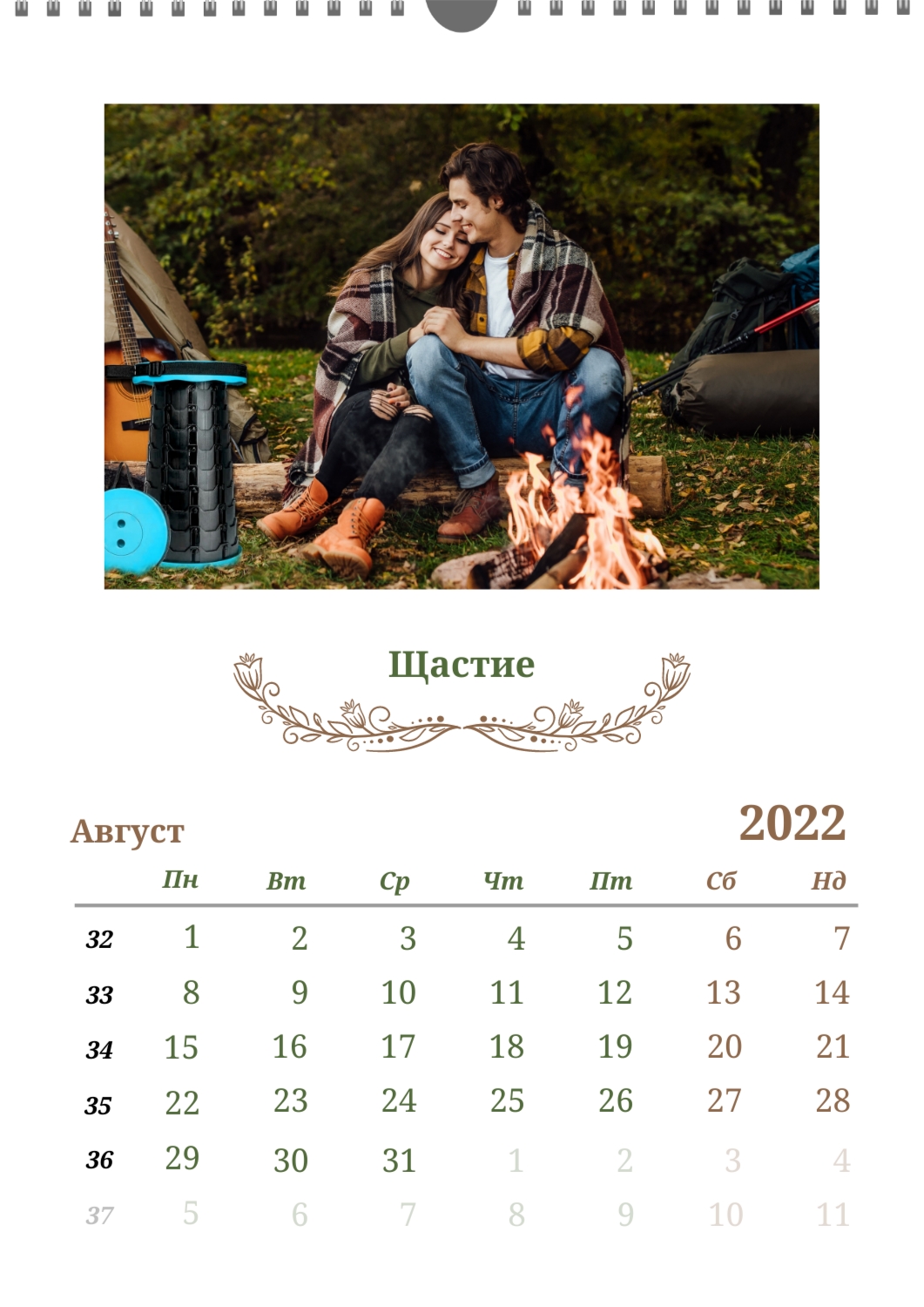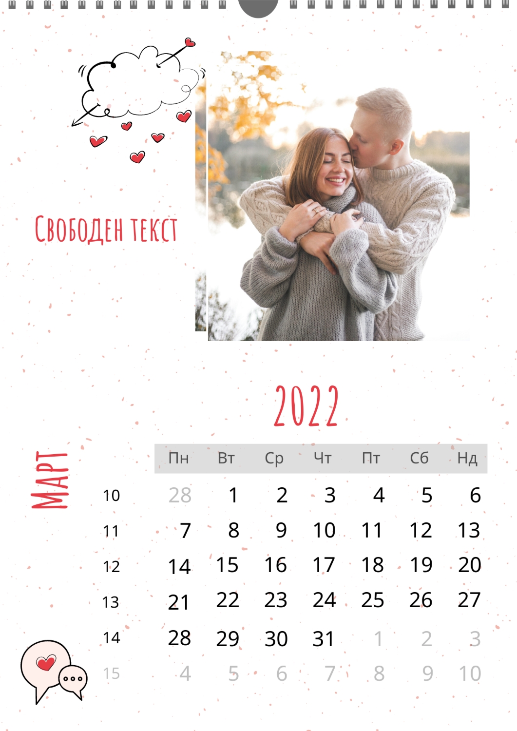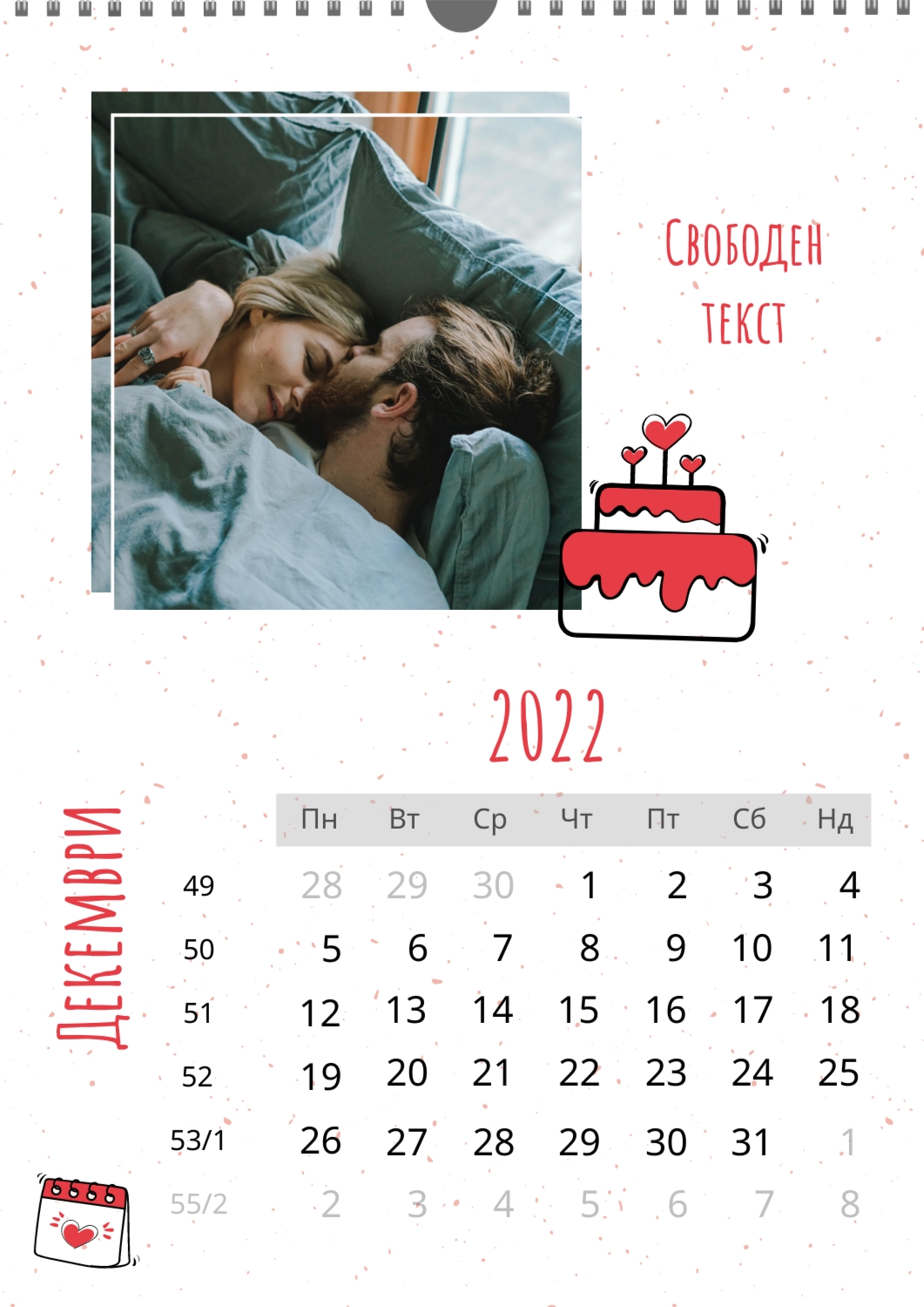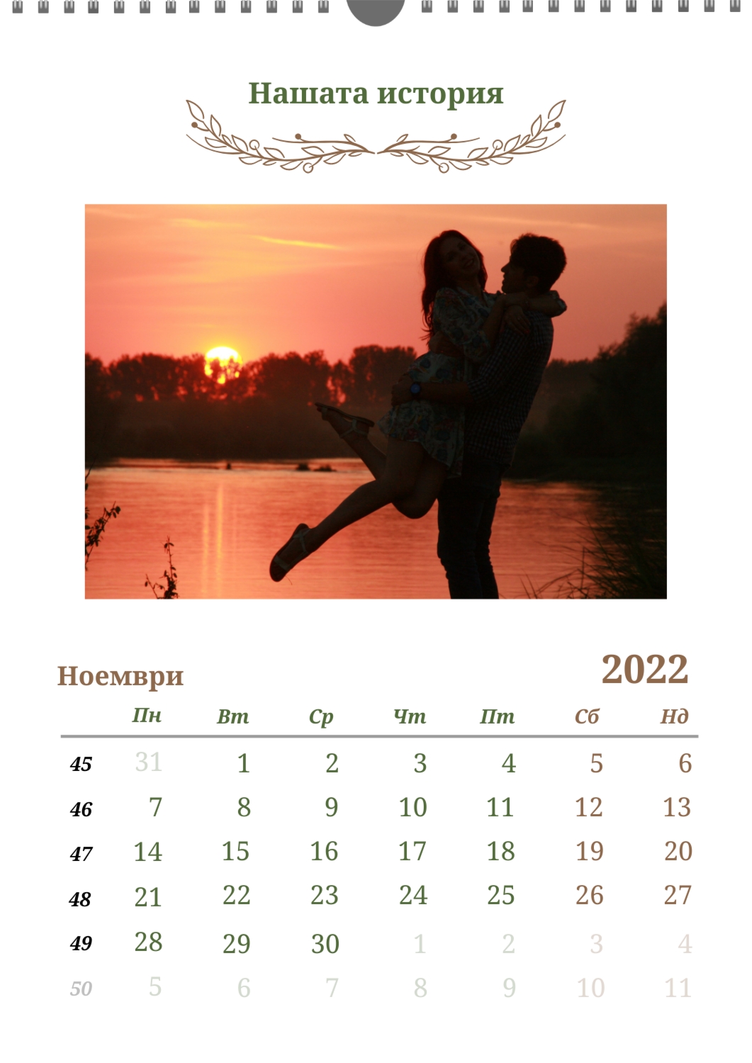 Шаблонът за календар" най — добри спомени " е идеалната основа за създаване на персонализиран стенен календар, който ще отразява най-значимите моменти от живота ви. Този шаблон е подходящ за всеки потребител, който иска да подчертае индивидуалността и да запази важни събития в стилен и функционален формат. Особено ще бъде полезно за фотографи, двойки, собственици на творчески студия или малки фирми, които искат да създадат уникален продукт за клиентите или да дадат на своите близки нещо специално. Основната характеристика на шаблона" най — добри спомени " е неговата гъвкавост. Можете лесно да адаптирате дизайна според вашите нужди с нашия удобен онлайн дизайнер. Редактирането ви позволява да замените снимки, да добавите текстови блокове с важни дати или вдъхновяващи цитати и да изберете цветова схема, която подчертава настроението ви. Дизайнерът предлага прост интерфейс, където буквално създавате уникален календар със собствените си ръце, добавяйки лични щрихи и експериментирайки с дизайнерски елементи. Този шаблон ще бъде чудесно решение за тези, които искат да съчетаят творчеството с практичността. Например собствениците на йога студия могат да вмъкнат снимки от своите класове, за да мотивират учениците, а фотографите да използват шаблон, за да представят работата си. Благодарение на възможността за безплатно редактиране, "Най-добрите спомени" се превръща не само в календар, но и в истинска история, декорирана в стилен и удобен формат.