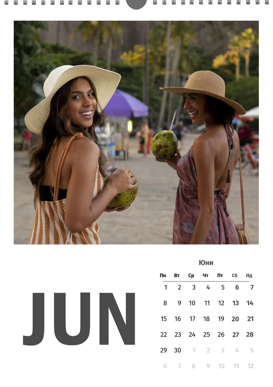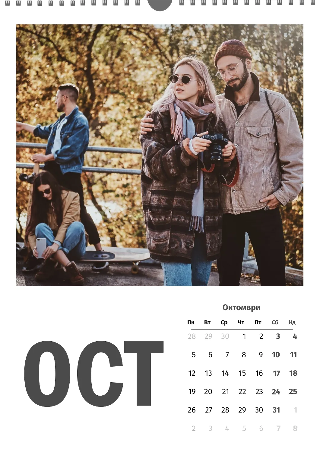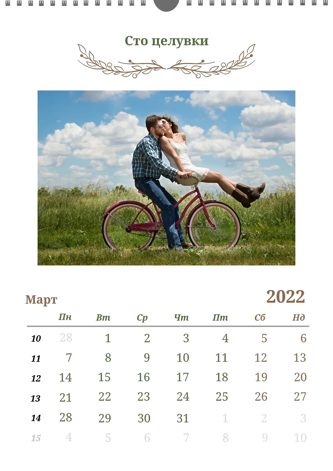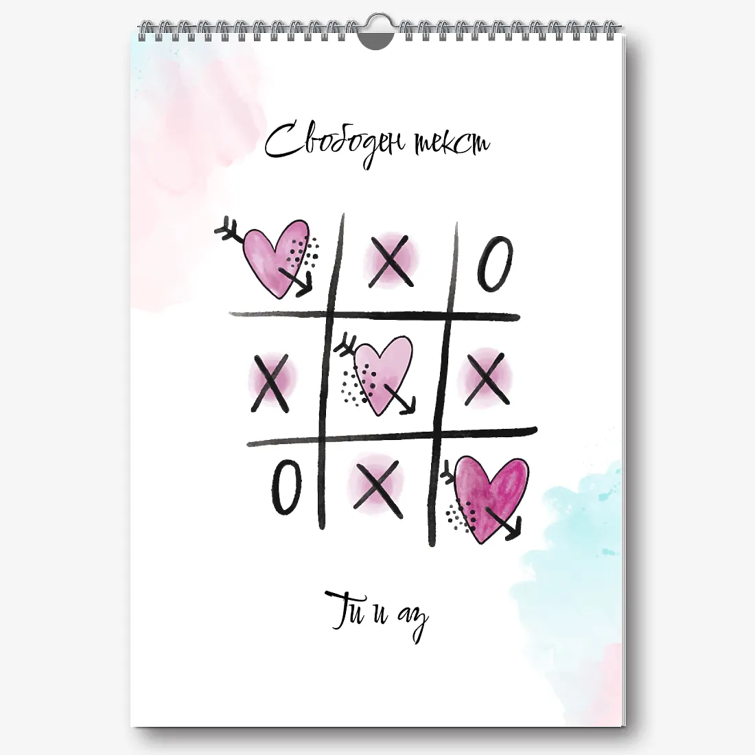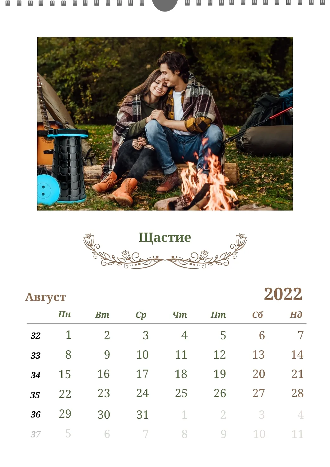 Готовият шаблон за календар за влюбена двойка е идеалният начин да създадете уникален и трогателен подарък. Той осигурява романтичен дизайн, който подчертава специалната връзка между партньорите. Такъв календар може да се превърне не само в приятен сувенир, но и в стилен елемент от интериора. Този шаблон е чудесен за фотографи, специализирани в 0, тъй като може да се използва за красиво проектиране на професионални снимки. Също така ще бъде полезно за дизайнери и блогъри, работещи в романтични теми, а също така е идеално за собствениците на сватбени агенции, които искат да предложат на клиентите необичаен подарък. Основното предимство на този календар е възможността за пълна персонализация в нашия онлайн конструктор. Можете да качите вашите снимки, да промените фона, да добавите запомнящи се дати, романтични надписи или дори забавни коментари към всеки месец. Благодарение на простия и интуитивен интерфейс редактирането ще отнеме минимум време, а резултатът ще зарадва с индивидуалност и високо качество. Създавайки такъв календар със собствените си ръце, вие влагате топлина и грижа в него, което го прави наистина специален.