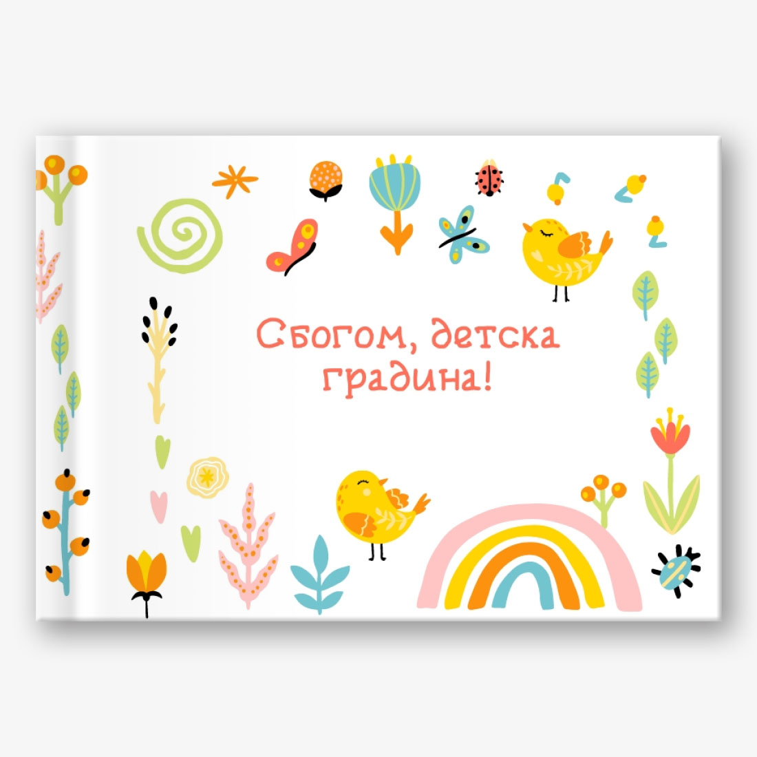 Готов шаблон за дипломиране на фотокнига с твърди корици за детска градина с ярки цветове е идеален за създаване на запомнящ се албум за първите години от живота на детето. Цветни фонове, забавни дизайнерски елементи и деликатни детайли предават атмосферата на детството, запазвайки най-трогателните моменти на сбогуване с детската градина. Основното предимство е гъвкавостта на редактирането. В онлайн конструктора можете да променяте фона, да добавяте или изтривате страници, да редактирате текстове и заглавия. Възможността да вмъкнете свои собствени снимки и декоративни елементи ви позволява да направите хоризонталната фотокнига с твърди корици наистина уникална. Родителите могат да персонализират албума за детето си, болногледачите могат да създадат красива запомняща се книга за цялата група, а фотографите могат да предложат професионално проектиран продукт на клиентите. Този шаблон е подходящ не само за завършилите детска градина, но и за преподаватели, които искат да съберат най-добрите спомени от своята група.