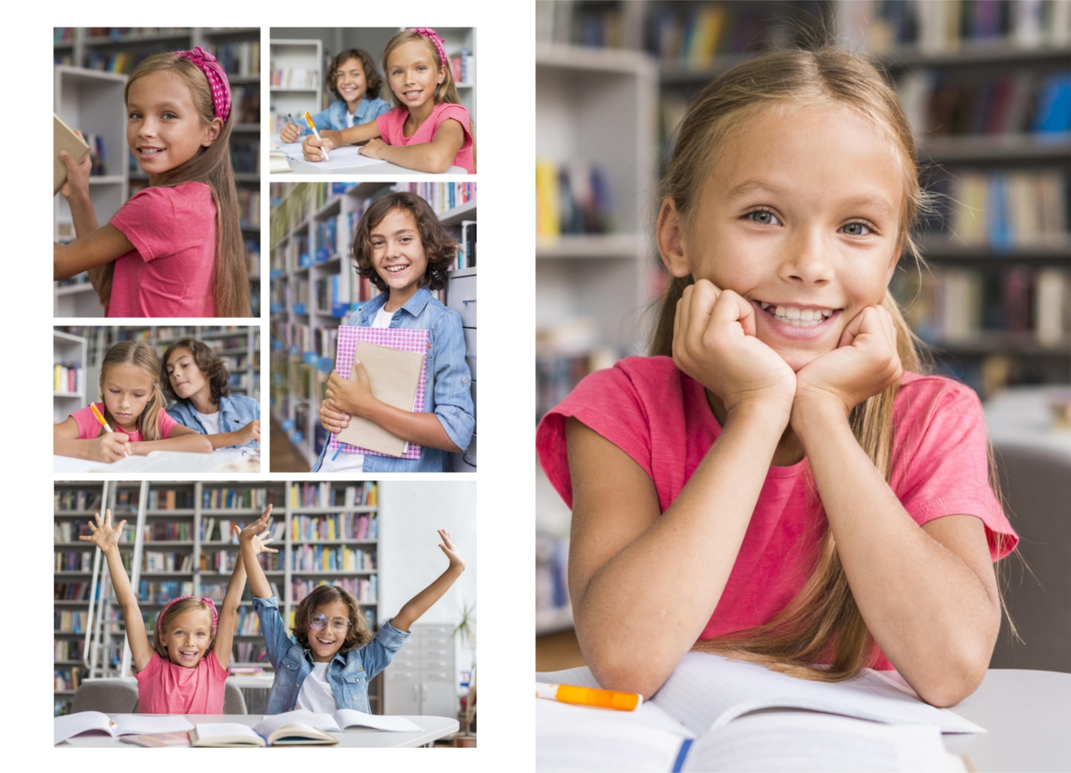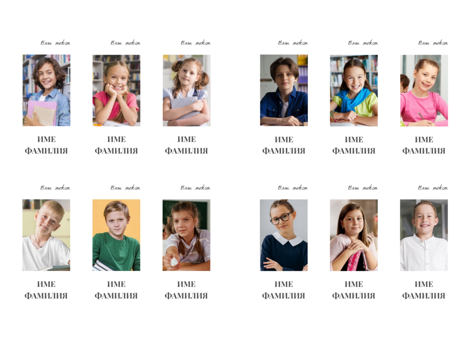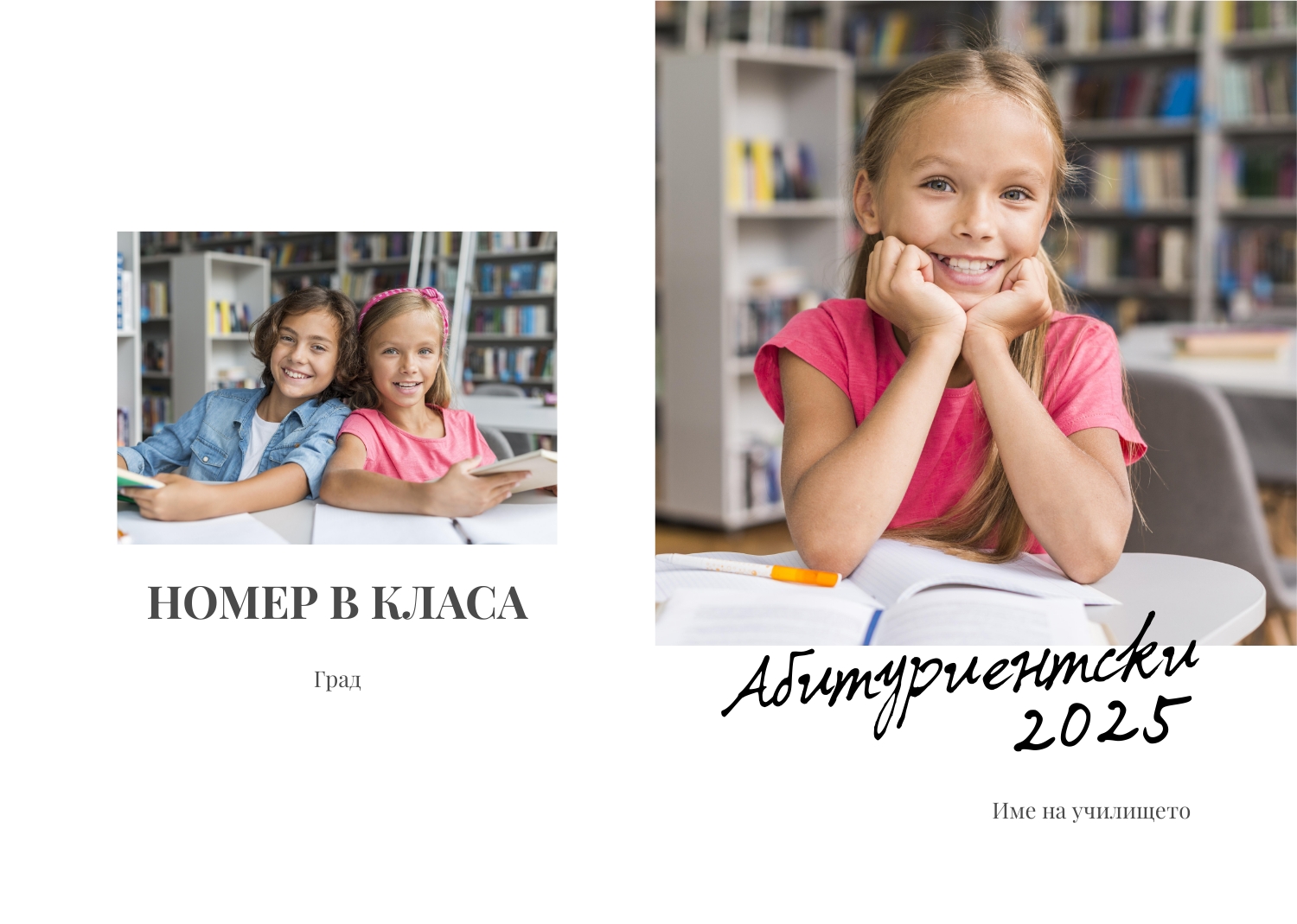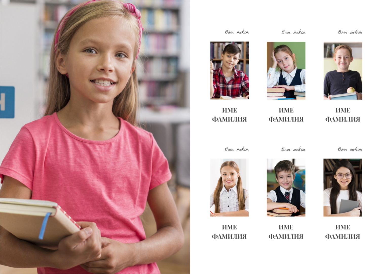 Безплатен шаблон за класическа фотокнига на възпитаници на гимназията. Създайте оформление със собствените си ръце в онлайн конструктора на фотокниги.