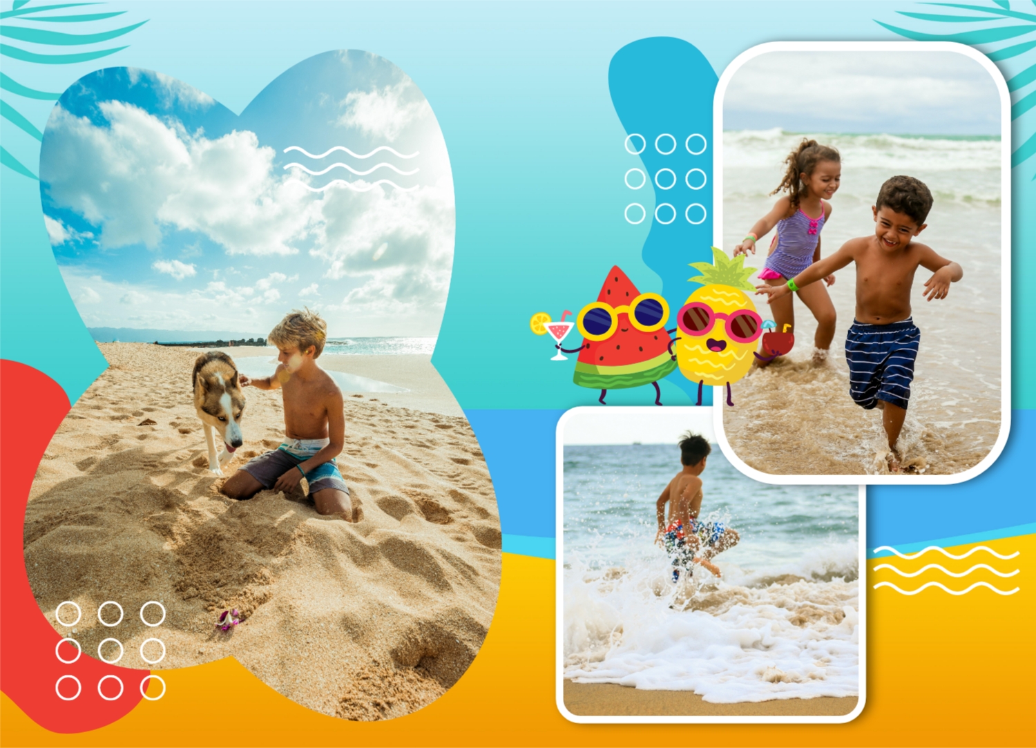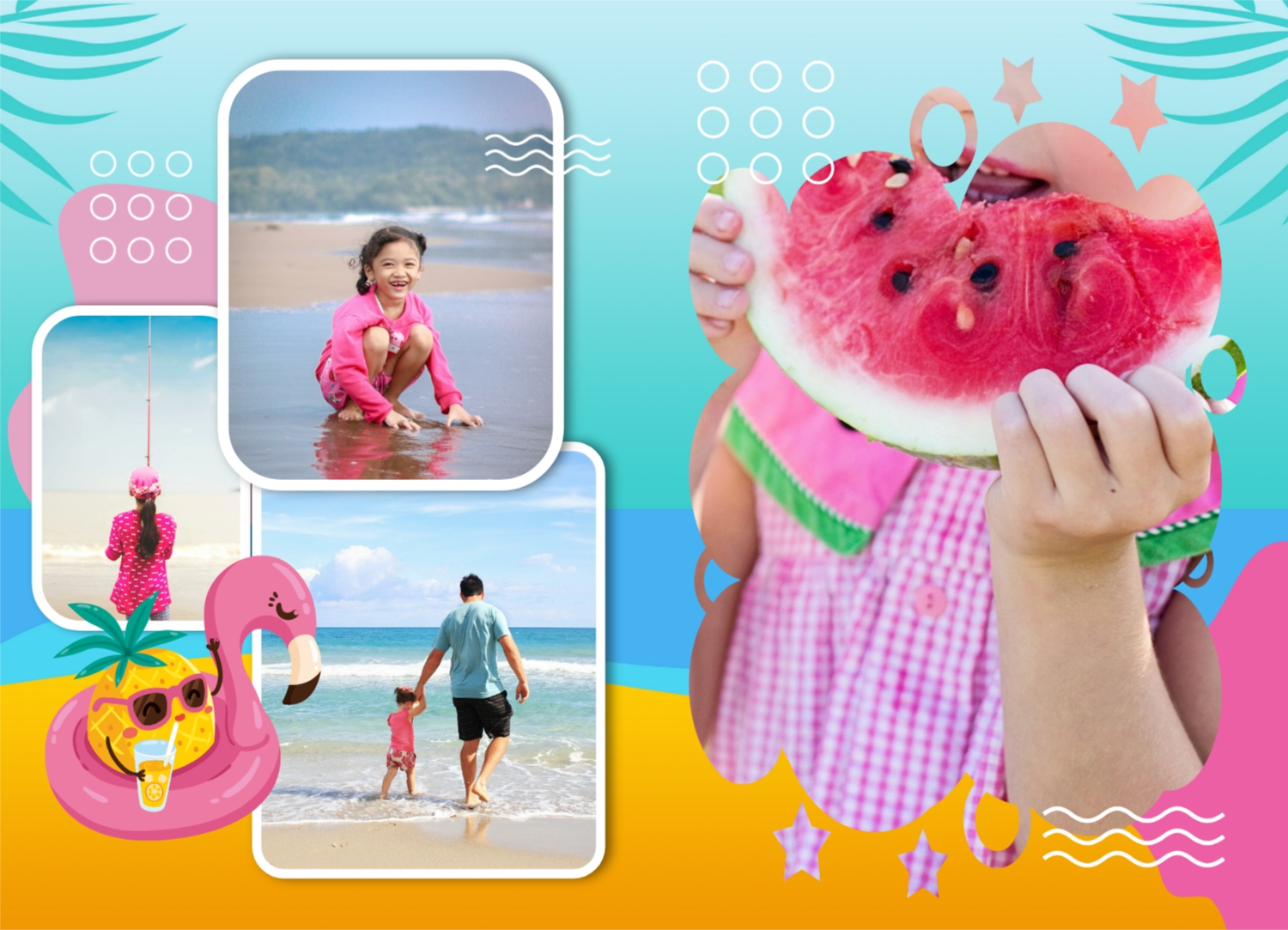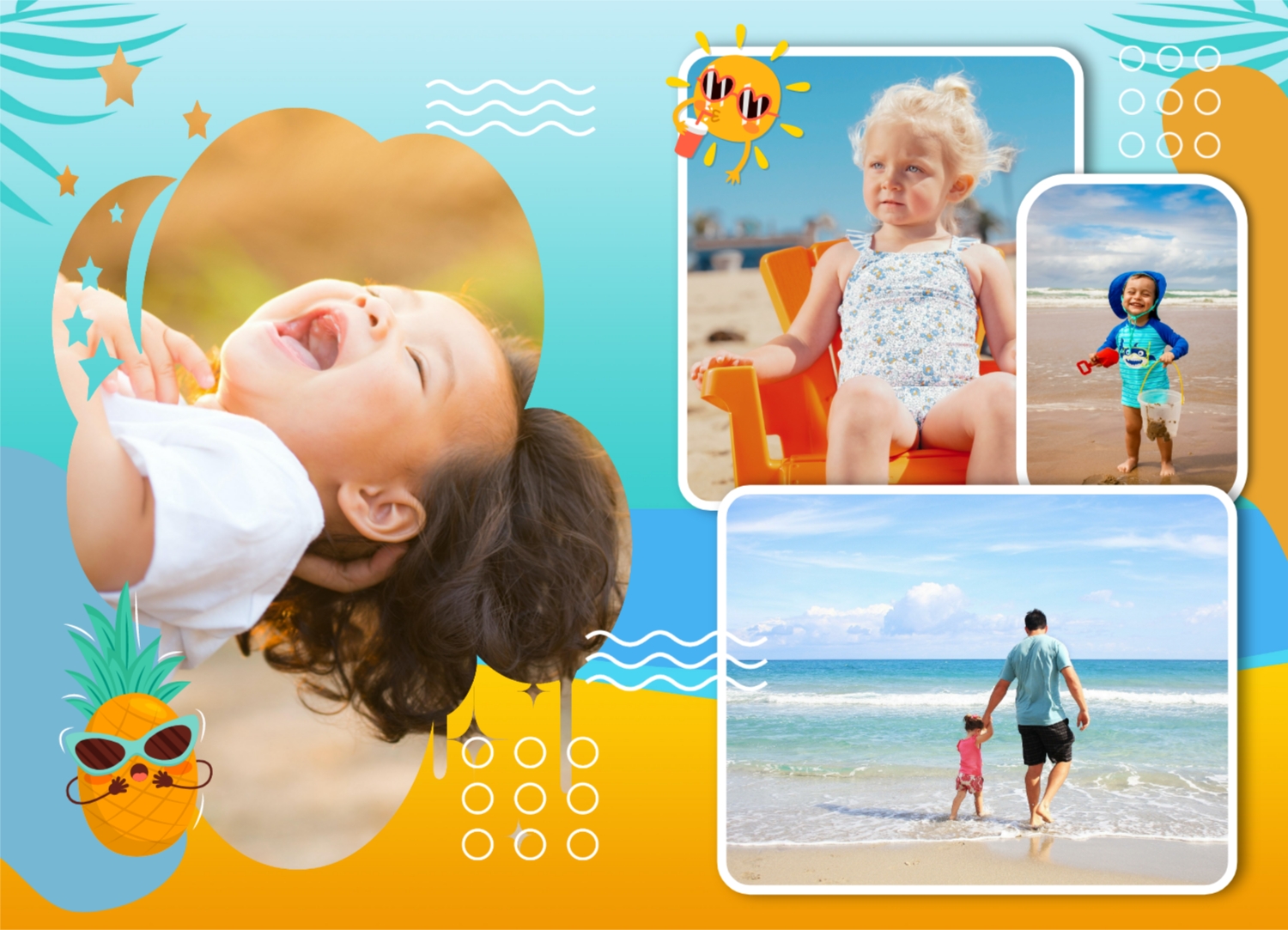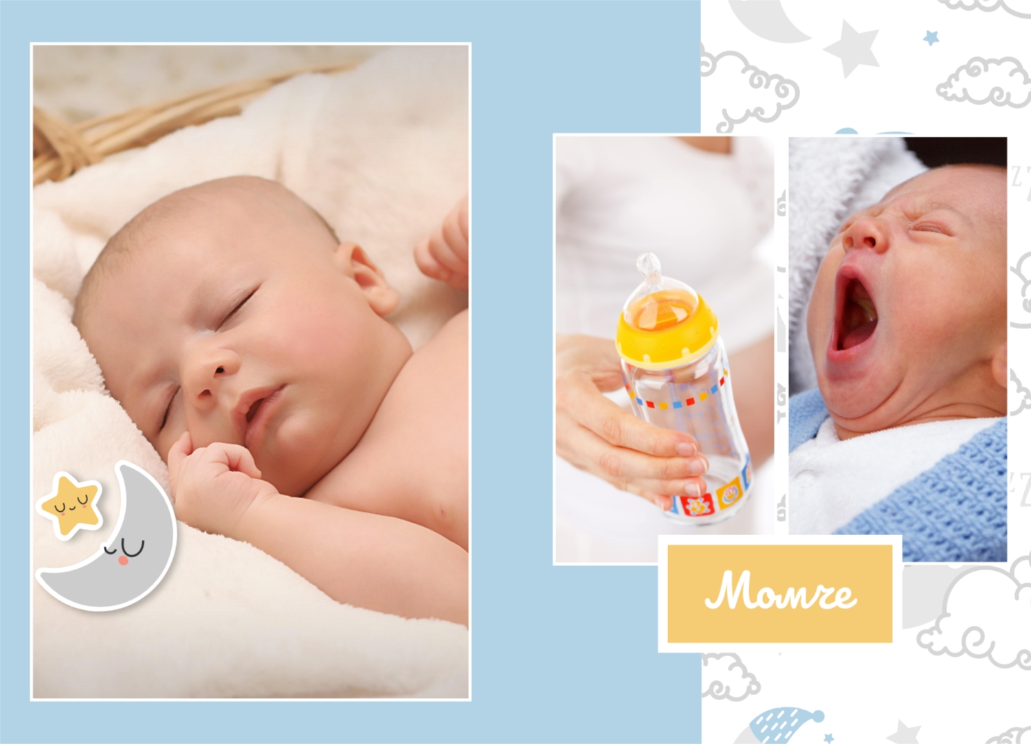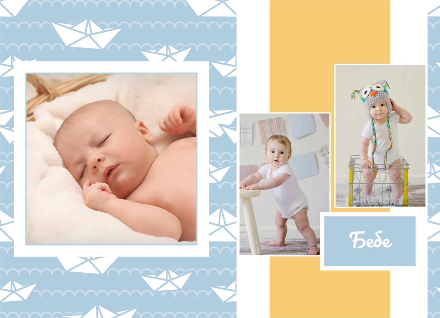 Готовият шаблон за вертикална фотокнига с твърди корици за новородени снимки е трогателно и стилно решение за създаване на първия албум на бебето. Дизайнът е направен в нежни пастелни цветове, със сладки илюстрации и гладки линии, които перфектно подчертават атмосферата на детството, уюта и грижите. Този шаблон е подходящ не само за родители, които искат да запазят запомнящите се моменти от първите дни от живота на детето, но и за професионални фотографи, специализирани в заснемането на новородени, както и за дизайнери, които създават персонализирани бебешки албуми. В онлайн конструктора този шаблон е лесен за редактиране, така че всяка фотокнига да стане наистина уникална. Можете да промените фона, да добавите нови декоративни елементи, рамки и надписи, като изберете шрифтове и цветове, които най-добре отговарят на стила на снимките. Всички полета за моментни снимки се преместват и мащабират лесно, а текстовите блокове могат да се редактират, като се записват важни дати, докосващи надписи или забавни коментари.