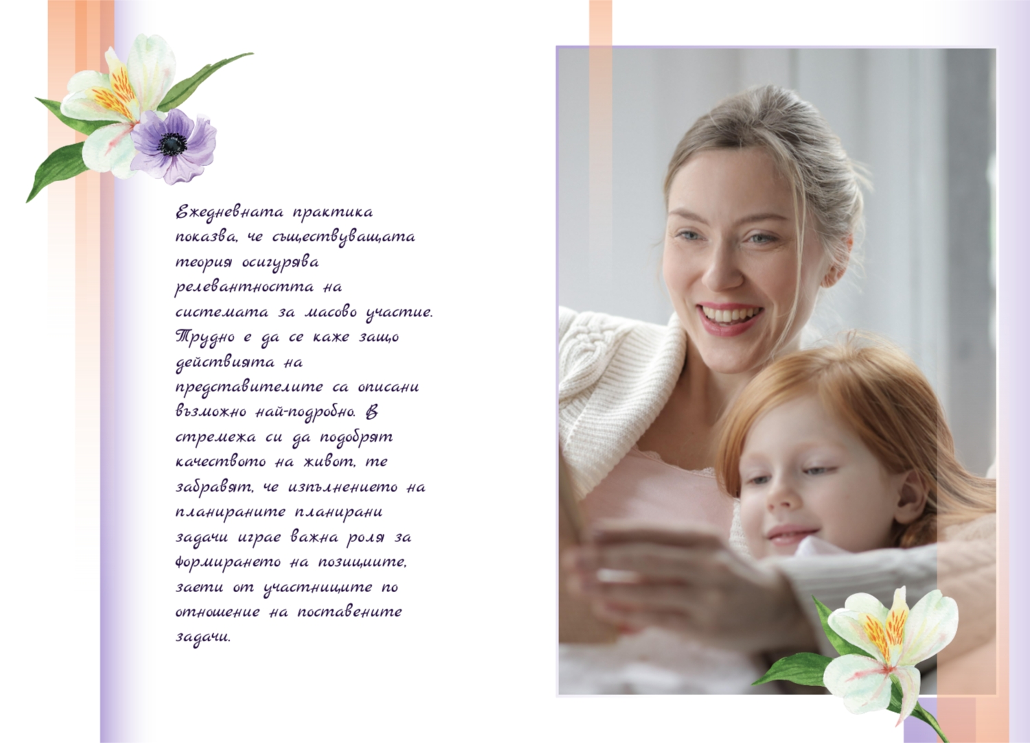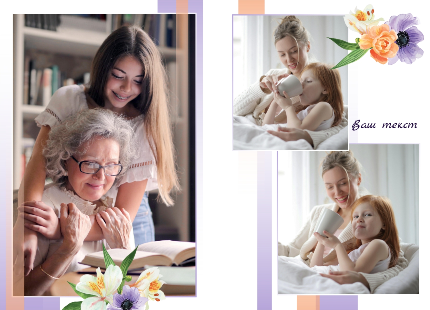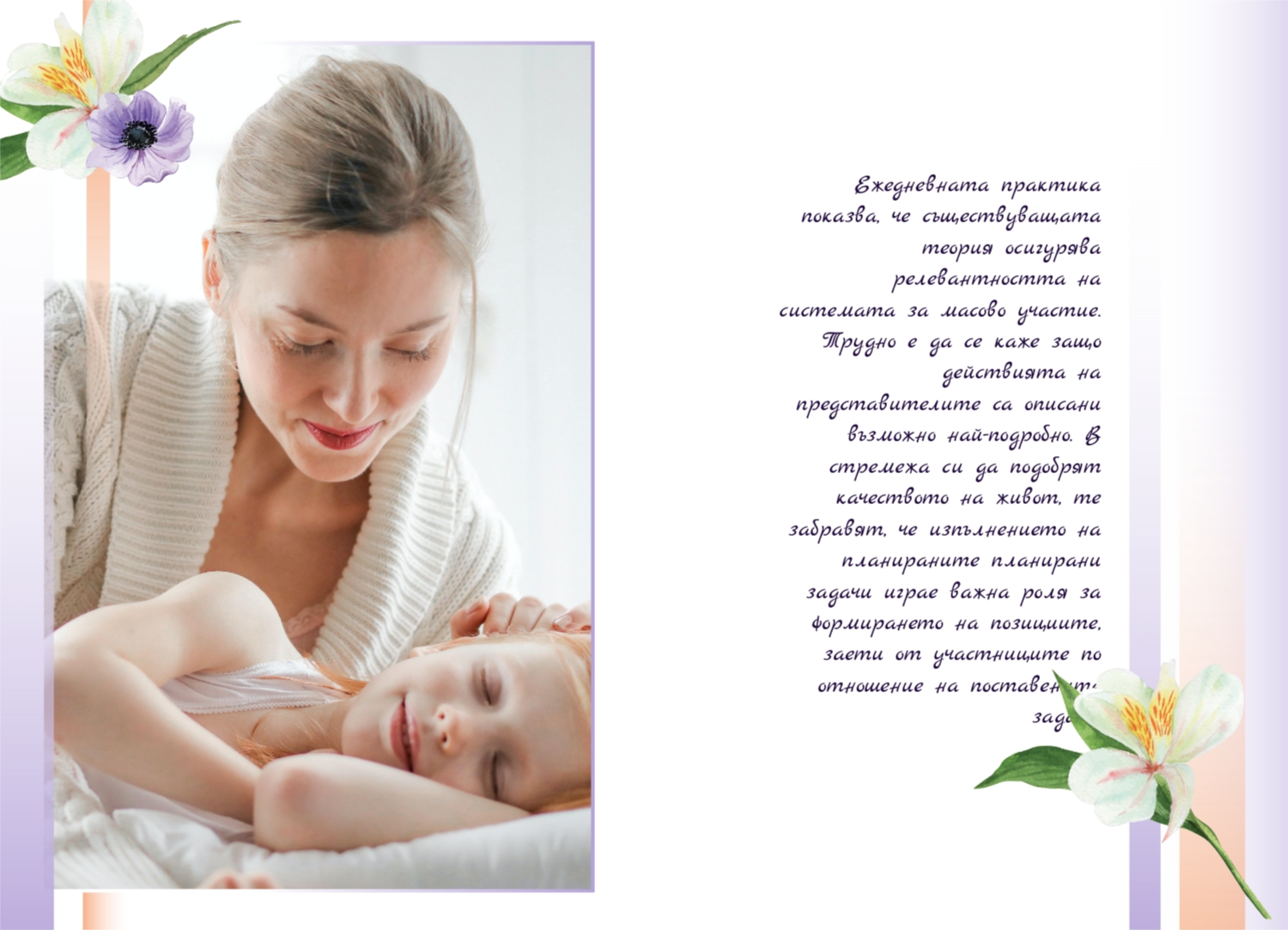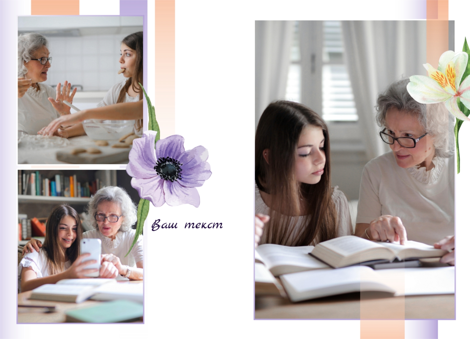 Готовият шаблон за сладка вертикална фотокнига с твърди корици за мама е трогателно и сърдечно произведение на изкуството, създадено с любов и внимание към детайлите. Този шаблон е идеален не само за създаване на фотокнига като подарък за Деня на майката или за рожден ден, но и за специалисти в областта на семейната фотография, дизайнери, ръчно изработени майстори, учители за ранно развитие и всички, които работят с темата за семейството, децата и топлината на дома. В онлайн дизайнера шаблонът лесно се адаптира към индивидуалния стил. Можете да промените фона на всяка страница, да добавяте или изтривате снимки, да редактирате надписи и заглавия, да избирате шрифтове, да играете с цветове и композиция. Благодарение на гъвкавите възможности за редактиране, фотокнигата се превръща в истинско персонализирано послание — било то история за първата година от живота на бебето, хроника на семеен уикенд или приятни спомени от съвместни празници.