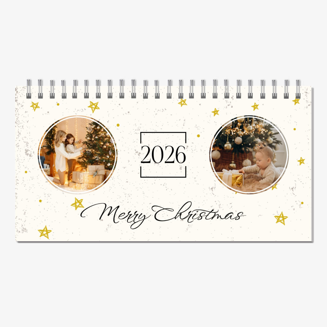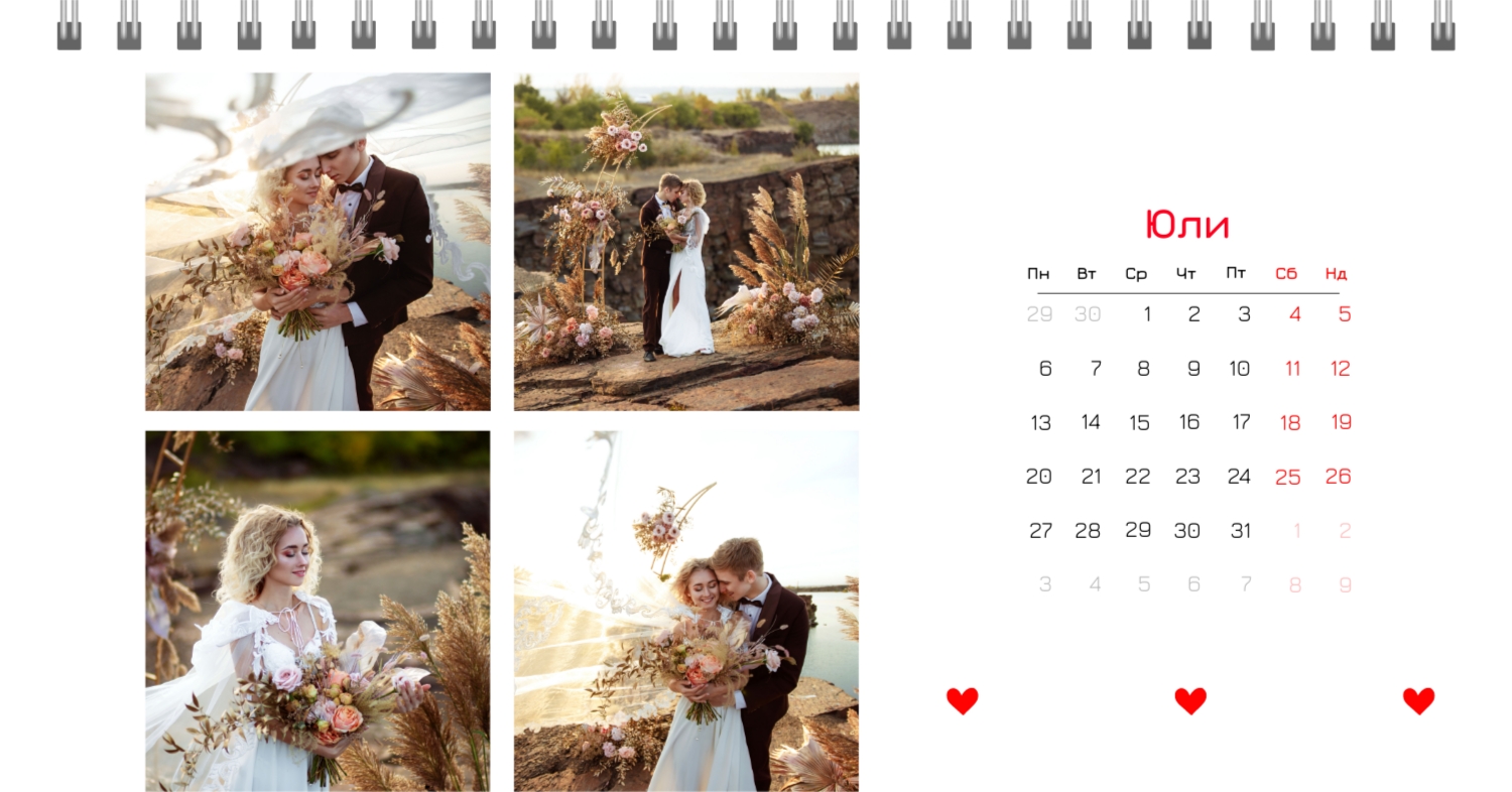 Готовият шаблон за календар на работния плот за любимата ви майка е трогателна и красива основа за създаване на персонализиран подарък, който е изпълнен с топлина и грижа. Дизайнът е направен в меки, нежни цветове, с елементи от цветове, уютна графика, която веднага се свързва с домашния уют и вниманието на майка ми. Такъв календар е подходящ не само за лична употреба, но и ще бъде отлично решение за специалисти в областта на семейната фотография, ръчно изработени майстори, цветари, учители от началното училище и възпитатели — всички, които искат да изразят благодарност и любов под формата на полезен, красив подарък. В онлайн дизайнера шаблонът лесно се превръща в уникален продукт. Можете да вмъкнете семейни снимки, да изберете любимите си моменти от живота, да добавите надписи с топли думи, да промените цветовете и шрифтовете според индивидуалните предпочитания. Всеки месец можете да проектирате във вашия стил, като вмъкнете снимки или желания, свързани с определено време на годината или важни семейни дати. Добавянето на собствени празници и бележки директно към календарната мрежа също е на разположение.