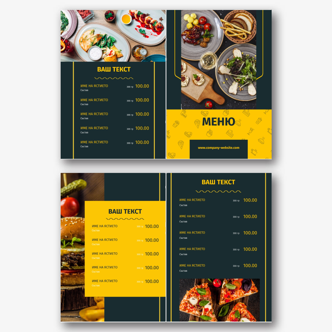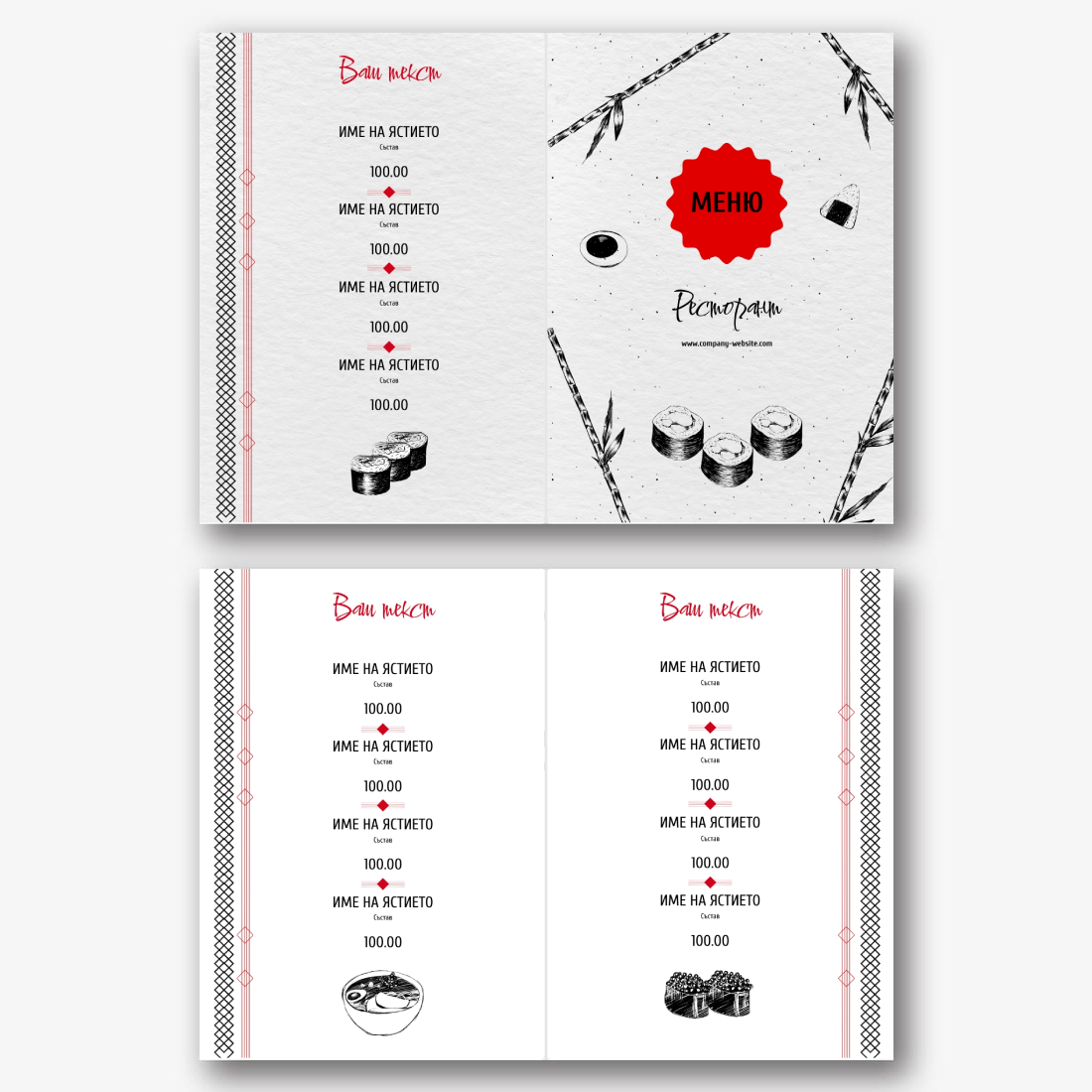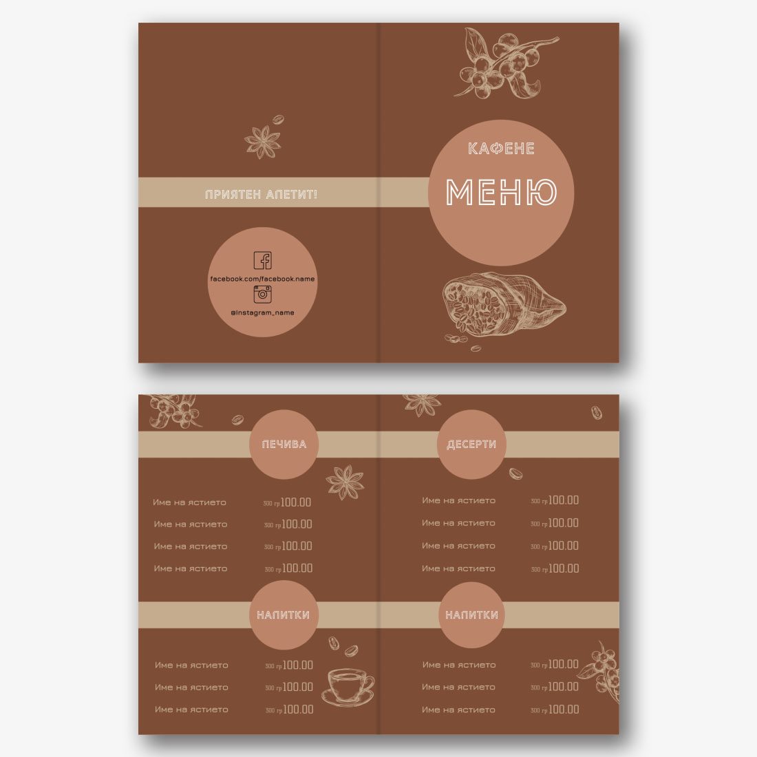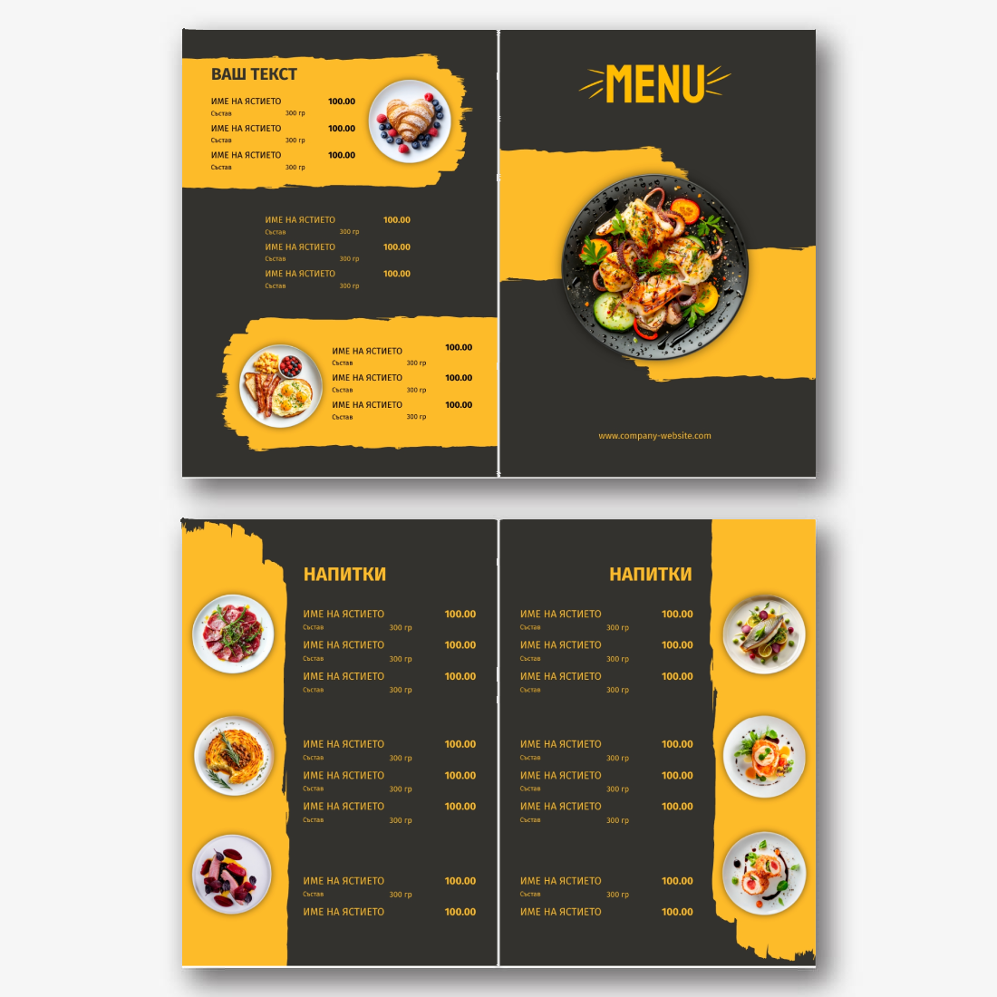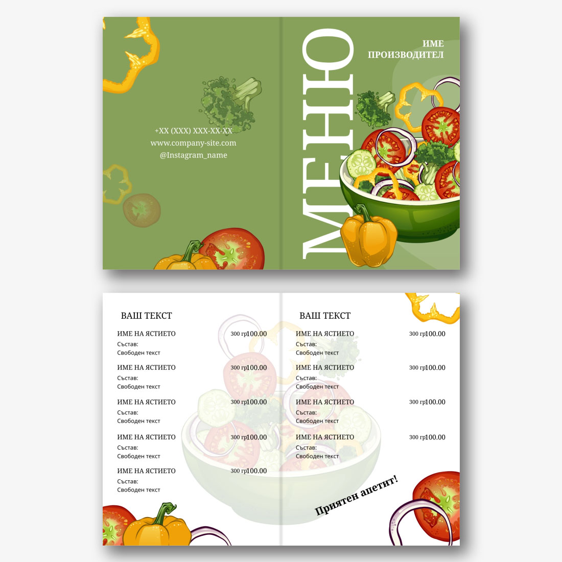 Готовият шаблон за основно меню-брошура за ресторант е удобна и стилна основа за създаване на собствен дизайн на марката. Дизайнът на шаблона е обмислен до най-малкия детайл: кокетна структура, хармонична комбинация от шрифтове и цветове, визуални акценти, които подчертават секциите от менюто на брошурата. Основното предимство на шаблона е възможността за гъвкаво редактиране в онлайн конструктора. Можете самостоятелно да замените имената на ястията, описанията, цените, шрифтовете, както и да качите логото на заведението или да промените цветовата схема, за да съответства на корпоративната идентичност. Всеки елемент лесно се премества, мащабира и редактира директно в браузъра, без да е необходимо да инсталирате допълнителен софтуер. Ако вашето заведение често актуализира асортимента си или има сезонни промоции, можете бързо да направите промени и да запазите няколко опции от менюто за различни периоди. Създаването на меню със собствените си ръце в онлайн конструктор е начин да подчертаете уникалността на институцията, да се откроите от конкурентите и да направите впечатление на гостите още преди да сервирате първото ястие.