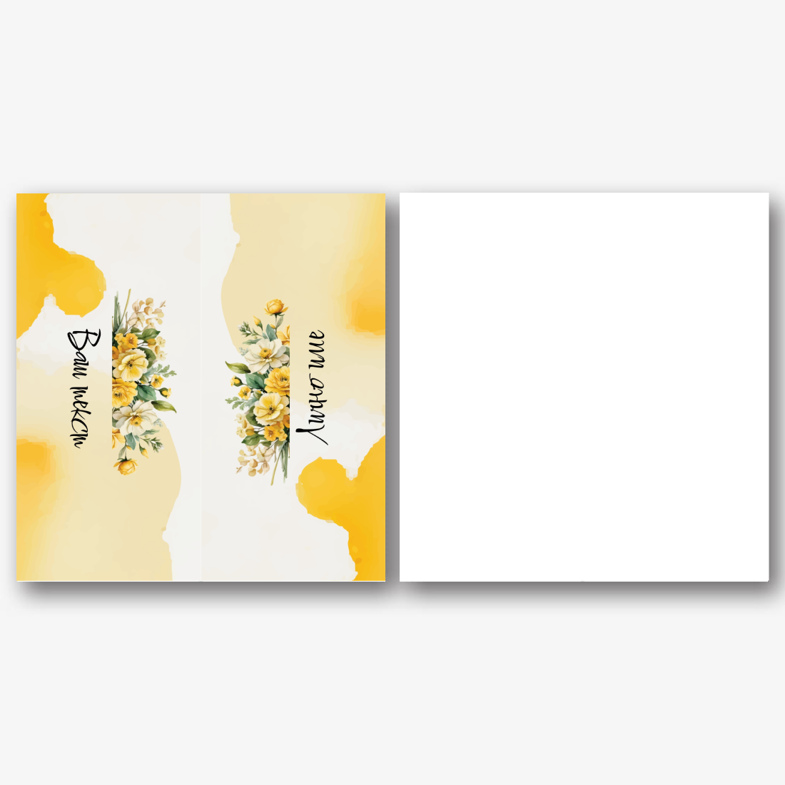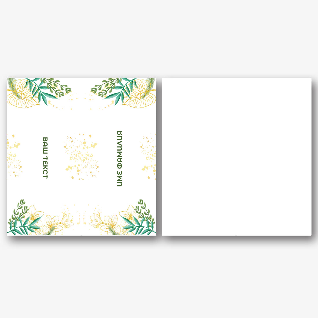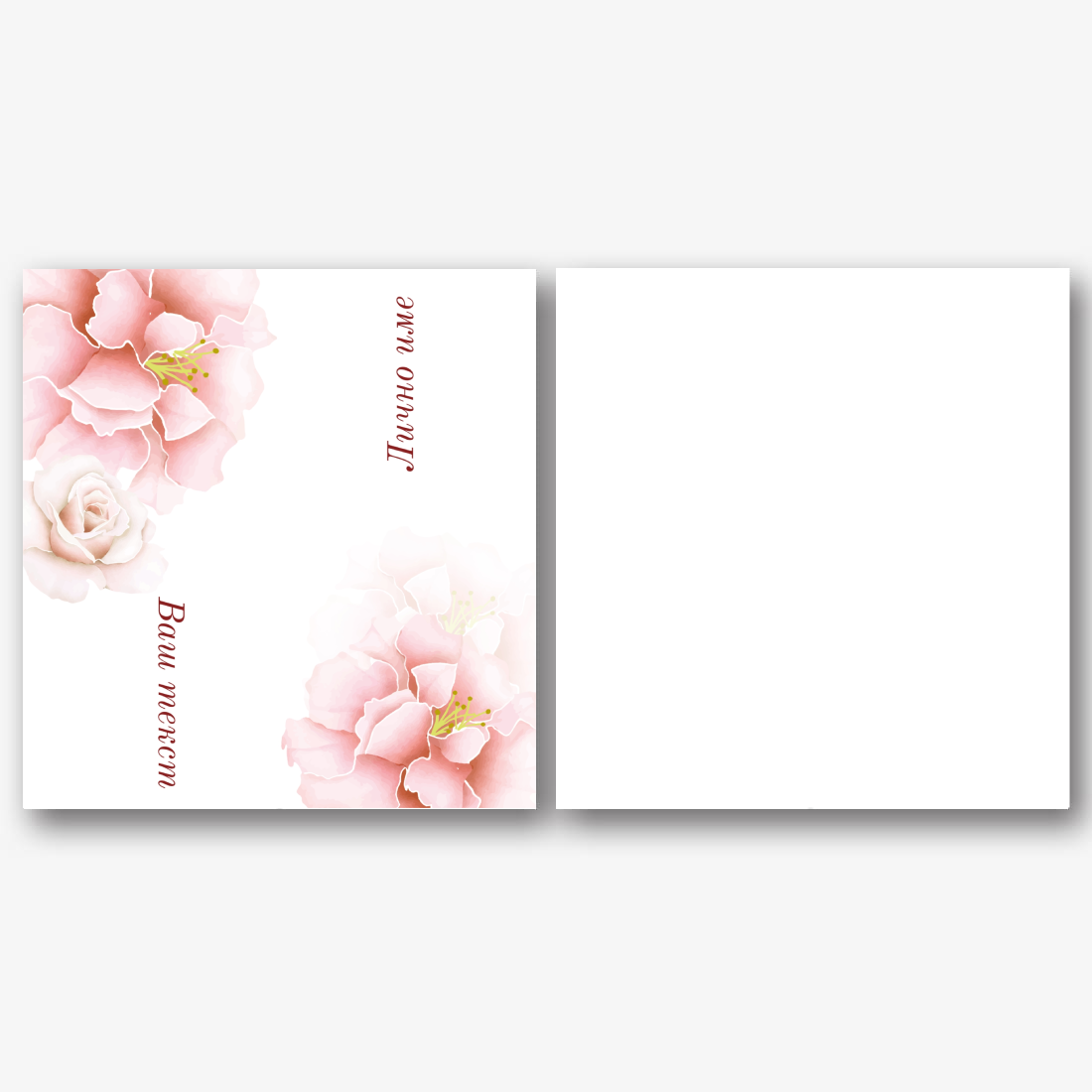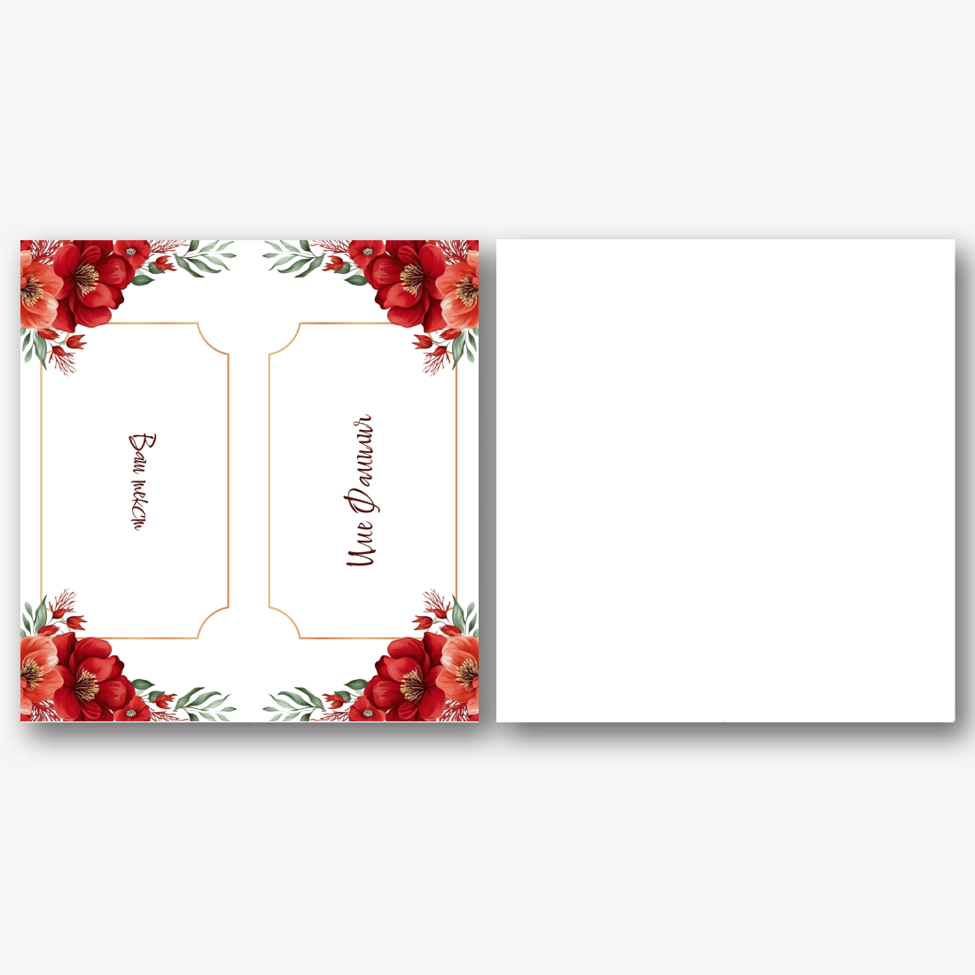 Готов шаблон за персонализирана картичка с гънка с деликатен дизайн и венчелистчета е изящно решение за декориране на сватбено тържество. Елегантните нюанси, меките линии и изисканите флорални детайли създават атмосфера на романтика и празник. Тази пощенска картичка е идеална за декориране на местата за гости на сватбата, както и за събития в областта на индустрията, сватбени агенции, цветари, декоратори и фотографи, които искат да подчертаят своя професионализъм и чувство за стил. В онлайн конструктора този модел може лесно да бъде адаптиран към конкретно събитие или концепция. Можете да замените името, шрифта, цвета на текста и дори да добавите допълнителни елементи — като дата на сватбата, монограм на младоженците или лого на студиото. Предлага се и опция за промяна на цветовата схема и нюанса на венчелистчетата, така че картата да се съчетава перфектно с цялостната палитра на празника. Благодарение на интуитивния интерфейс на онлайн конструктора, процесът на редактиране се превръща в творческо удоволствие. Дори и без опит в дизайна, можете да създадете своя собствена уникална персонализирана картичка с гънка, която ще изглежда хармонично на сватбените маси и ще подчертае вниманието към детайлите. Такъв шаблон е чудесна основа за изразяване на нежността, изтънчеността и индивидуалния стил на вашия празник.
