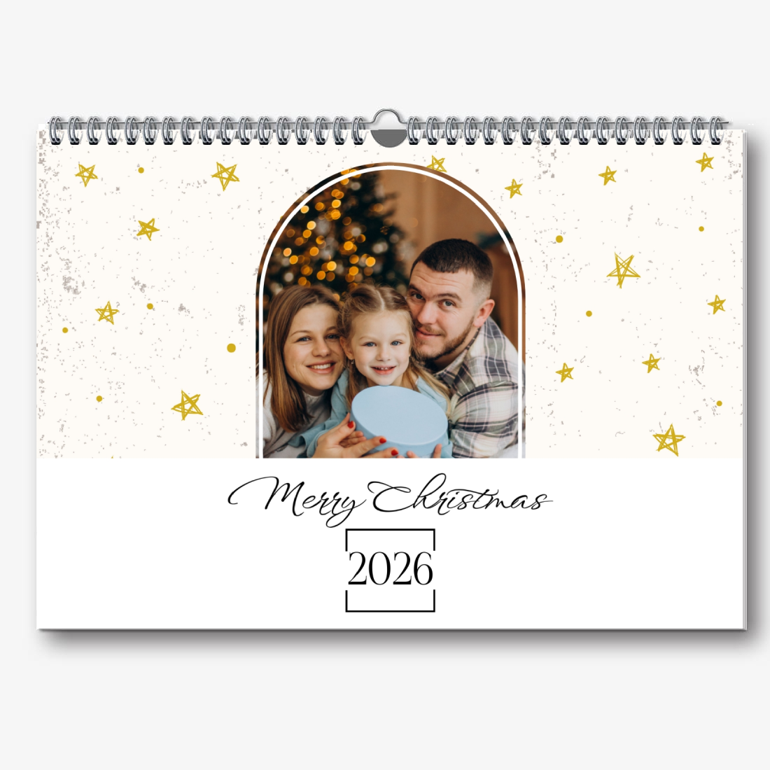 Календарът" нашето семейство " със сватбени снимки е готов шаблон, който е идеален за създаване на уникален и запомнящ се семеен календар. Неговият топъл и романтичен стил го прави идеален за двойки, които искат да запазят спомени от сватбата, или за тези, които искат да дадат на близките си нещо специално. Хоризонтален календар, монтиран на стена като този, може да бъде чудесен подарък за родители, роднини или дори приятели, които са били част от вашето важно събитие. Можете да замените снимките със свои, като изберете най-трогателните моменти от сватбата, да промените надписите, като добавите имена, дати или кратки фрази, които ще ви напомнят за акцентите във вашата история. Също така е лесно да адаптирате цветовете, шрифтовете и оформлението на елементите в онлайн конструктора, така че календарът да отразява напълно вашата уникалност и стил. Създаването на такъв календар със собствените си ръце не изисква специални умения. Интуитивният интерфейс на конструктора ви позволява да експериментирате с дизайна, докато резултатът е перфектен. Крайният календар ще бъде не само функционален продукт, но и емоционално семейно наследство, което ще зарадва вас и вашите близки през цялата година.