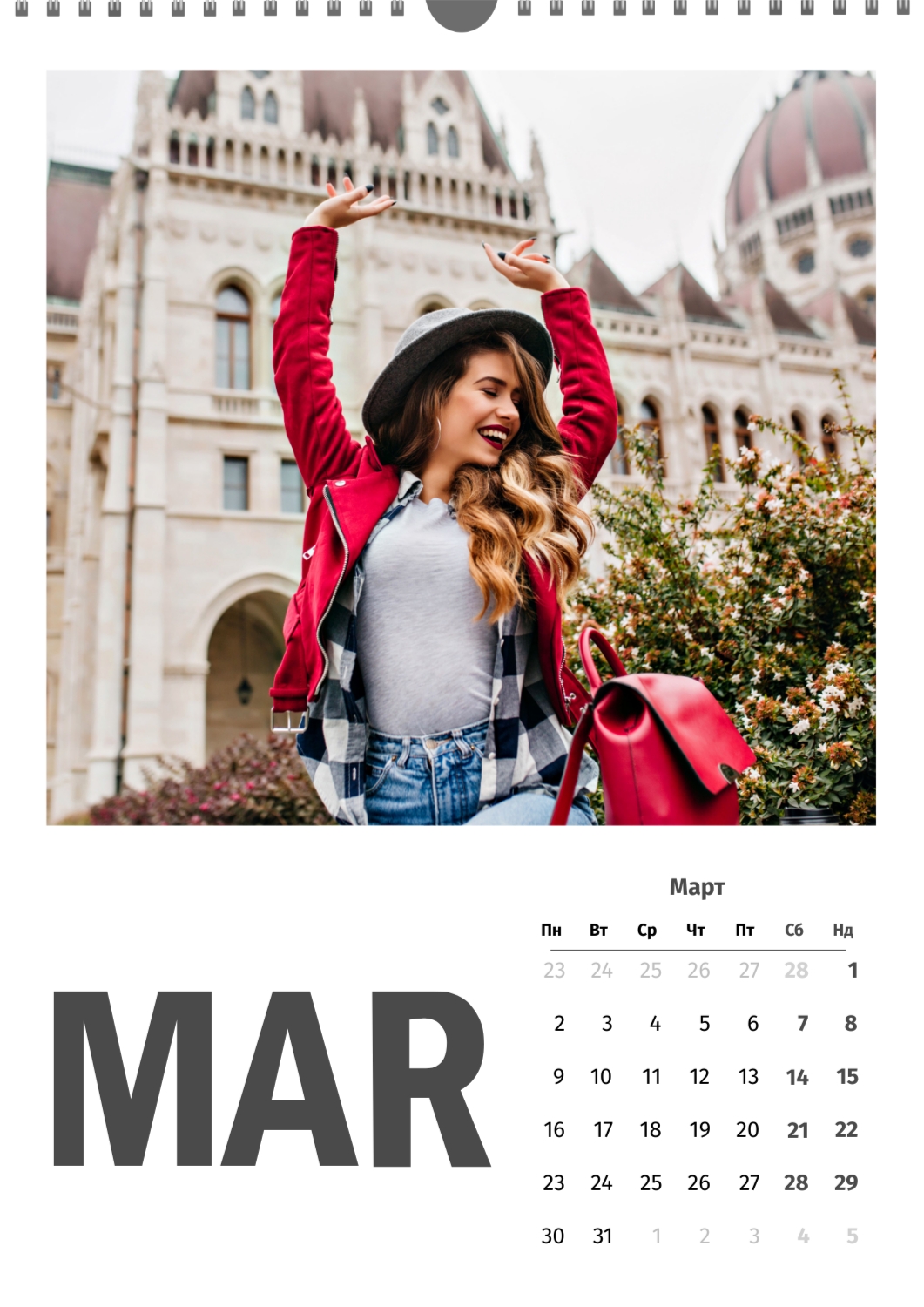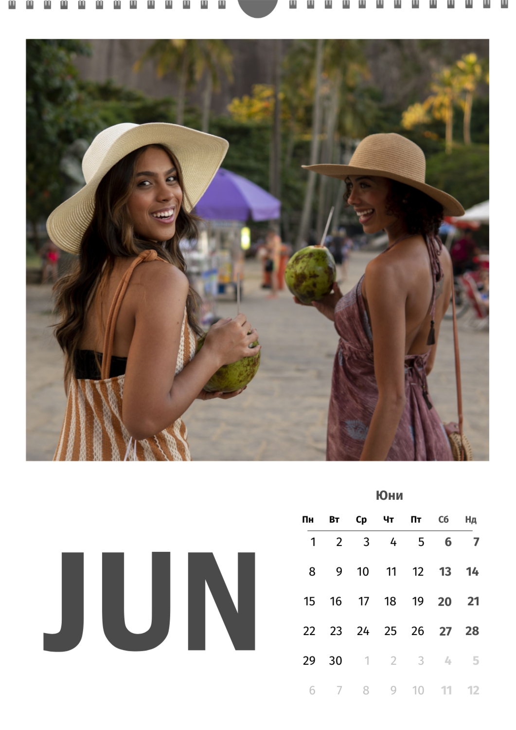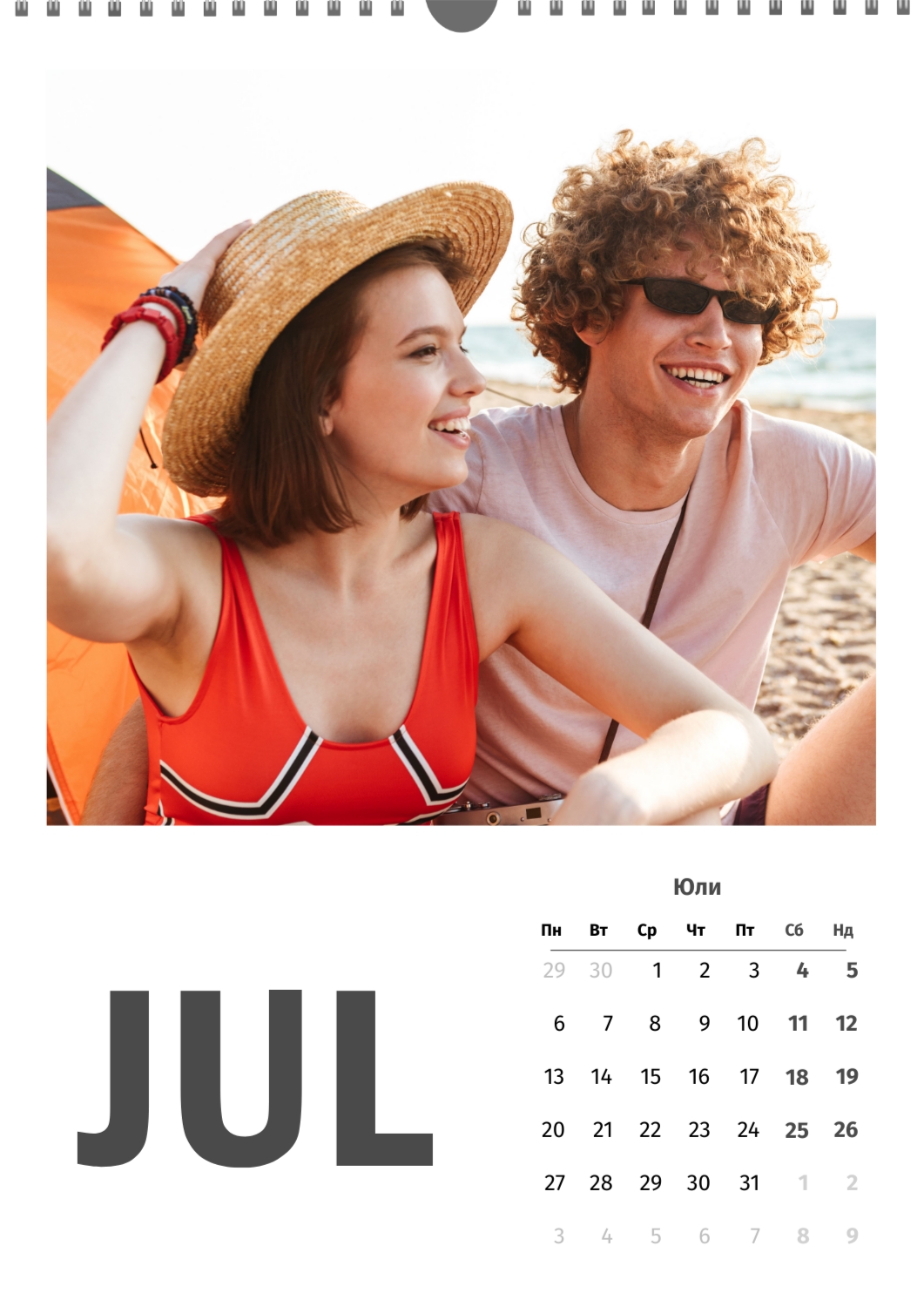 Готовият шаблон за календар за влюбени е идеалният начин да запазите най — добрите си моменти и да ги направите част от всеки ден. Този шаблон е създаден, като се вземат предвид романтичните теми: нежни цветове, стилни декоративни елементи и хармонична композиция създават атмосфера на топлина и комфорт. Шаблонът е идеален за двойки, които искат да подчертаят чувствата си, както и за използване в професионална област, свързана с празници, сватби или творчество. Например, той може да бъде адаптиран за сватбени фотографи, организатори на събития или дизайнери, създаващи романтични подаръци. Основното предимство на този календар е възможността за пълна персонализация в нашия онлайн конструктор. Можете да качите вашите снимки, да промените текстови елементи или да добавите важни дати, за да направите календара възможно най-уникален. Нашият дизайнер ви позволява лесно да персонализирате шрифтове, цветове и дори декоративни елементи, което ви дава пълна свобода да изразявате себе си. Този шаблон дава възможност да се създаде не само календар, но и истински запомнящ се подарък, който ще радва всеки ден. Просто изберете готовата основа, добавете идеите си и се насладете на резултата!